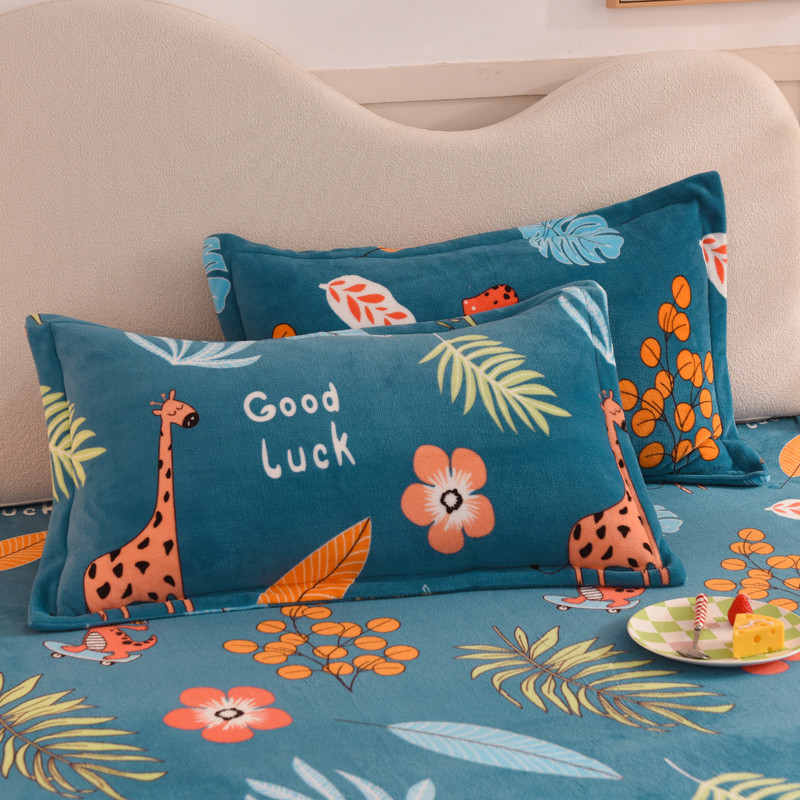 甜之梦家纺 2025新款印花牛奶绒单品枕套 动物乐园