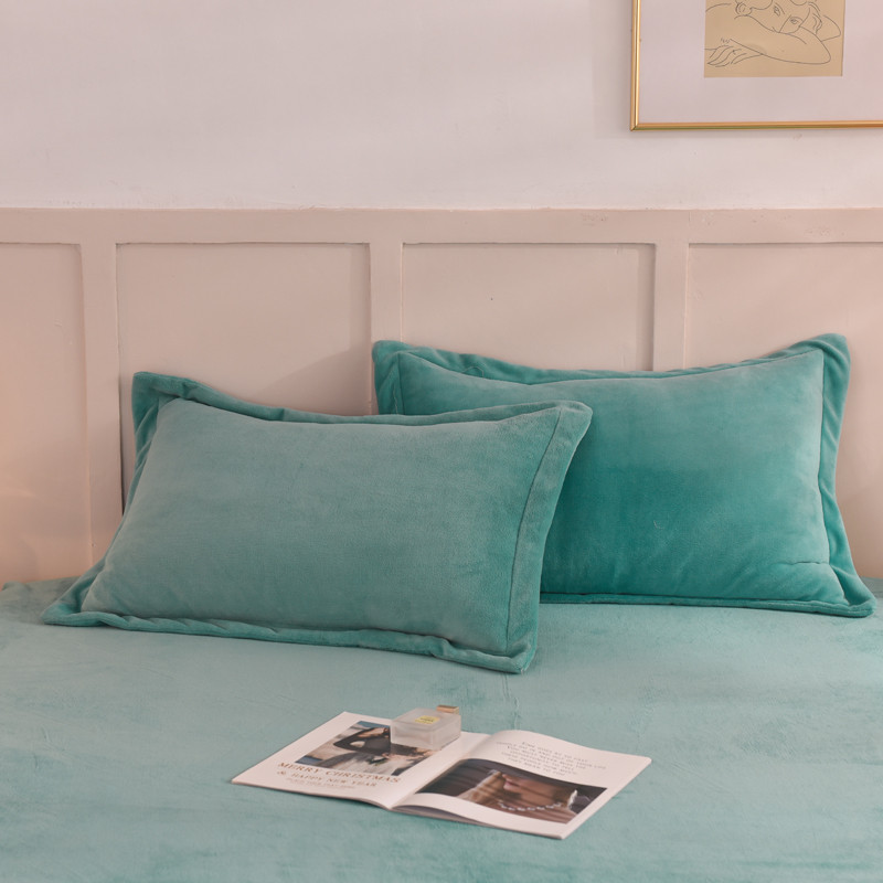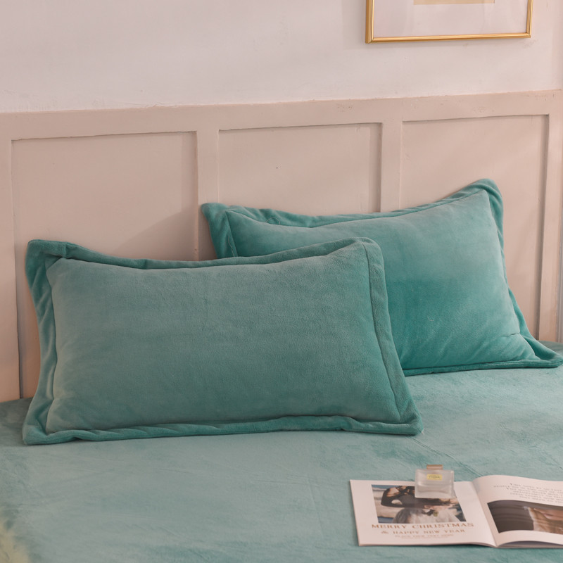 甜之梦 2025新款牛奶绒单品枕套一对 湖绿拼色