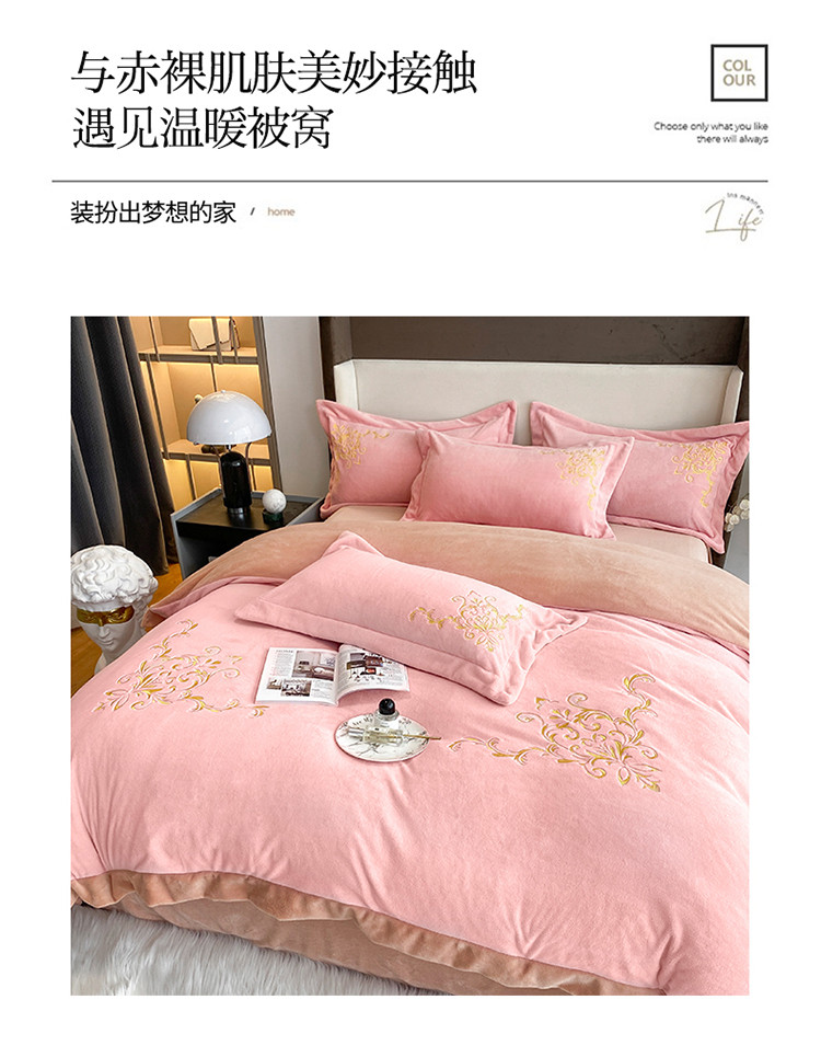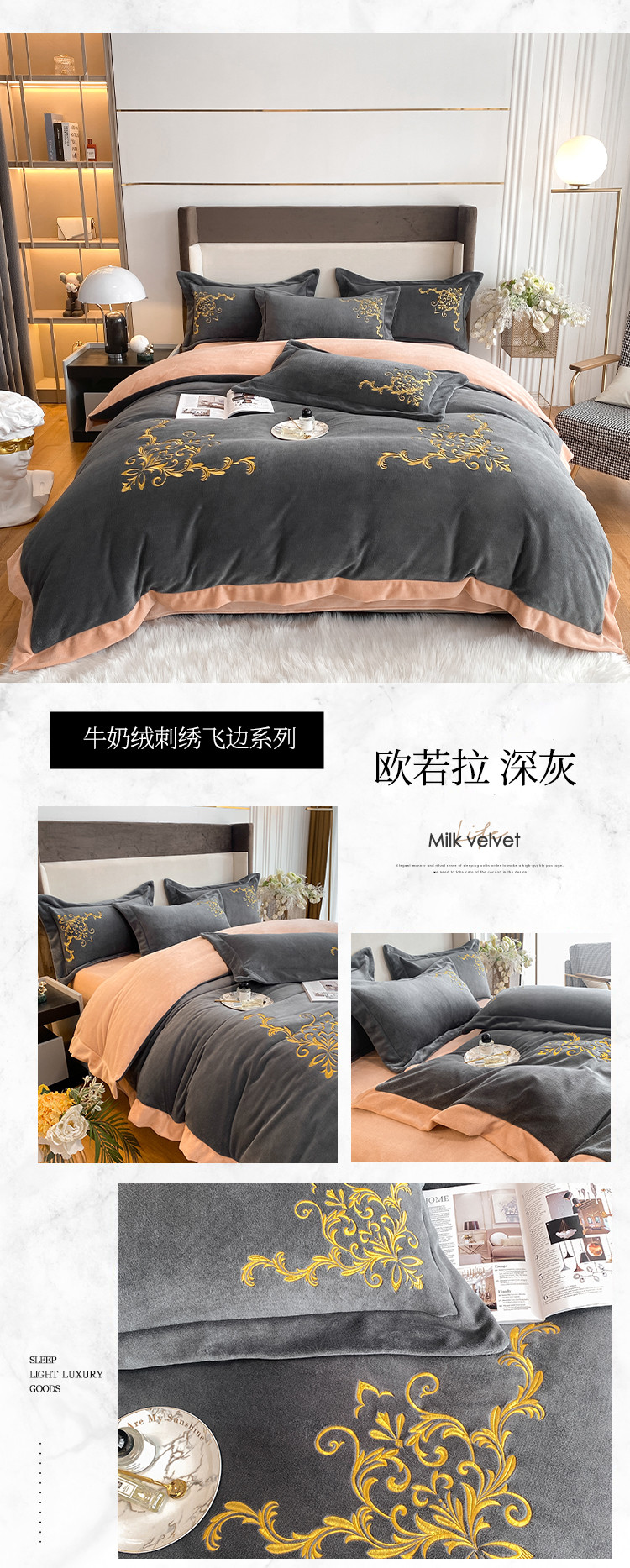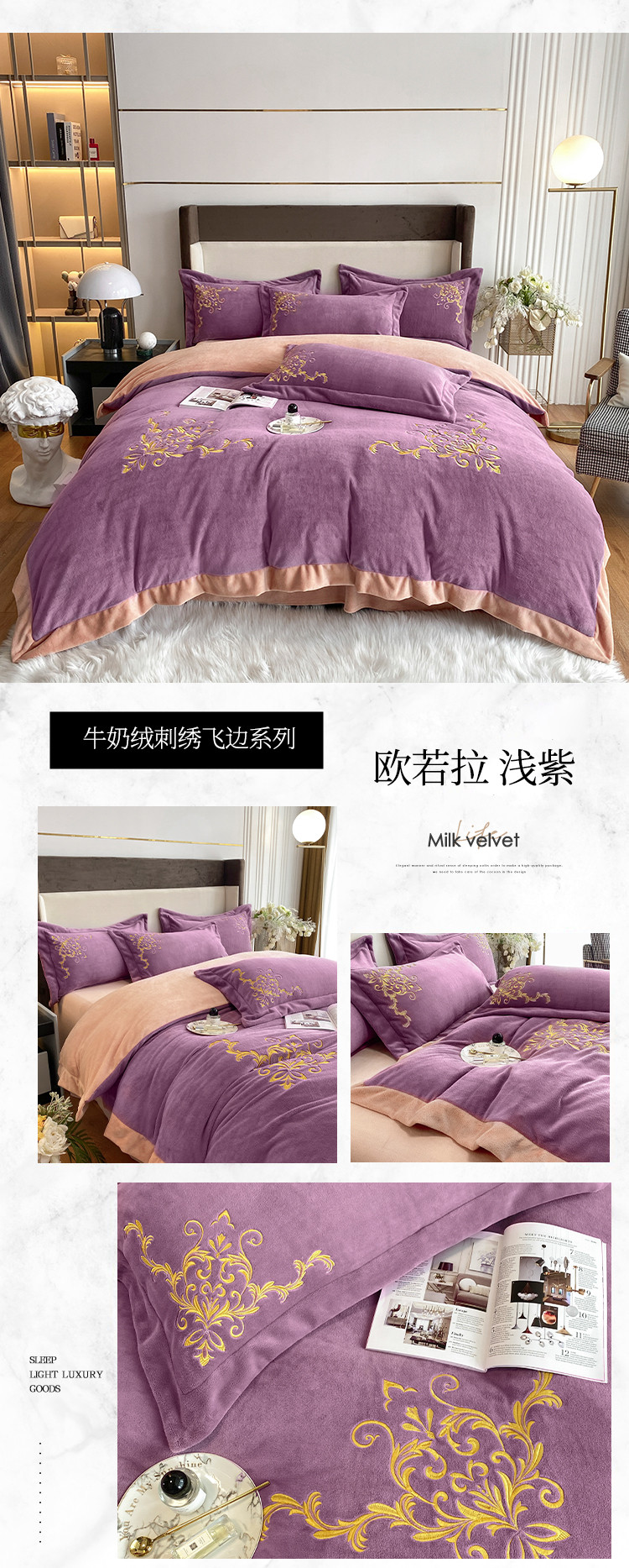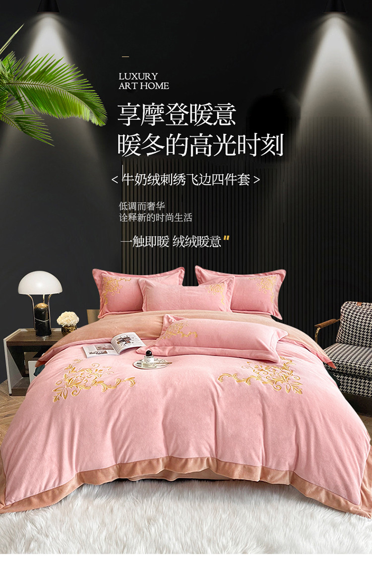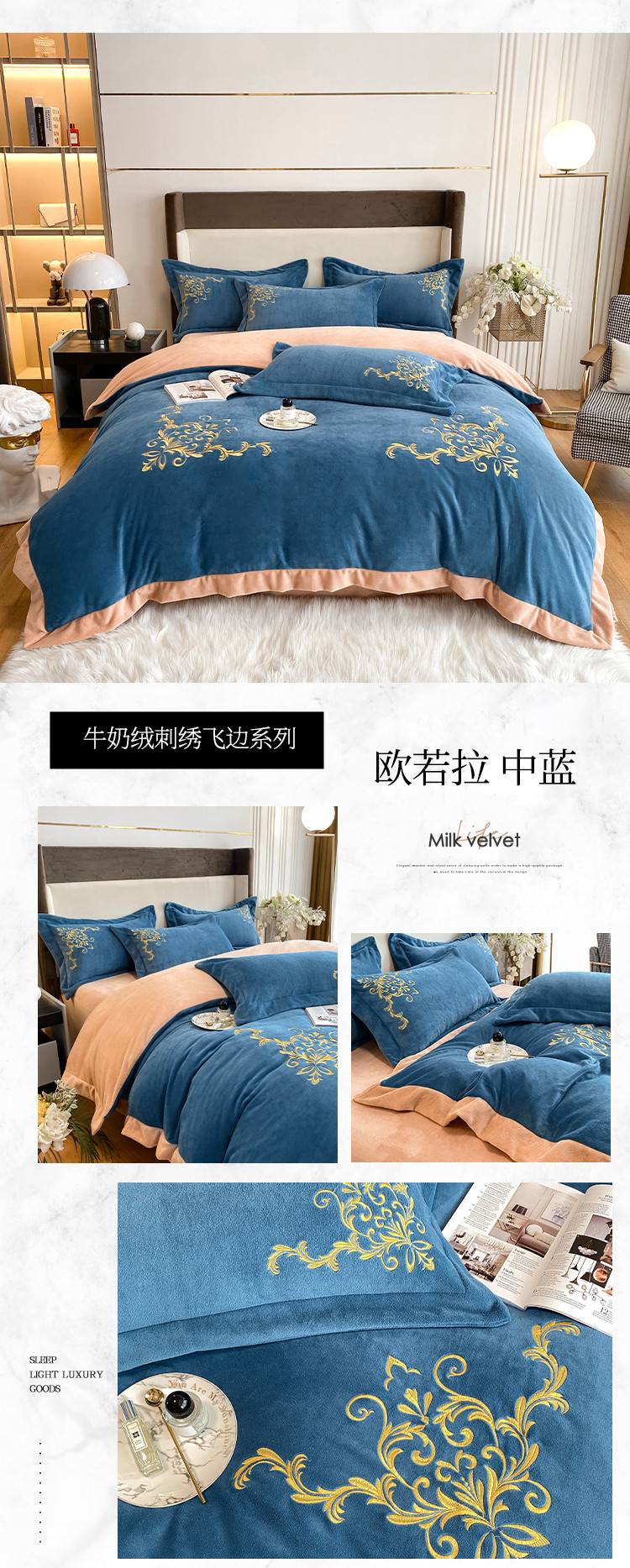(总)吾秀家居 2022新款牛奶绒欧若拉系列刺绣飞边四件套