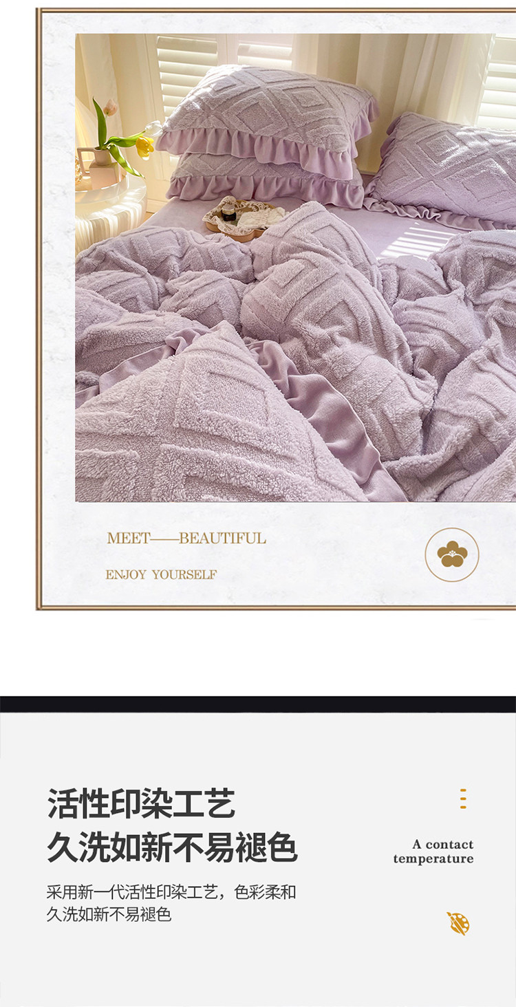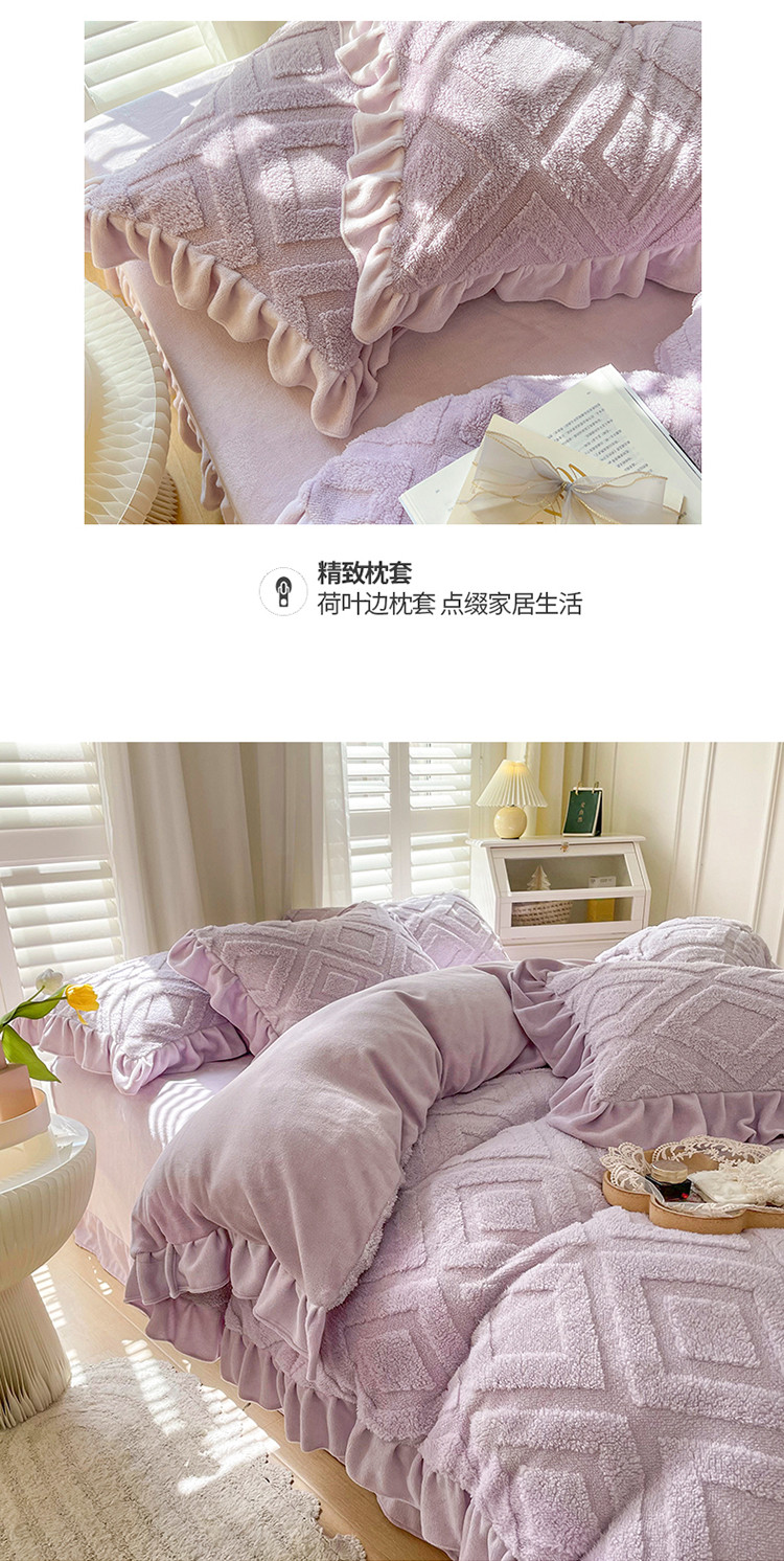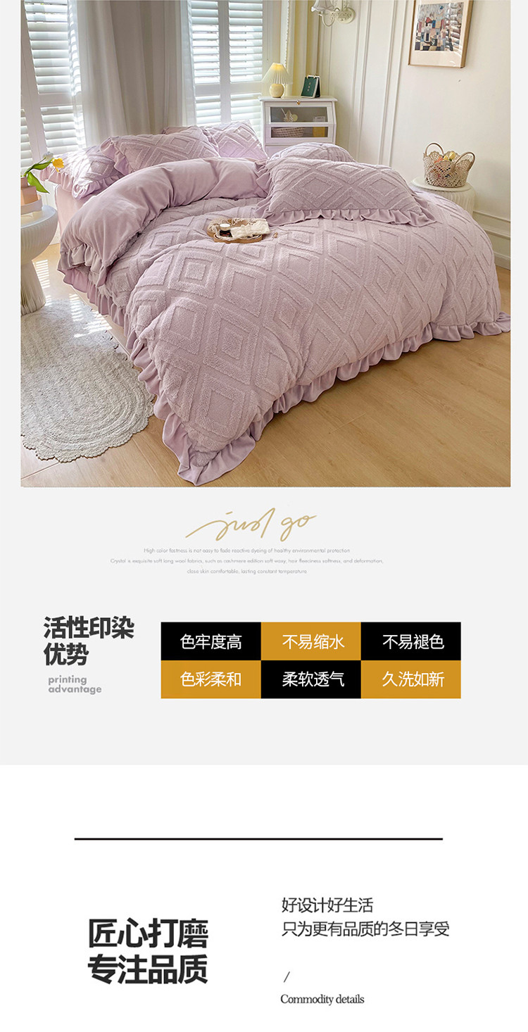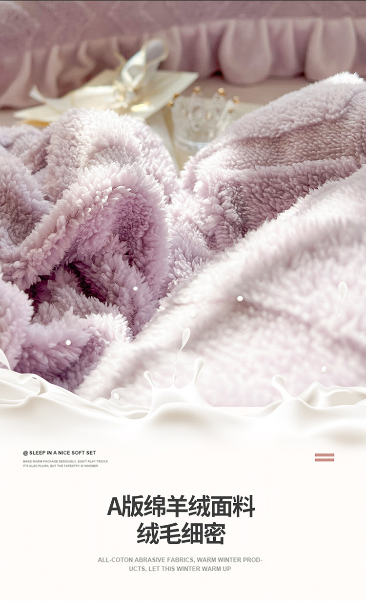 商品名称:仟网汇 新款艾格绵羊绒+牛奶绒韩式四件套 艾格-香芋紫