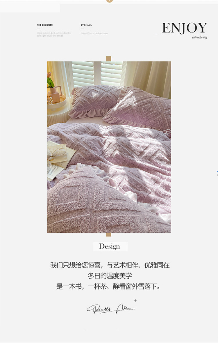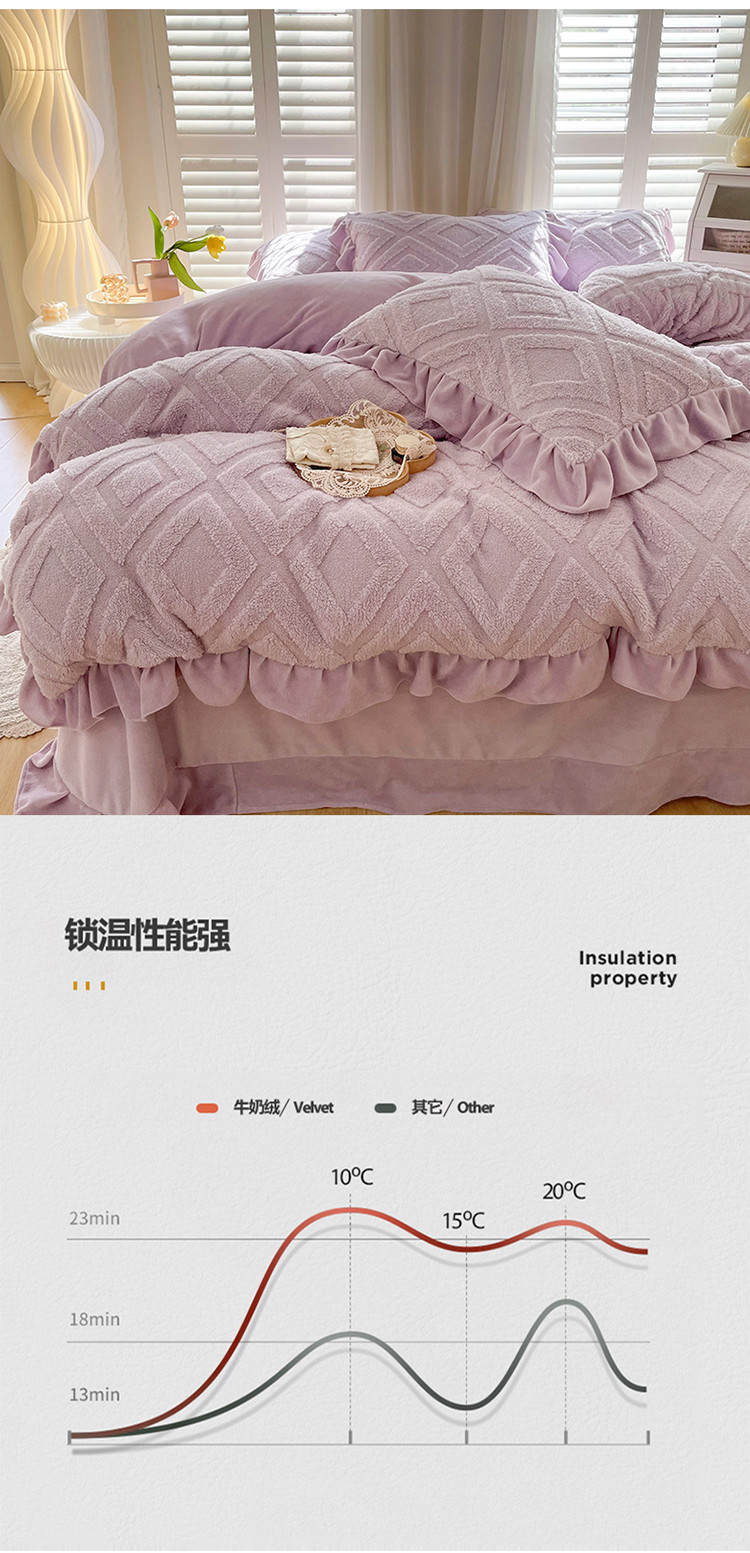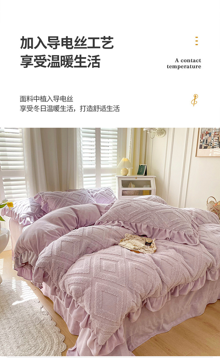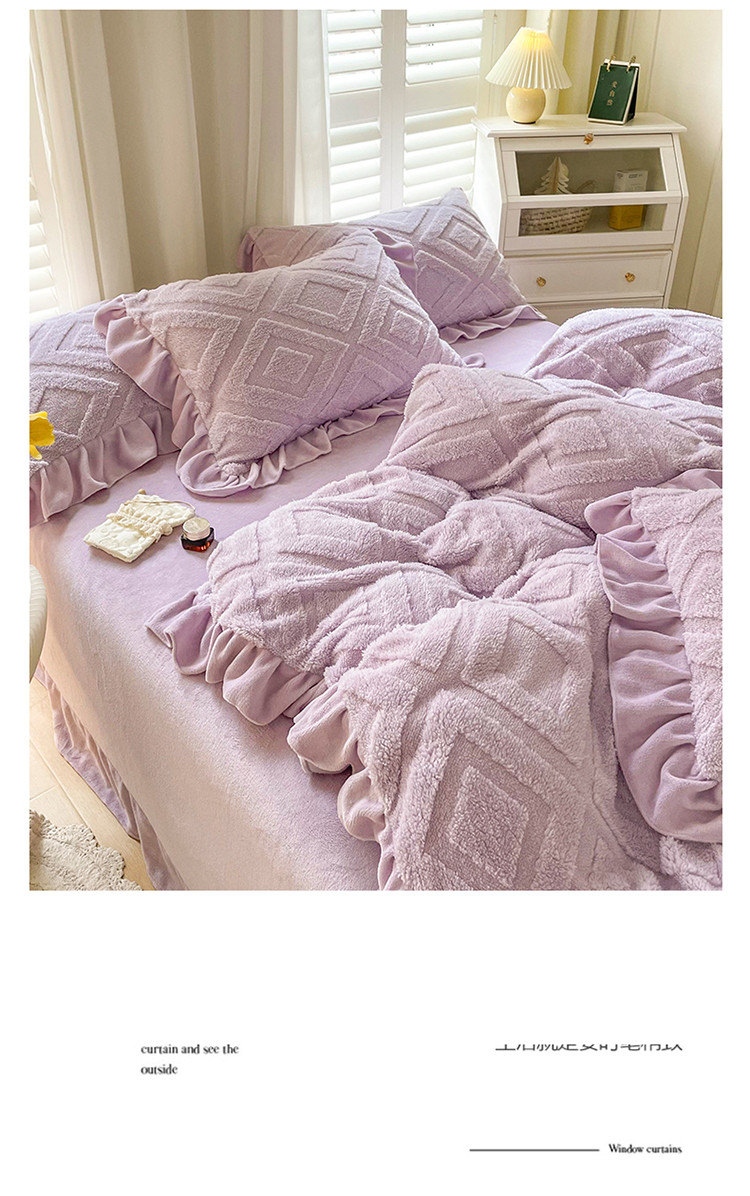 商品名称:仟网汇 新款艾格绵羊绒+牛奶绒韩式四件套 艾格-香芋紫