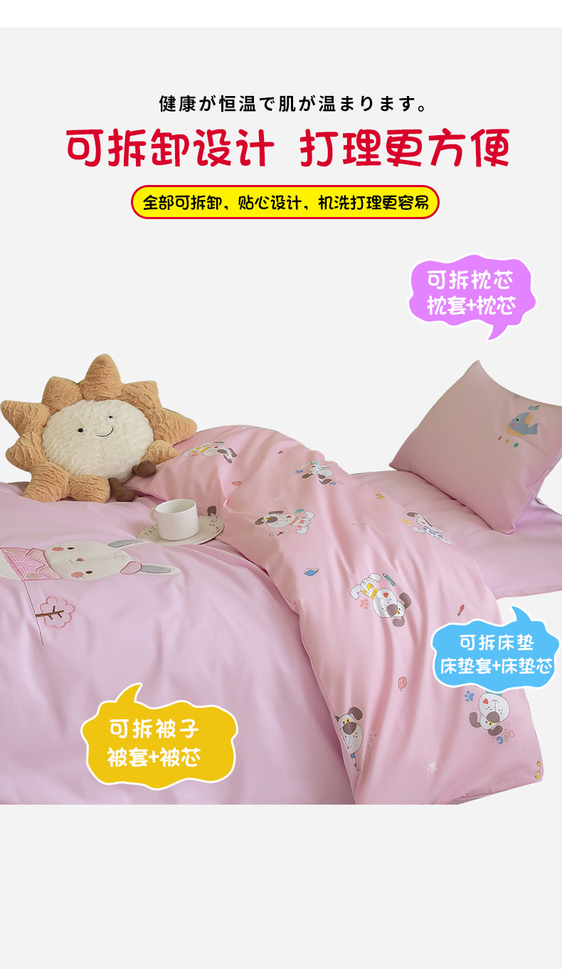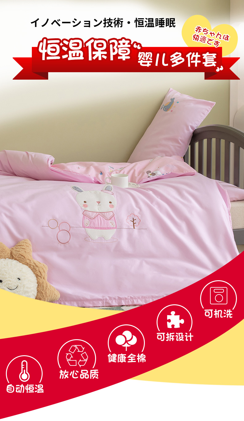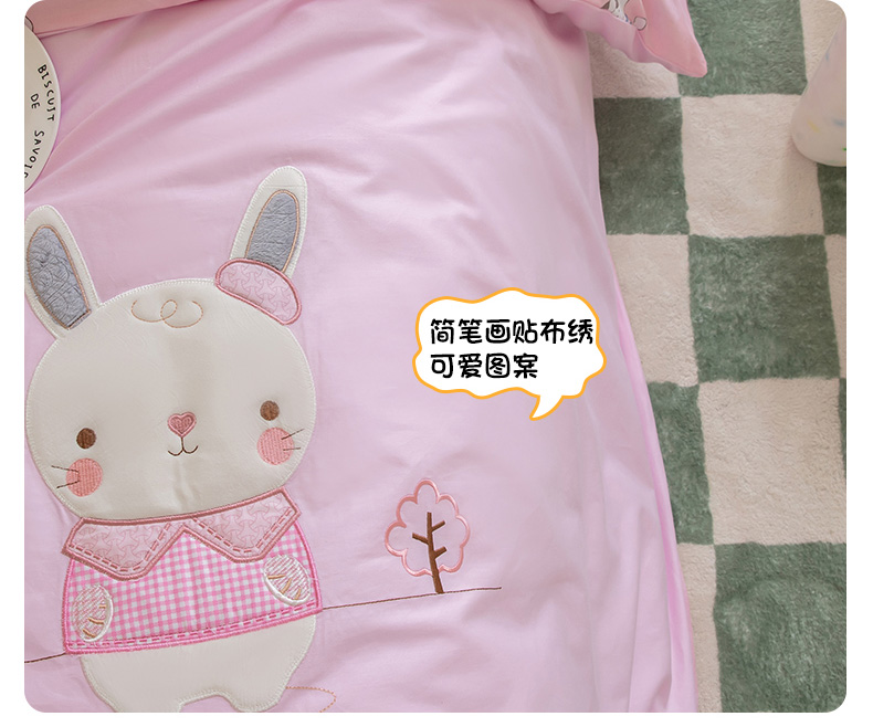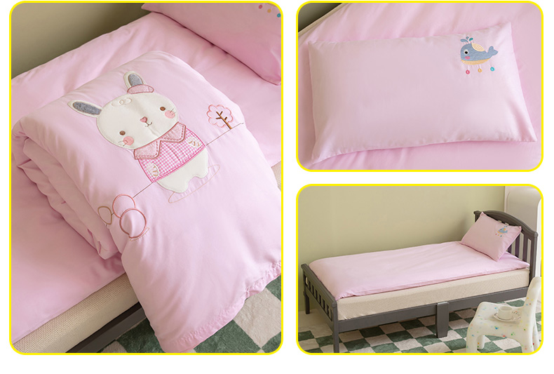 当前位置: 91家纺网 > 商品网购 > 床品套件 > 三件套 > 喜多兔 2023新款40支13372纯棉小小梦绣花幼儿园被子三件套 粉色胖胖兔