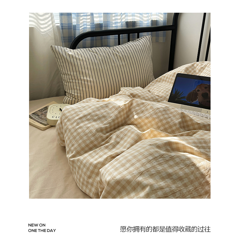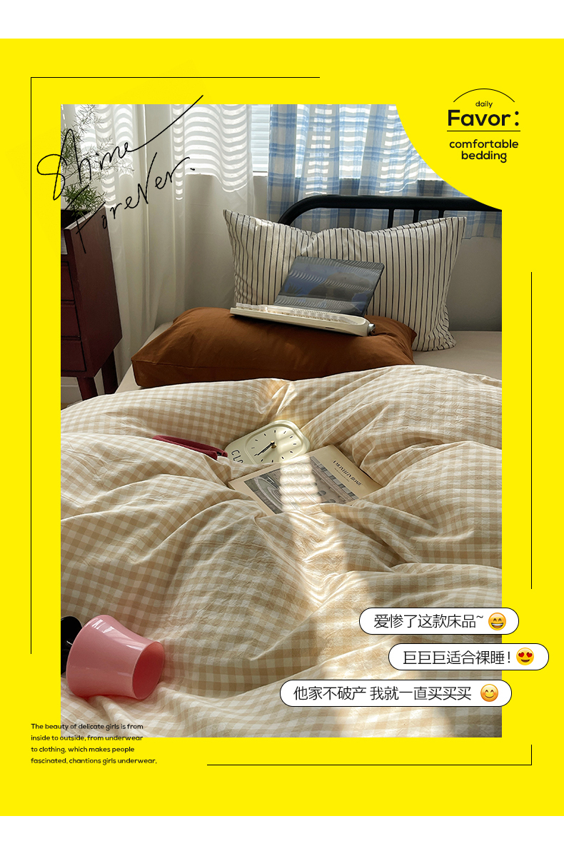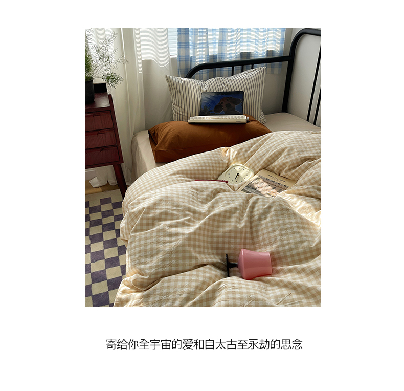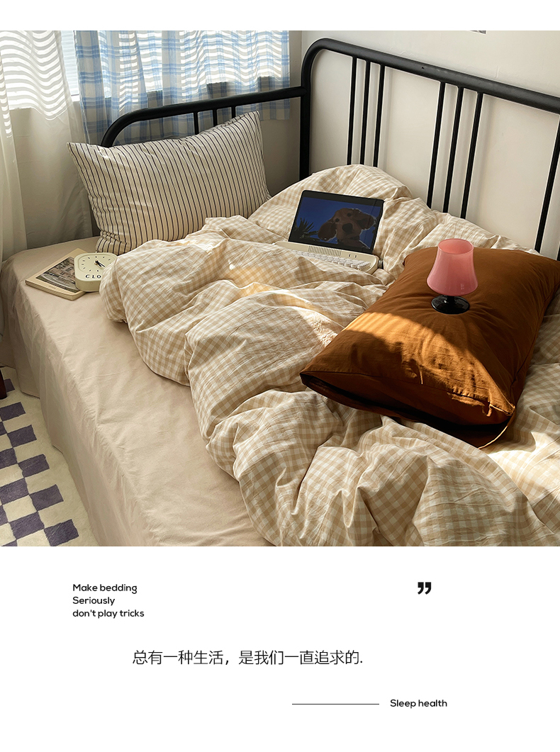 六巷胡同 2023新款ins博主风洋气小格子篇四件套 浅米咖小格