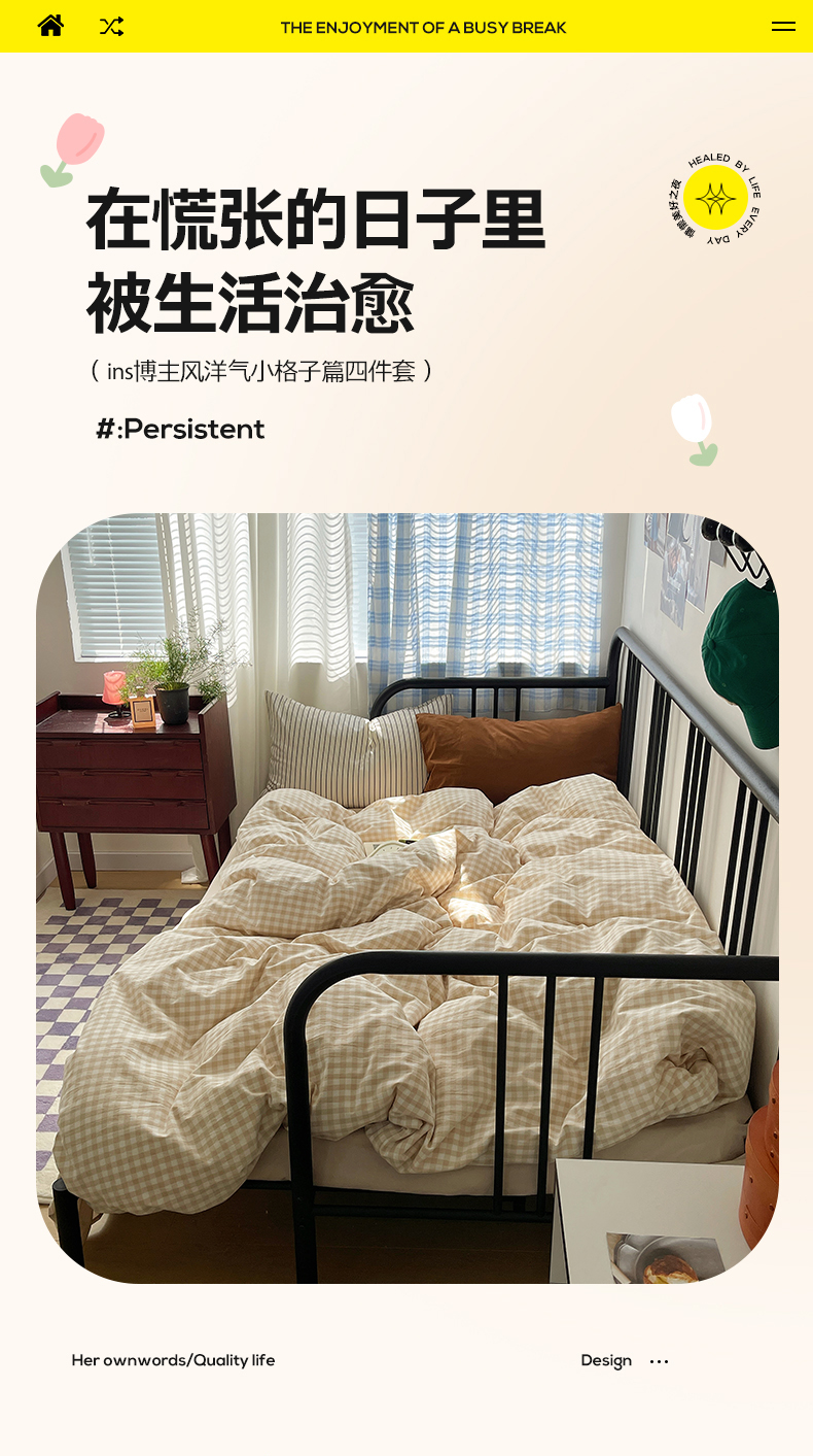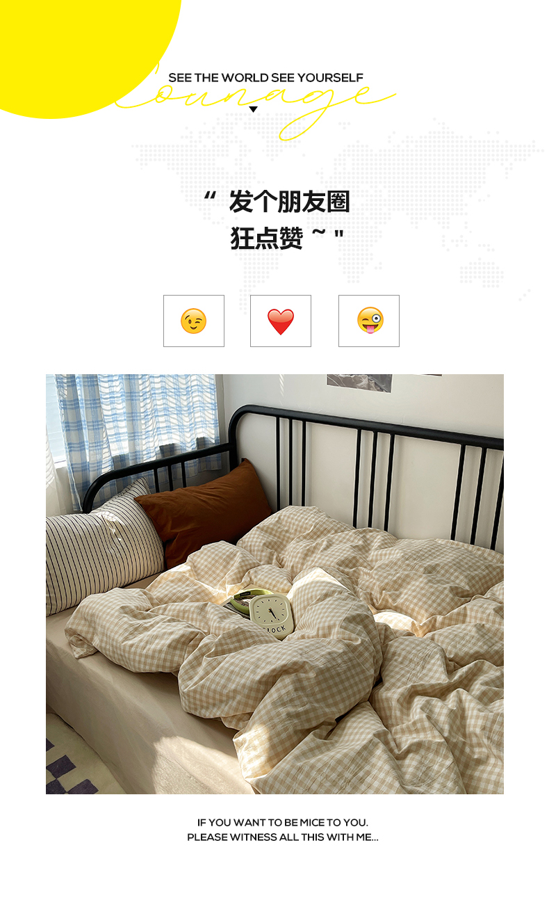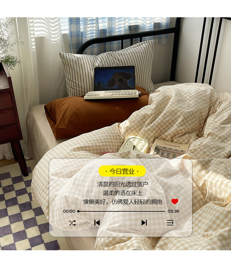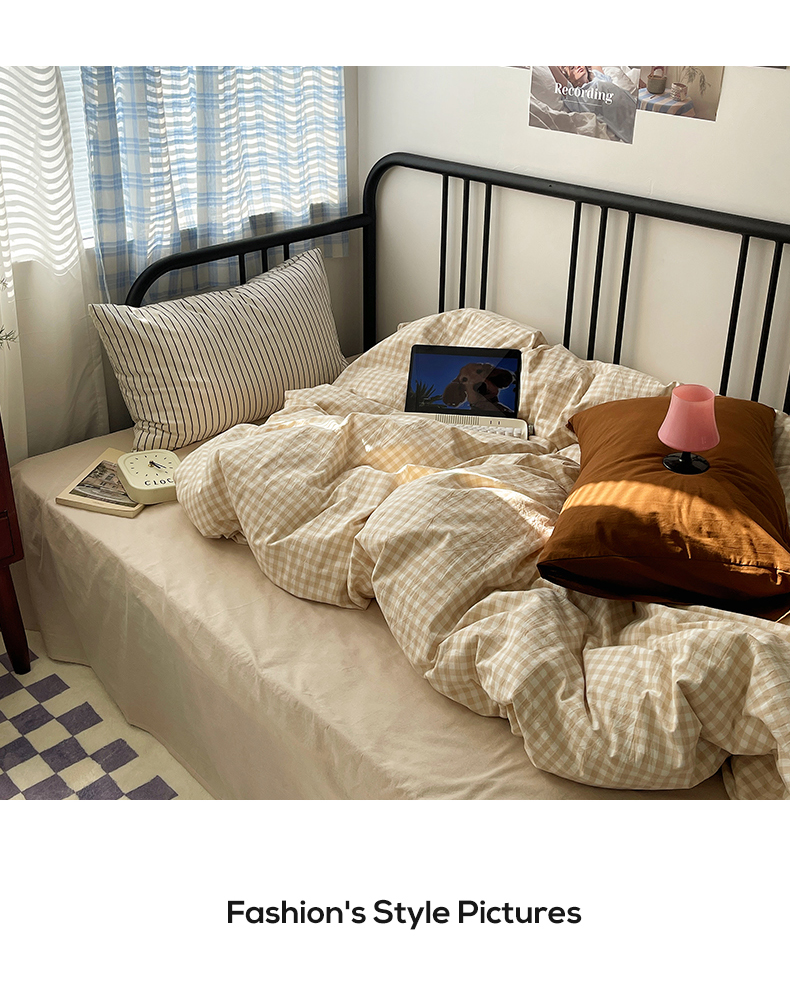 六巷胡同 2023新款ins博主风洋气小格子篇四件套 浅米咖小格