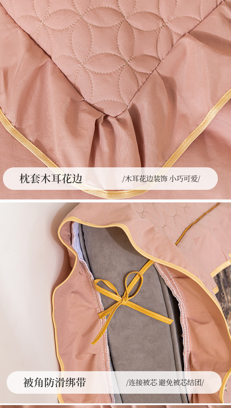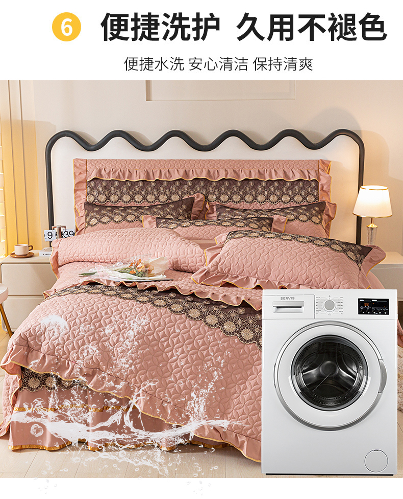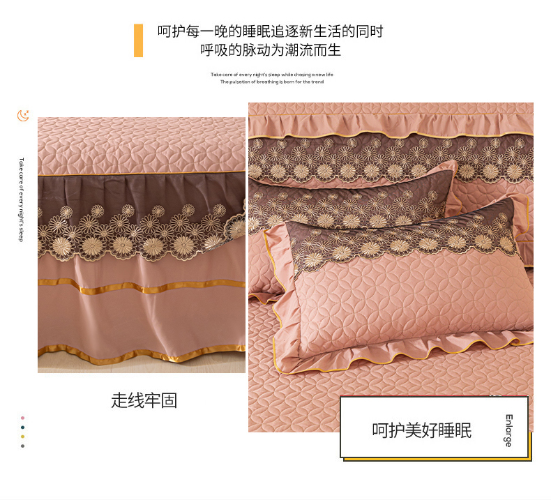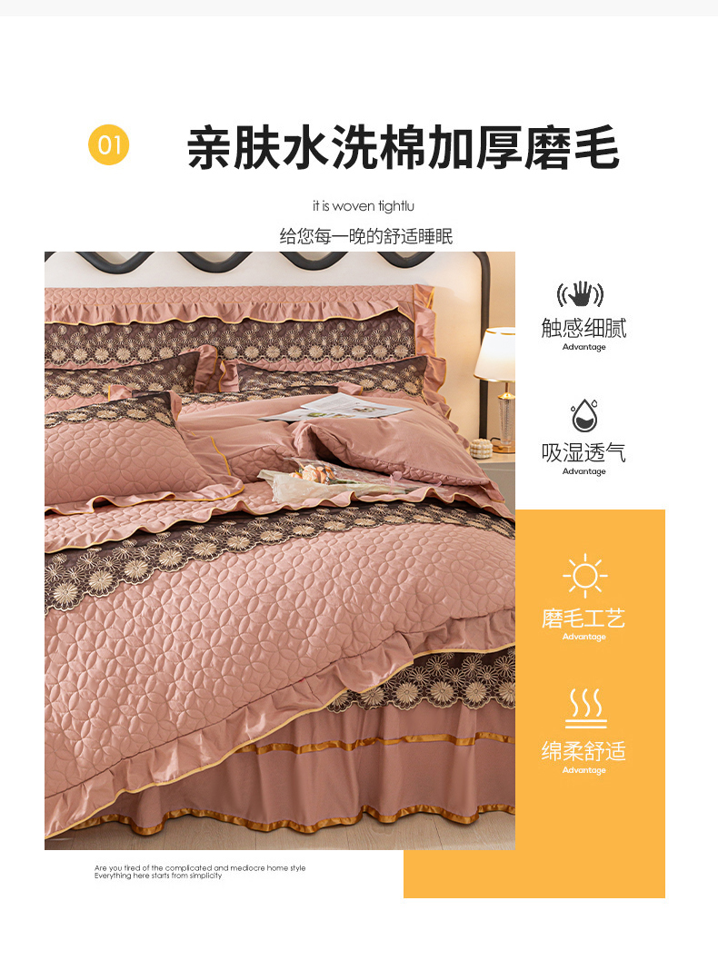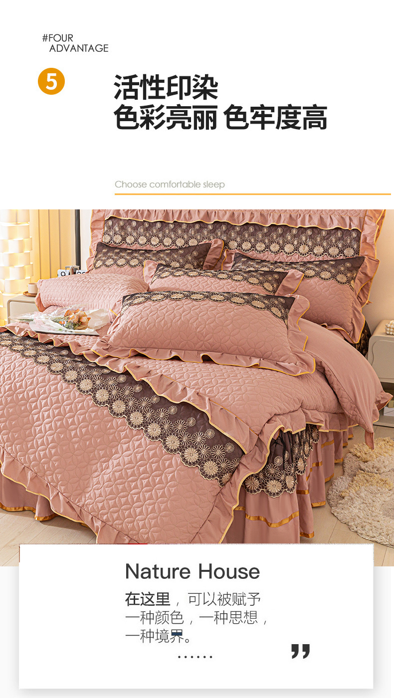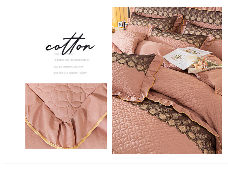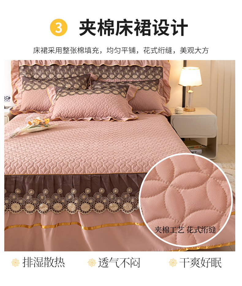 当前位置: 91家纺网 > 商品网购 > 床品套件 > 四件套 > 全棉普通四件套 > 靓生活 2023新款夹棉绗缝床裙四件套-金玉良缘 卡其