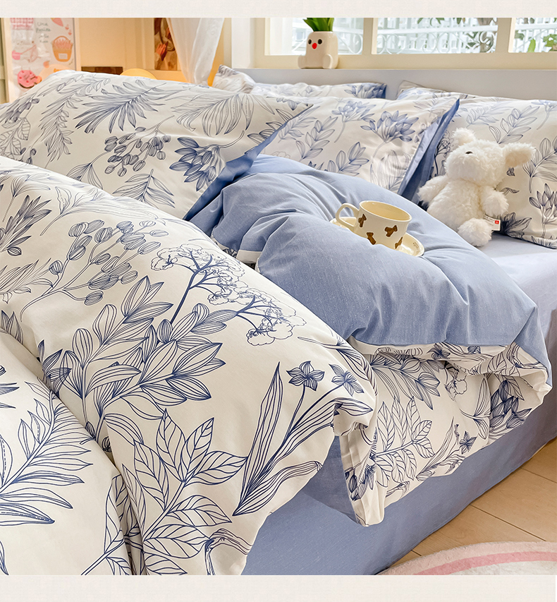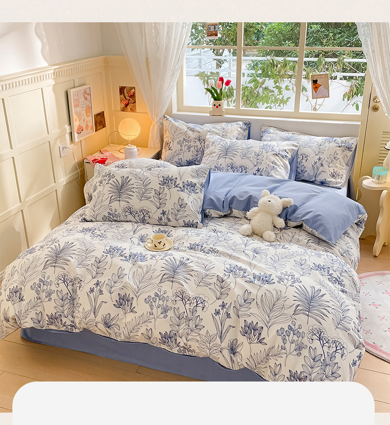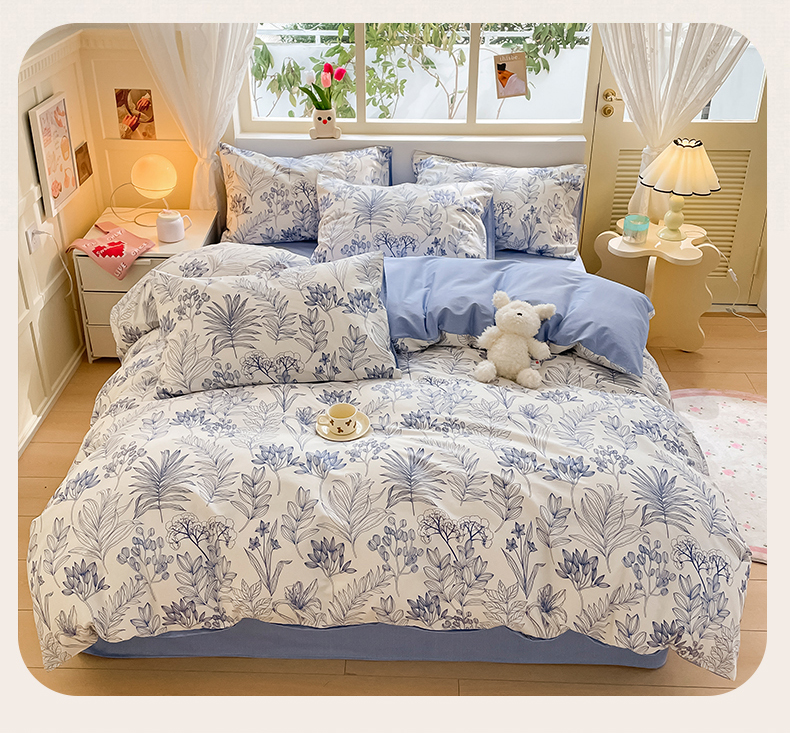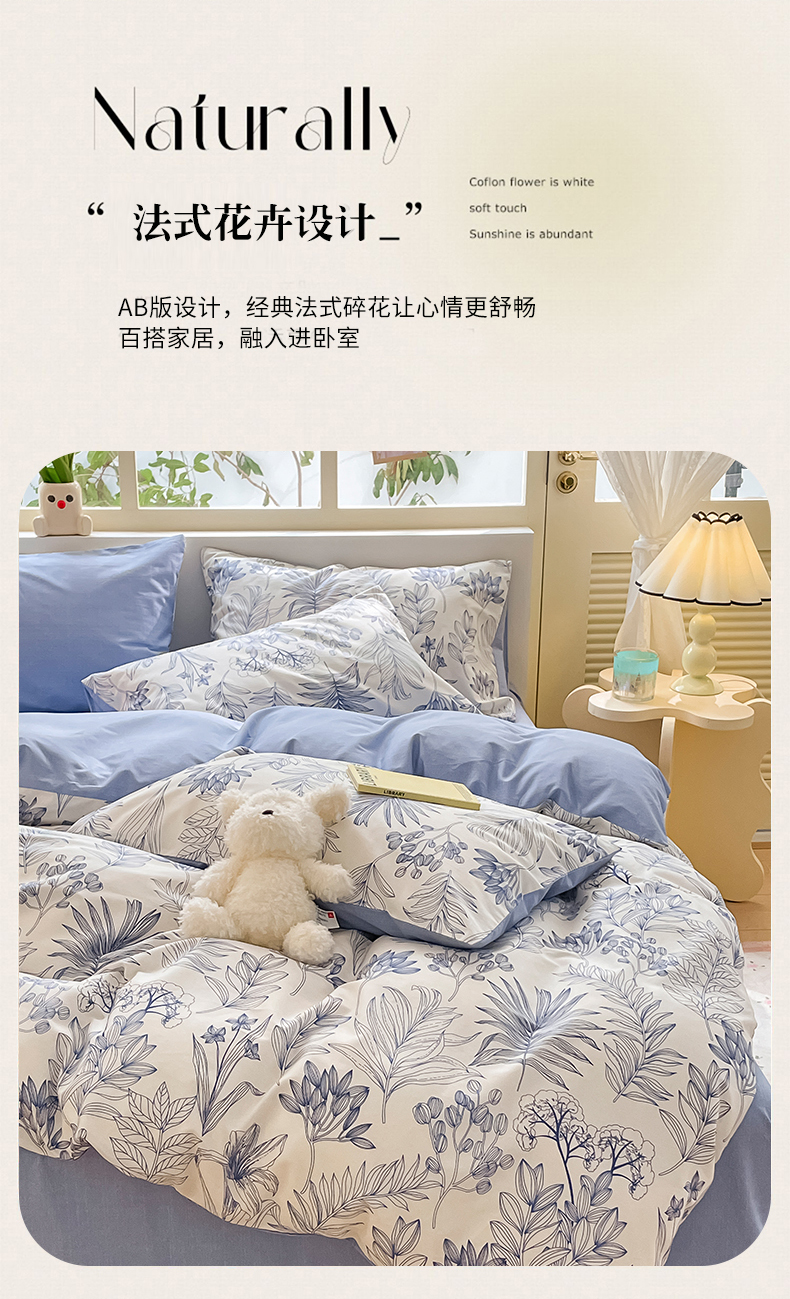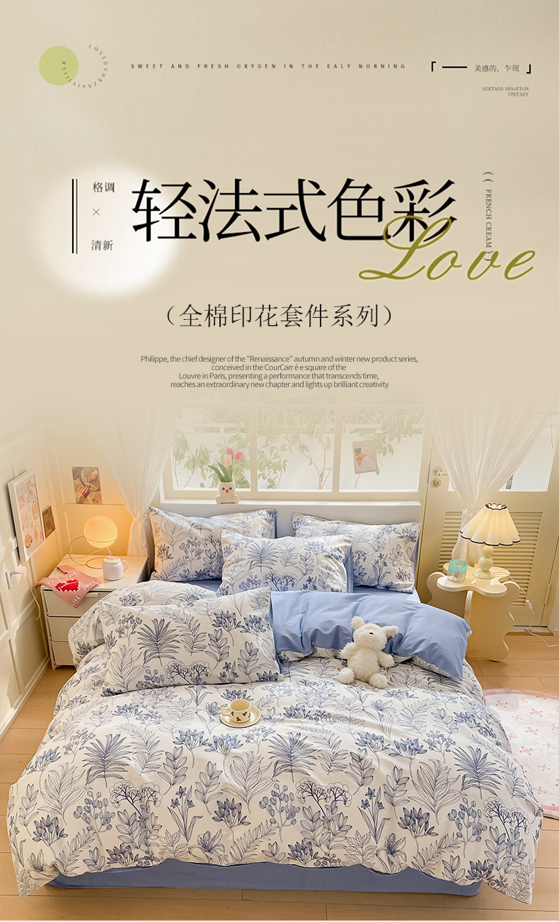 启程2024新款全棉13372印花四件套直播爆款法式复古碎花系列 霜叶-蓝