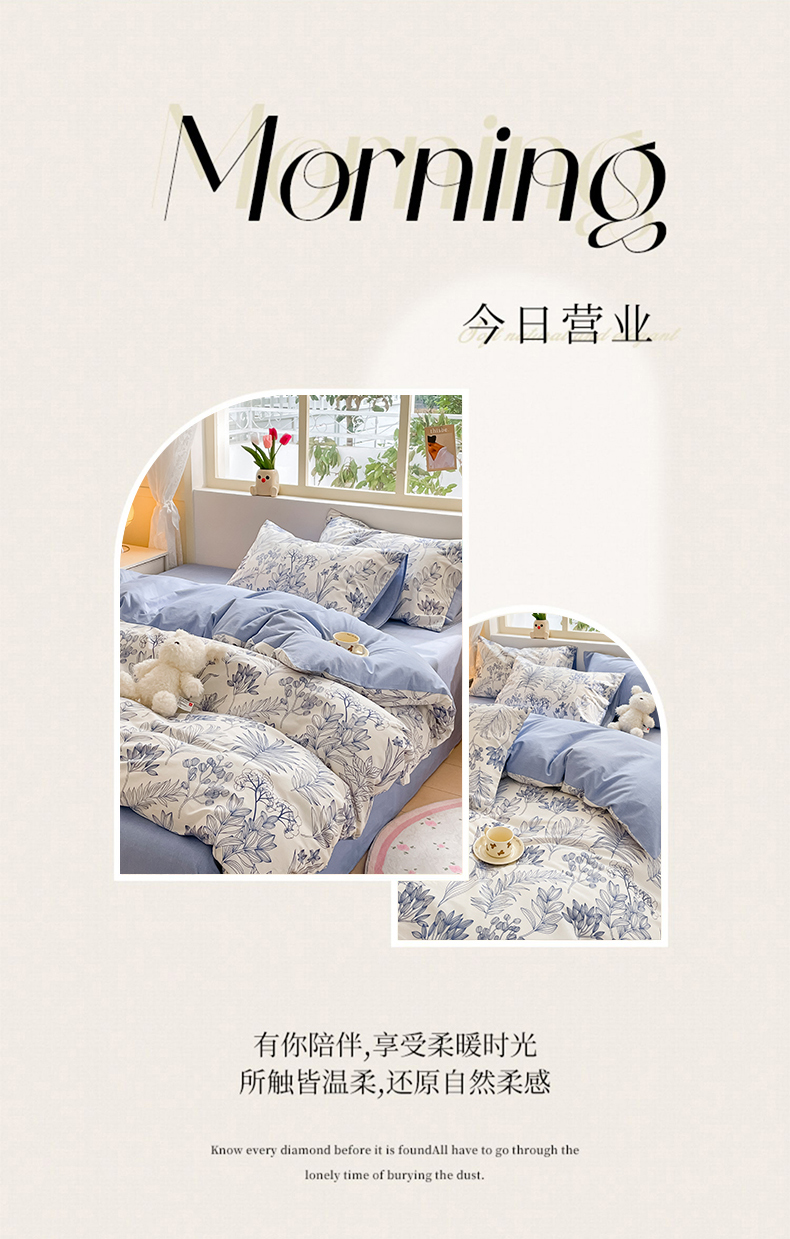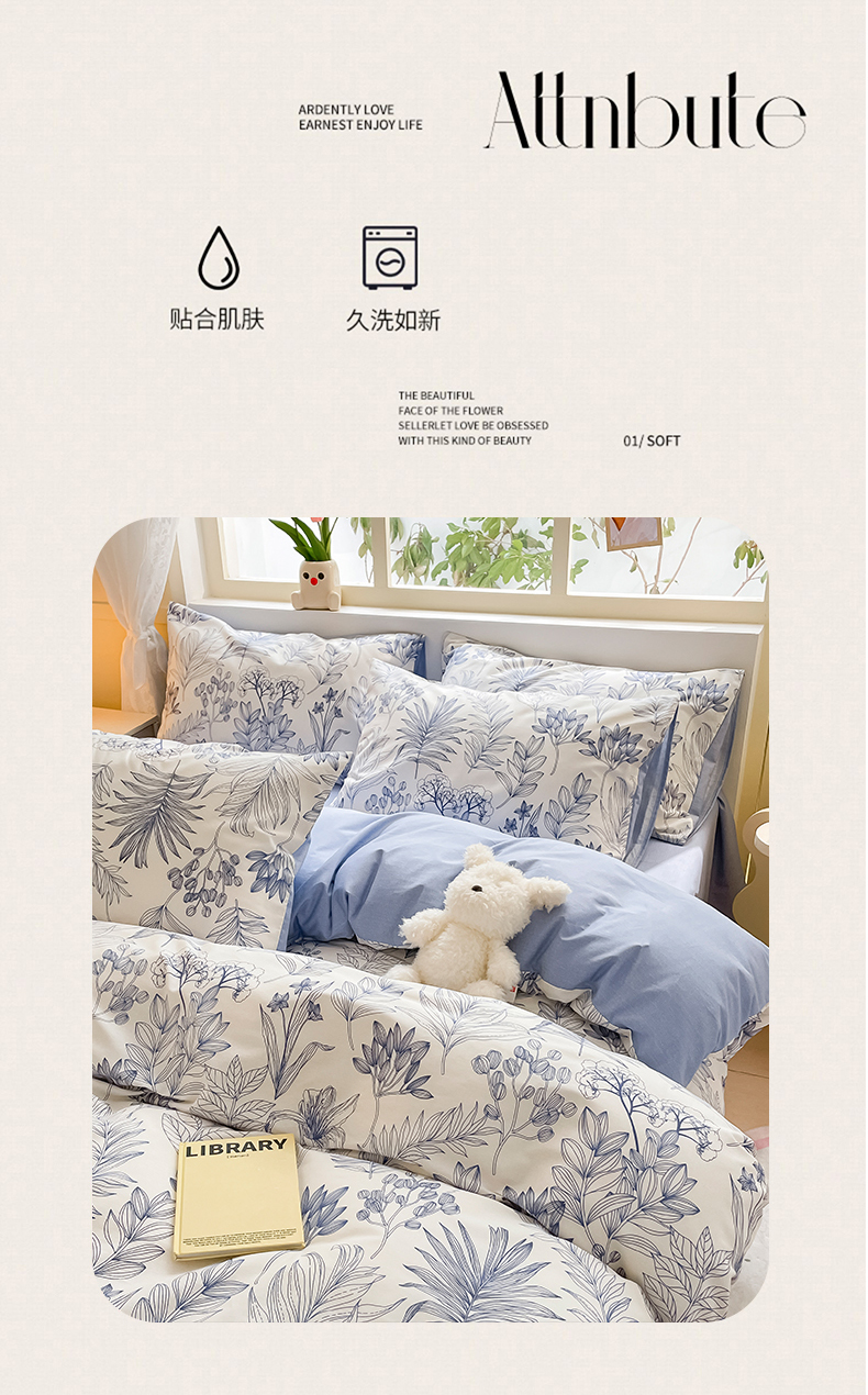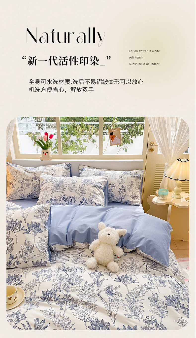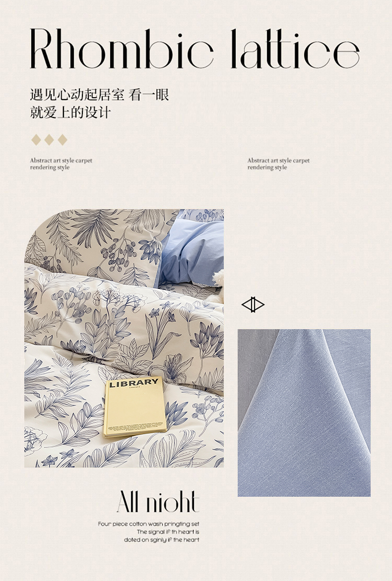 启程2024新款全棉13372印花四件套直播爆款法式复古碎花系列 霜叶-蓝