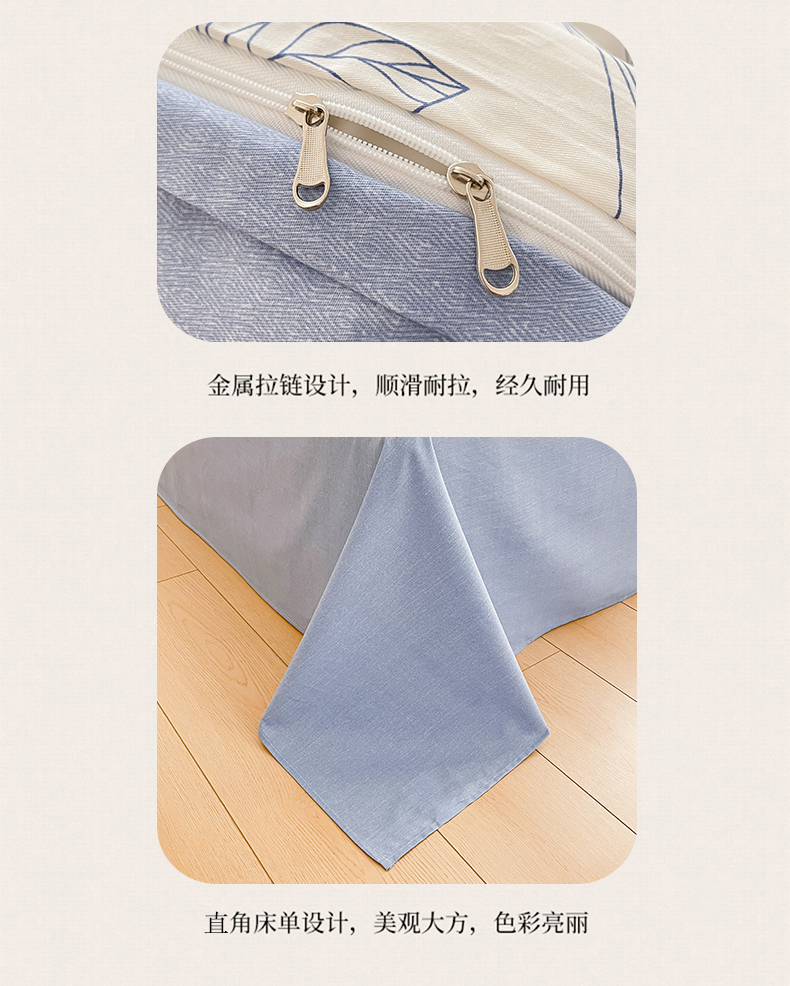 商品名称:启程2024新款全棉13372印花四件套直播爆款法式复古碎花系列 霜叶-蓝
