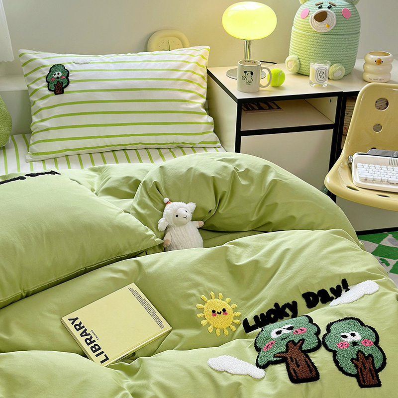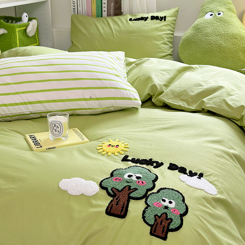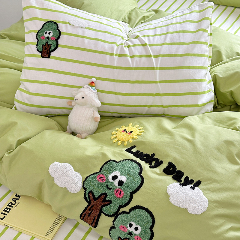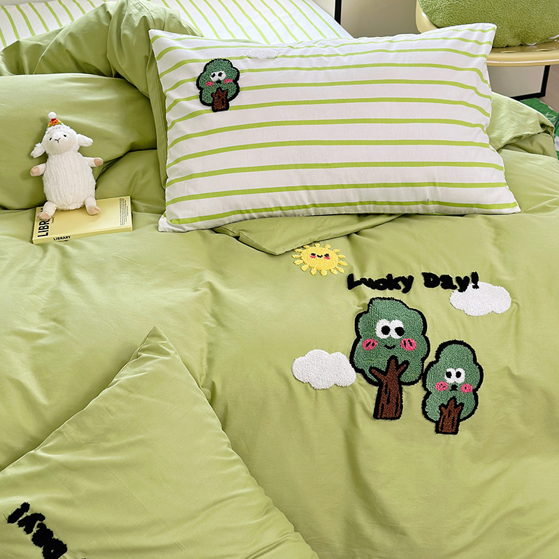 澳萝拉 2024新款纯棉毛巾绣卡通四件套 幸福小树