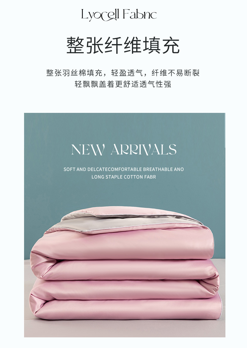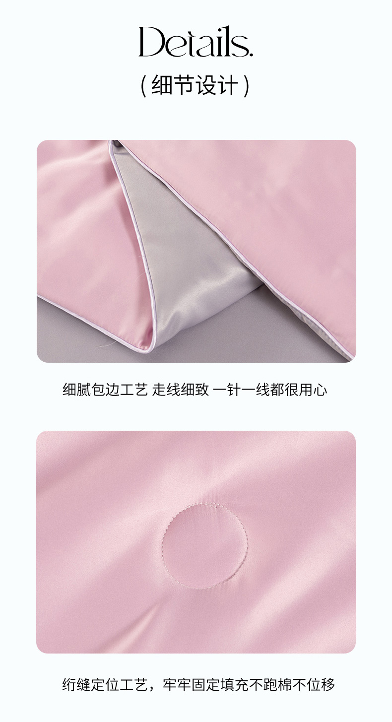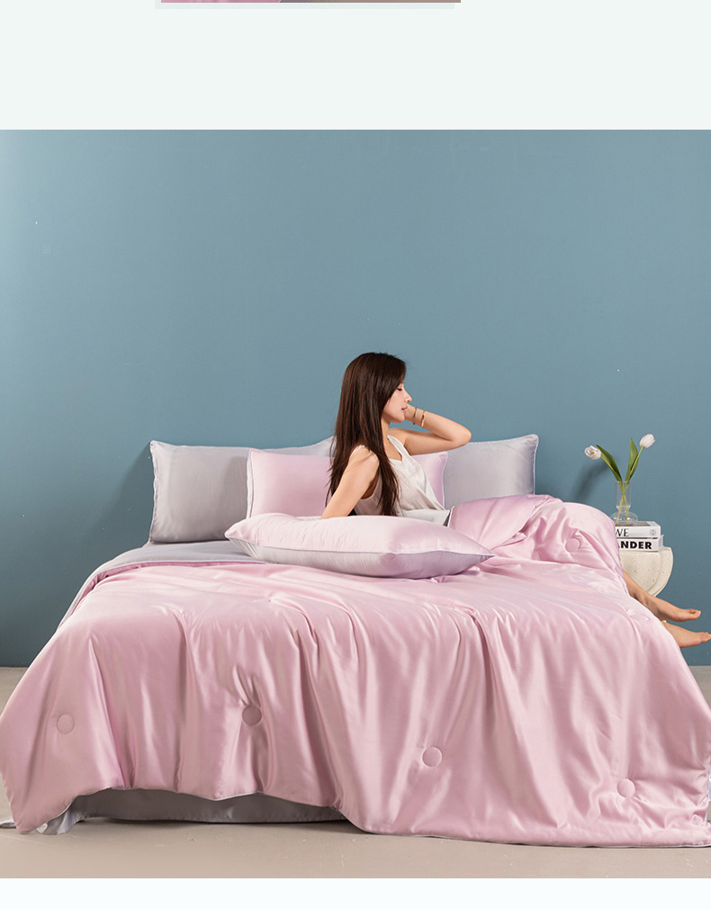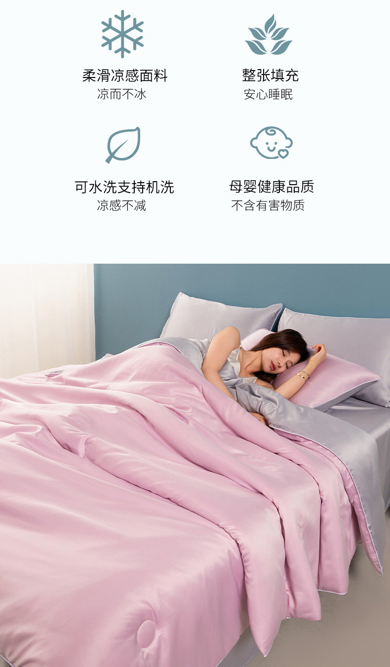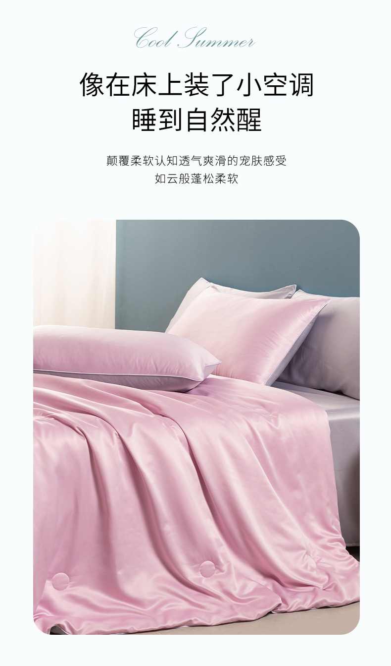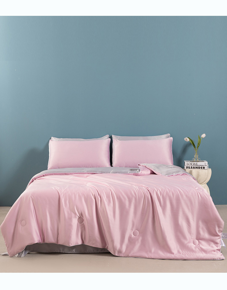 • 91家纺网 家纺一手货源 找家纺 梦镜家纺 2025新款凉感丝双拼夏凉被夏被空调被夏被四件套 双拼樱花粉-浅灰