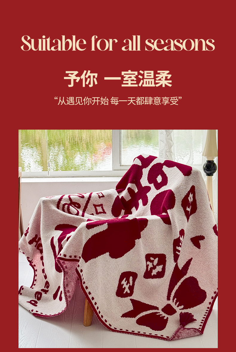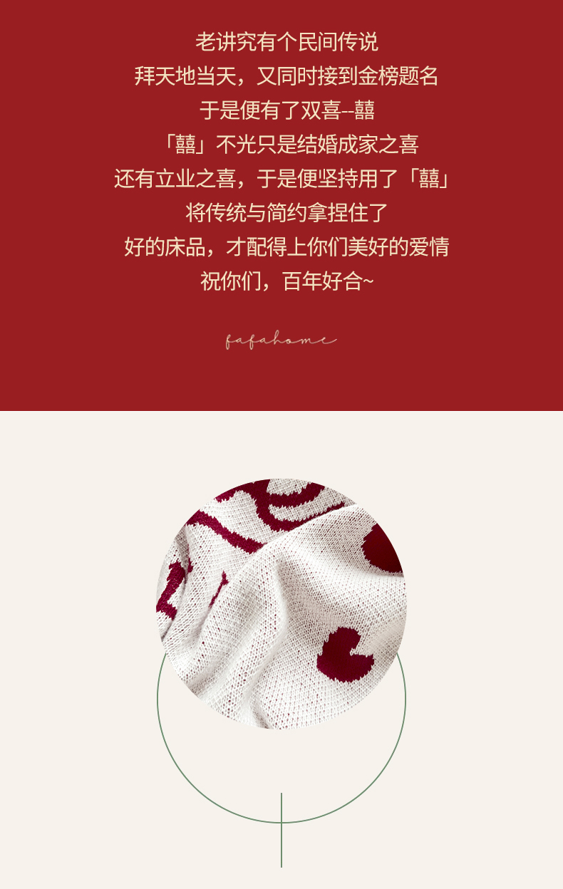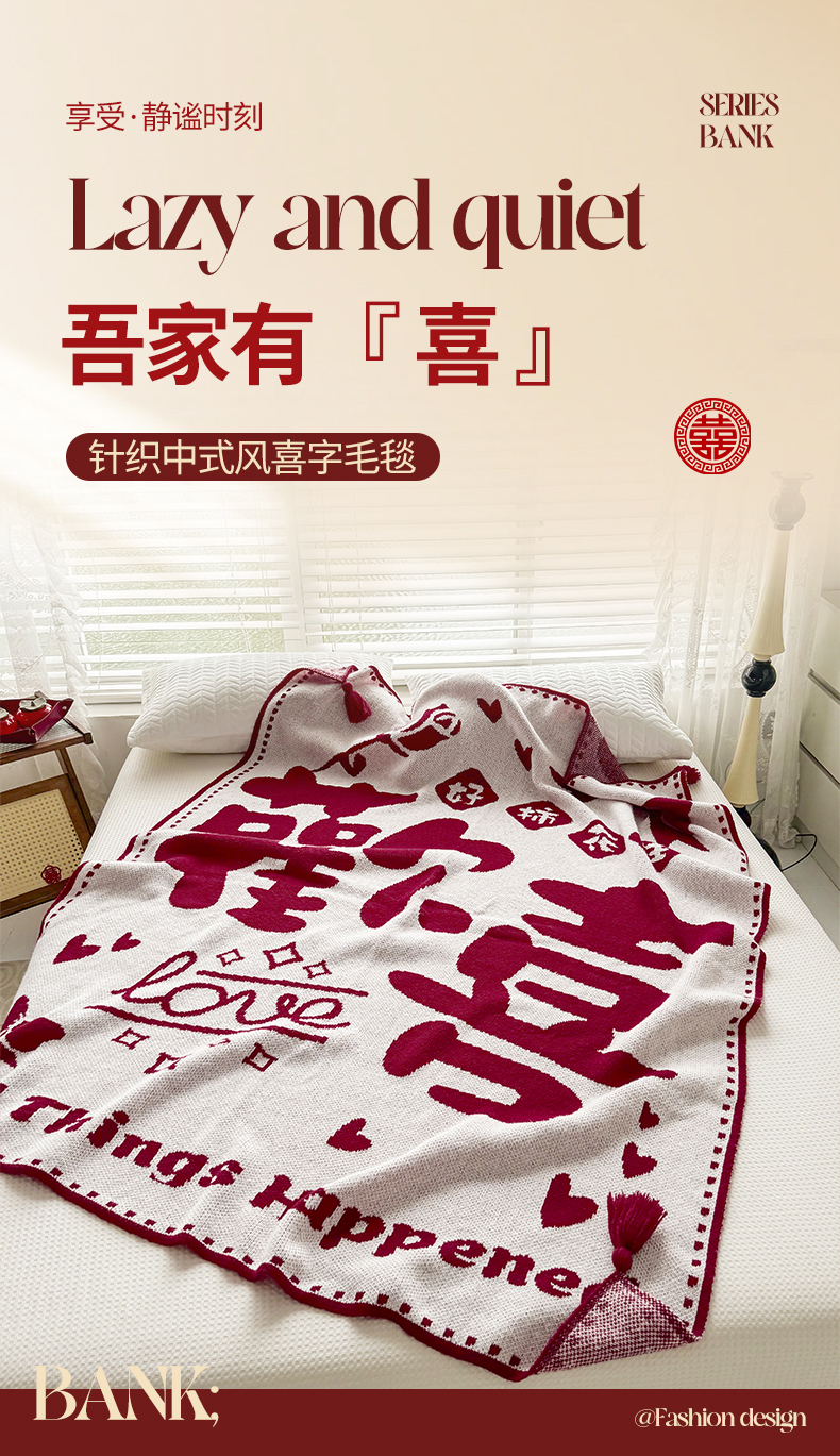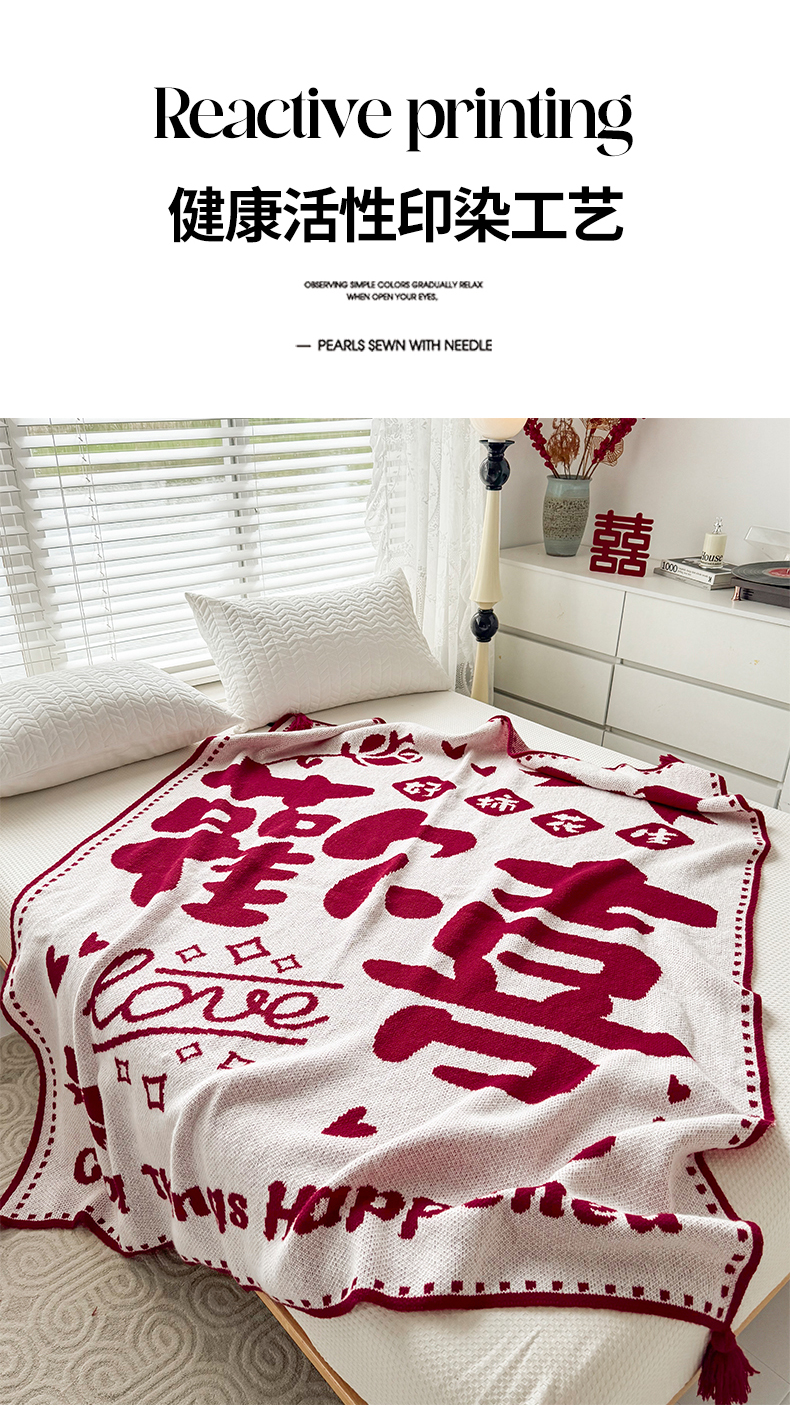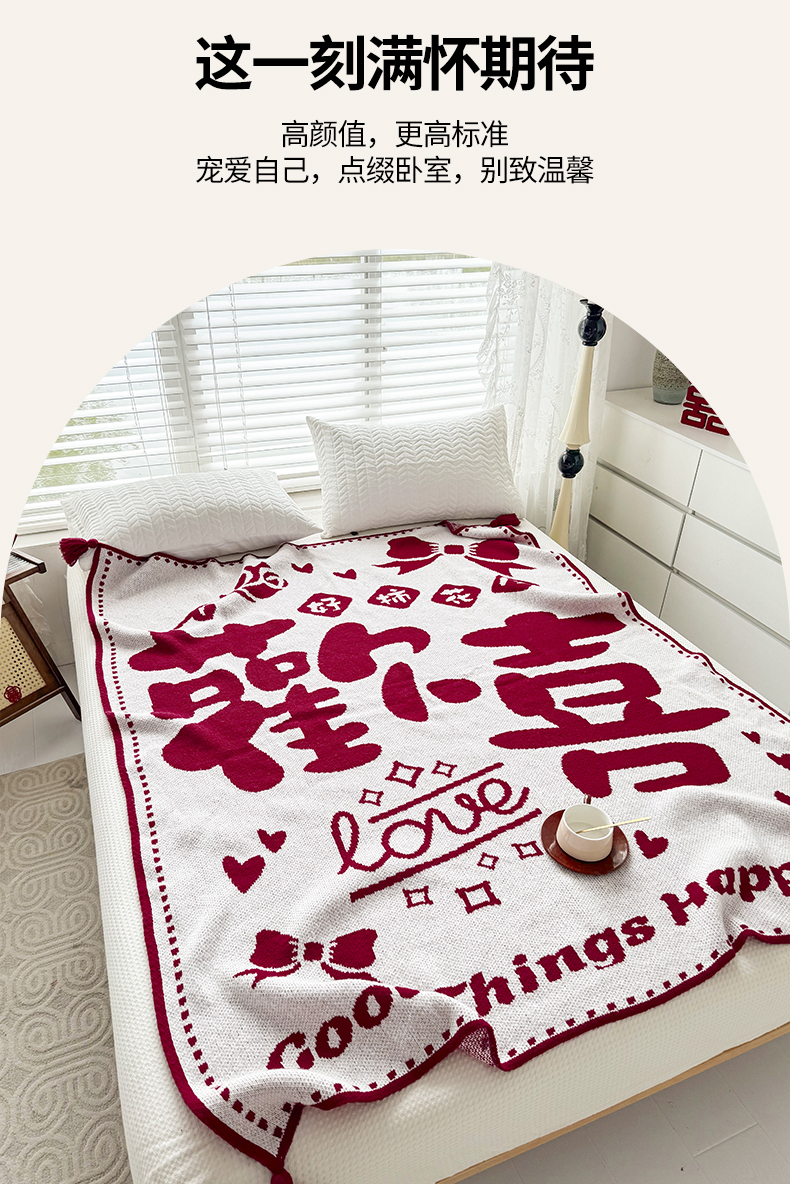 当前位置: 91家纺网 > 商品网购 > 毛毯休闲毯绒毯 > 毛毯 > 栩裕纺织 2024新款中式风高端婚礼喜字毛毯(可定制) 针织喜-欢喜喜字盖毯