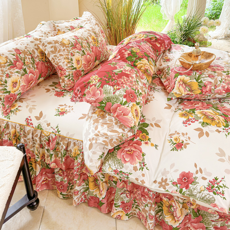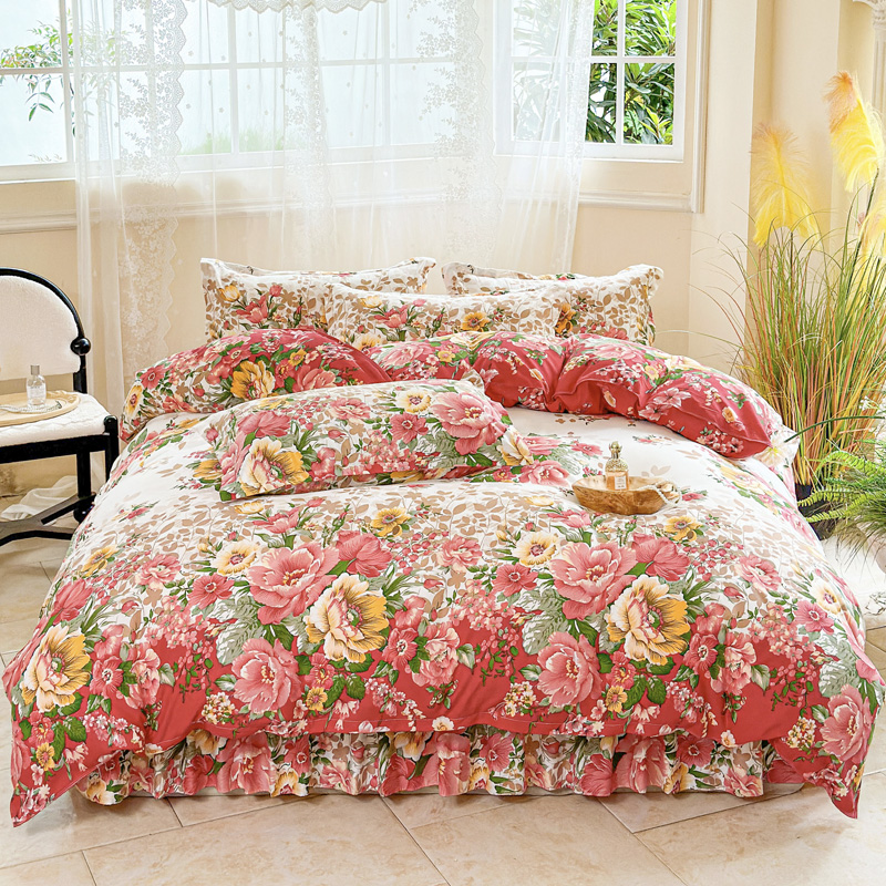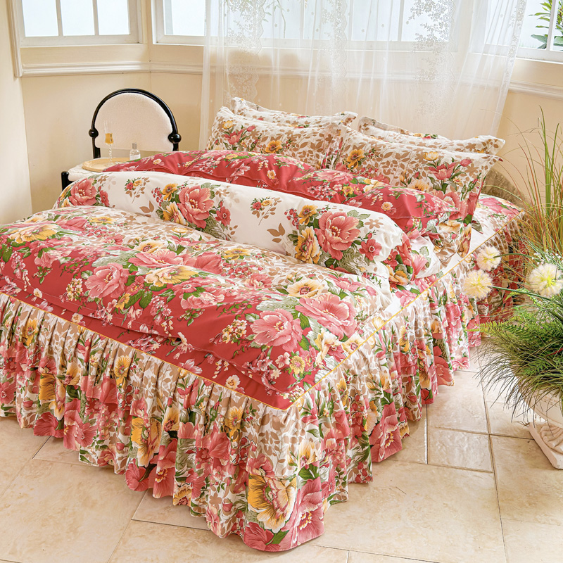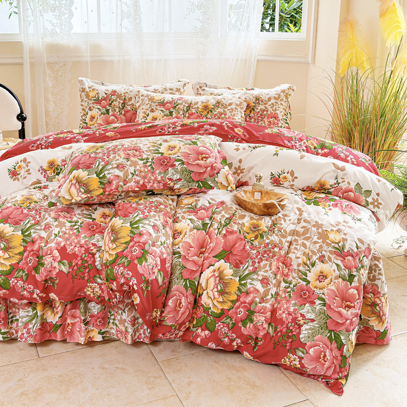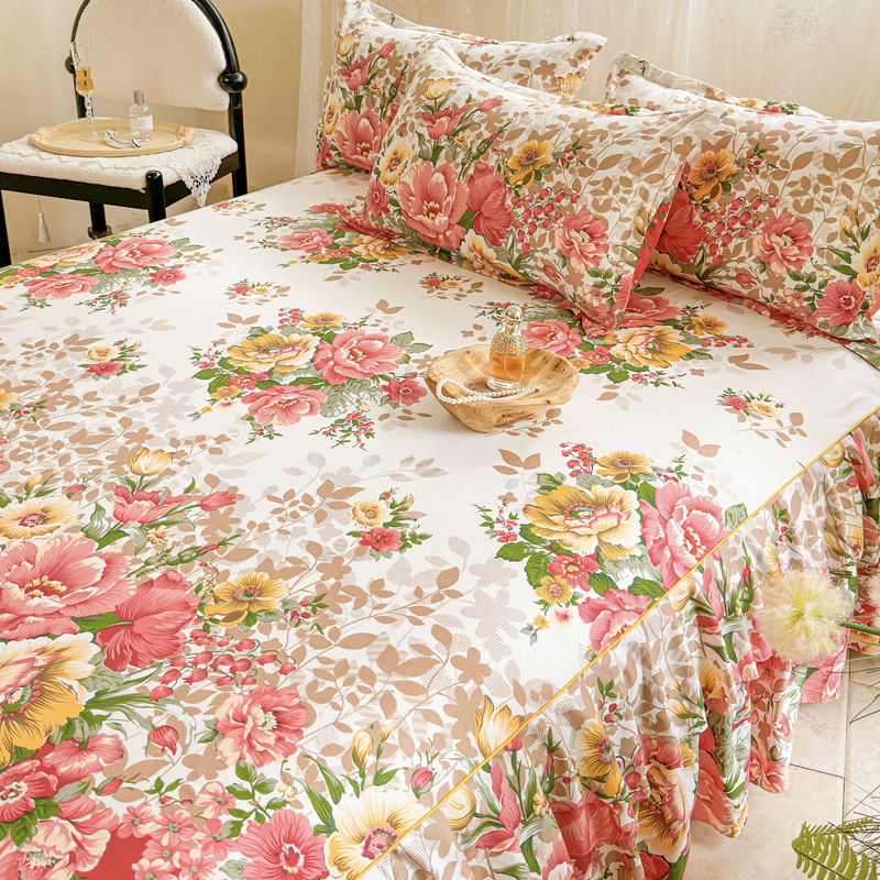 当前位置: 91家纺网 > 商品网购 > 床品套件 > 四件套 > 其它四件套 > 雨田家纺 2024新款亲肤棉印花床裙四件套 春暖花开