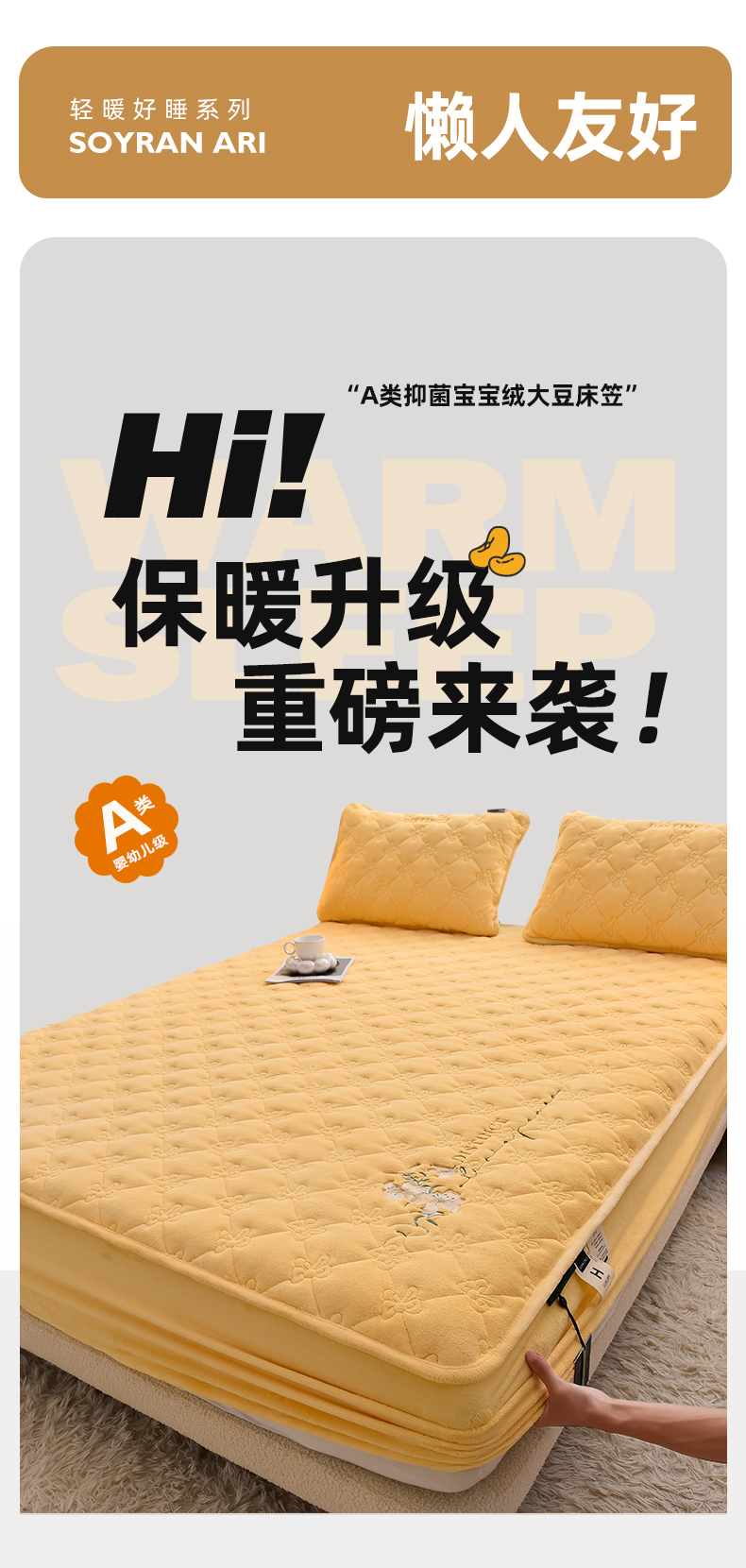 好眠好梦家纺 2024新款A类宝宝绒床笠-百合花开 暖黄