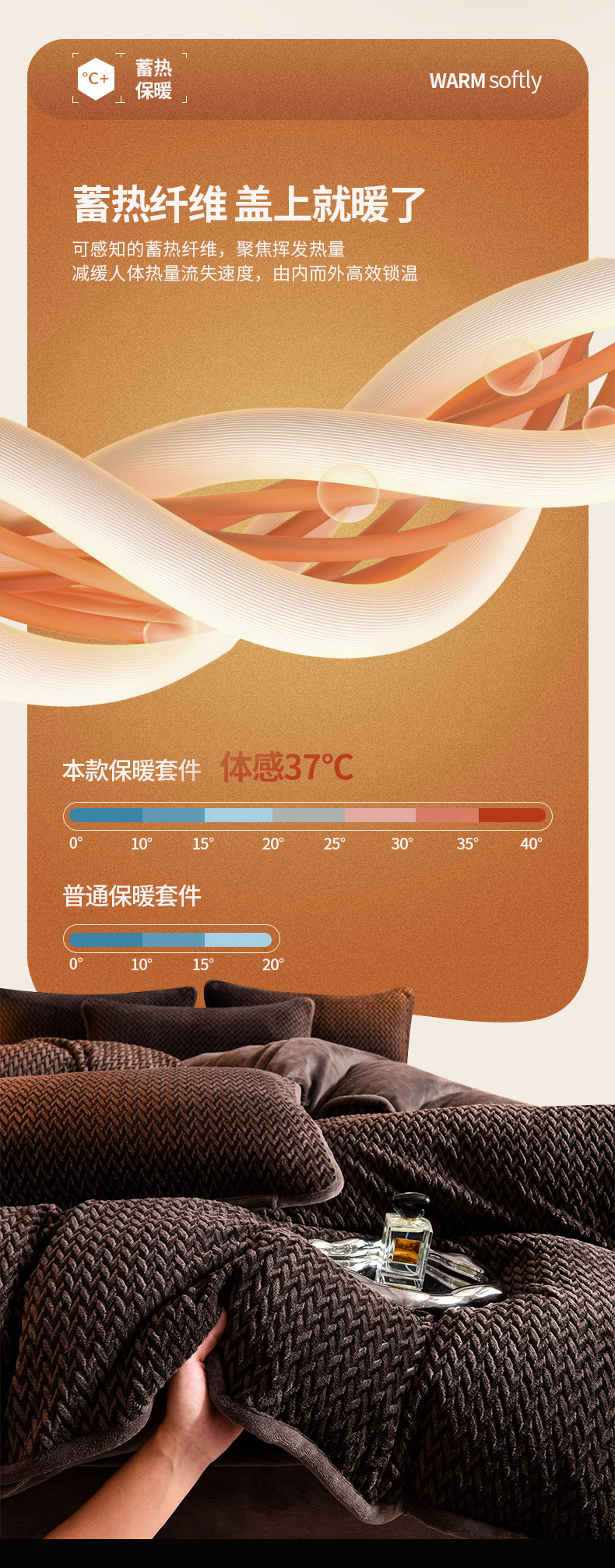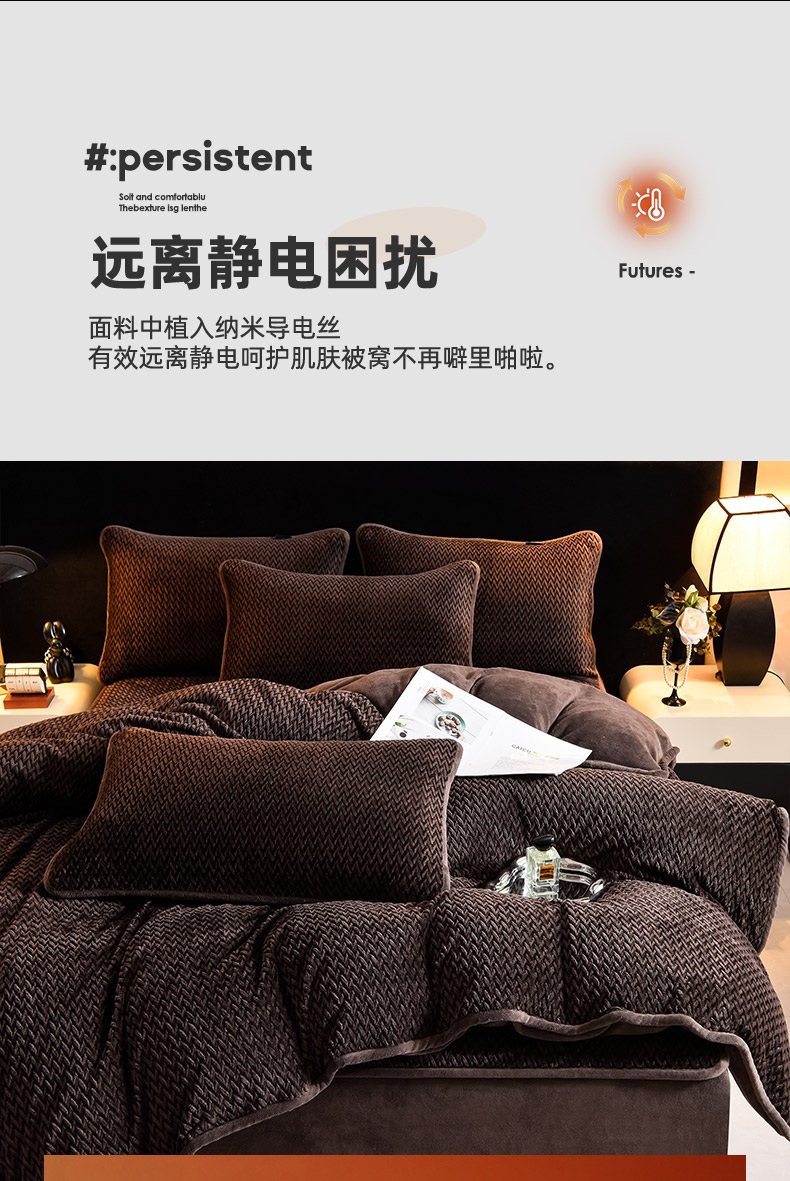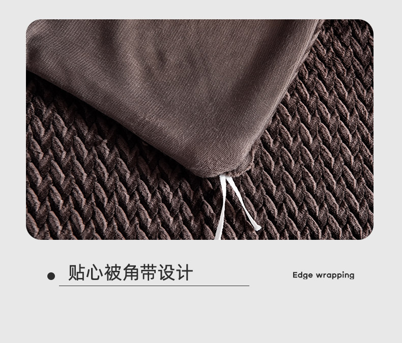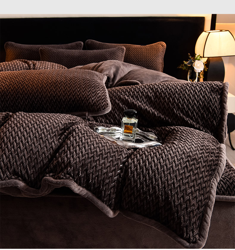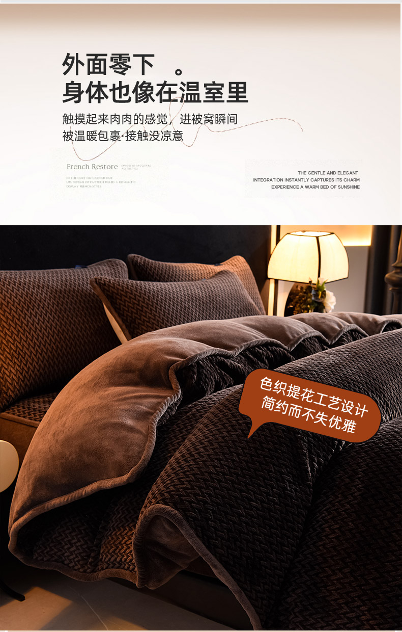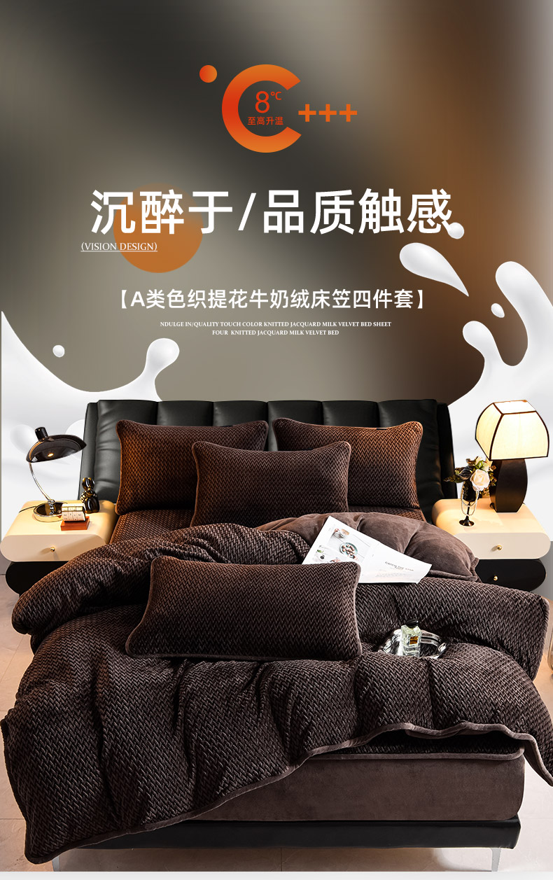 好眠好梦家纺 2024新款色织提花牛奶绒床笠四件套 咖啡