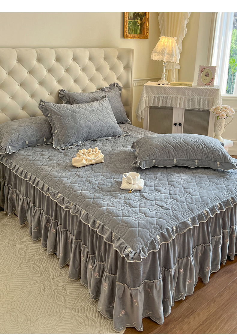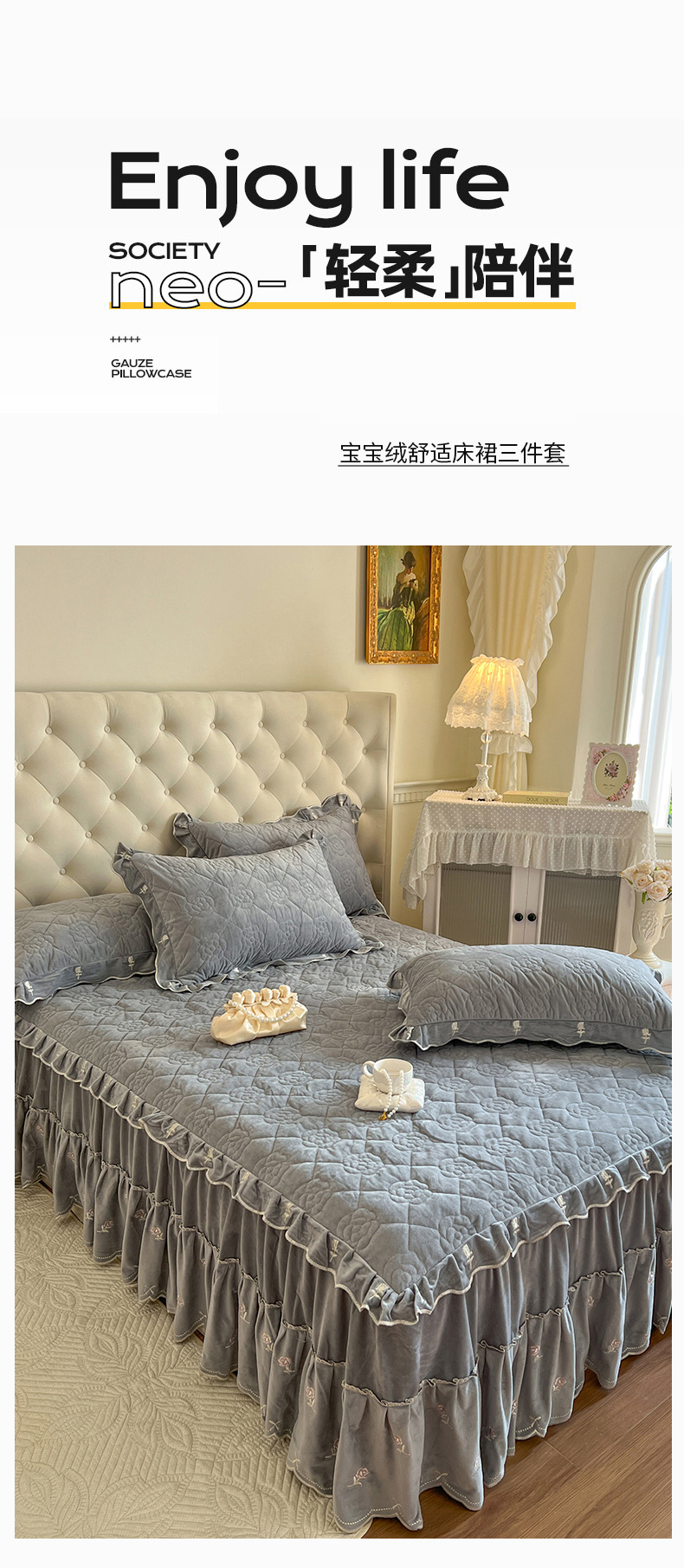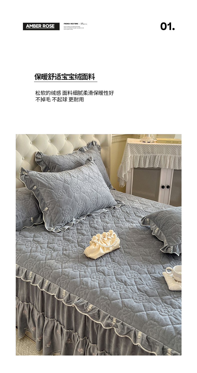 麒豆豆 2024新款宝宝绒床裙三件套-乐伊 乐伊-灰