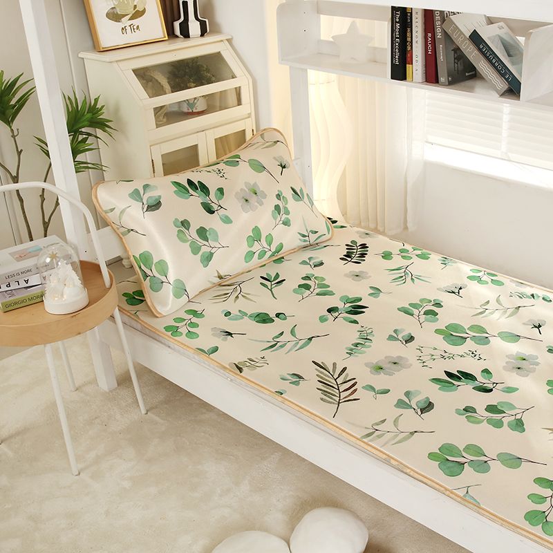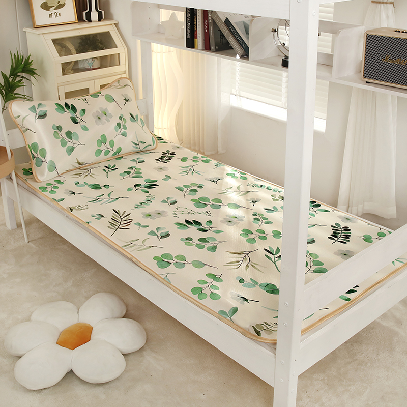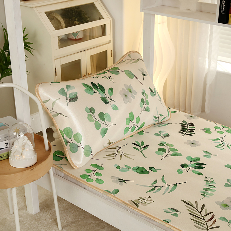 沁童儿童用品店 2025新款学生宿舍牛奶冰丝凉席两件套 绿意盎然