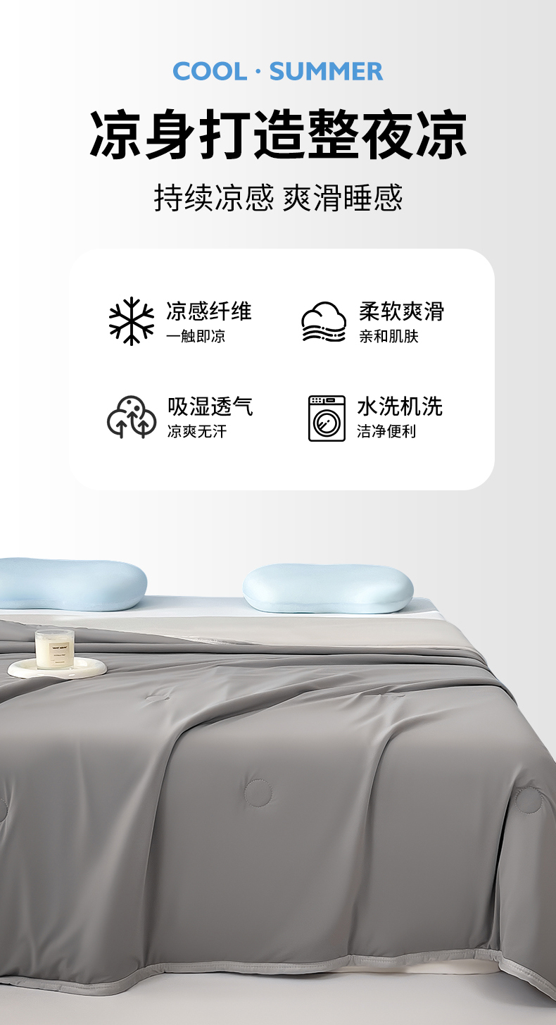 商品名称:世纪绒品 2025新款A类日本凉感科技冰淇淋云母凉感丝夏被 月影深灰