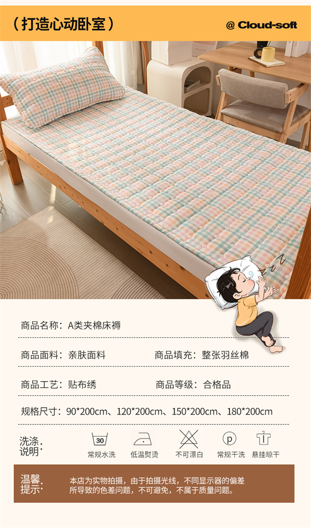 商品名称:(总)恋绒家纺 无印风高低床学生床褥水洗棉宿舍上下铺软床垫