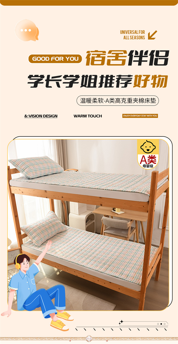 (总)恋绒家纺 无印风高低床学生床褥水洗棉宿舍上下铺软床垫