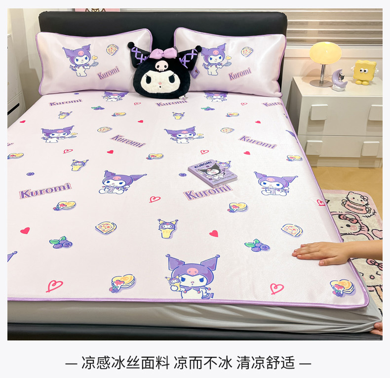 商品名称:暮思家居 2025新款三丽鸥正版授权数码印花A类可机洗1200D冰丝凉席三件套床笠款系列 床笠款-甜甜库洛米