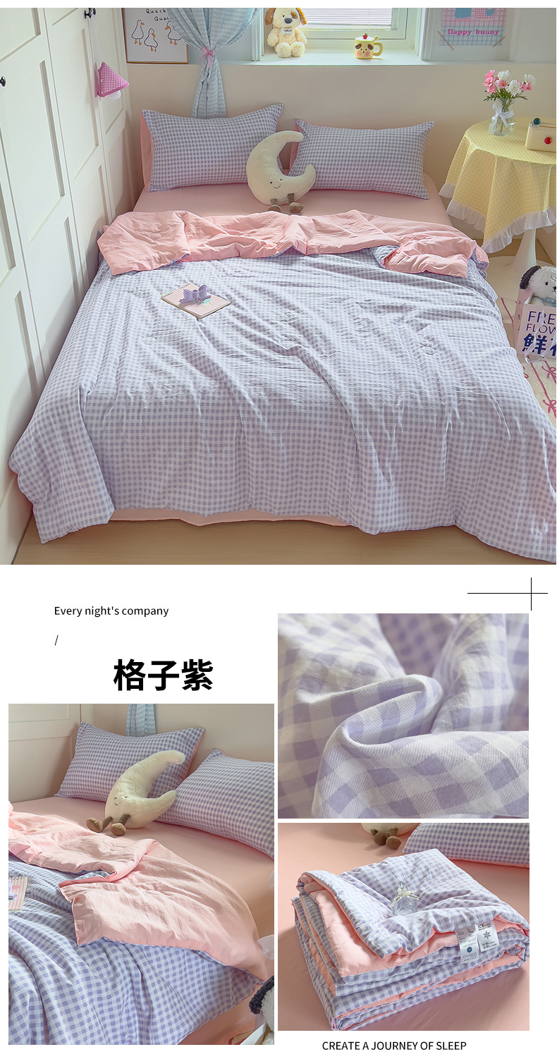 被子 > 夏被 > N先生+V 13814689556 发大图/买家秀 2025新款云朵棉皱皱纱夏被夏凉被空调被 格子紫