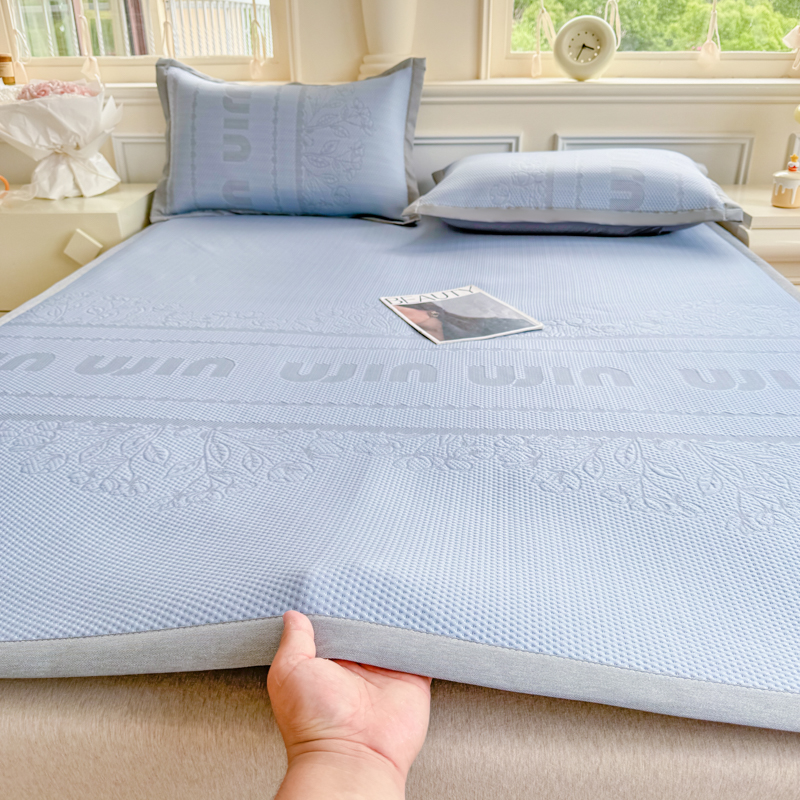 商品名称:(总)2025高端轻奢简约提花凉感PE高分子复合软凉席三件套纯色冰豆豆冰丝凉席子三件套件空调席床单三明治
