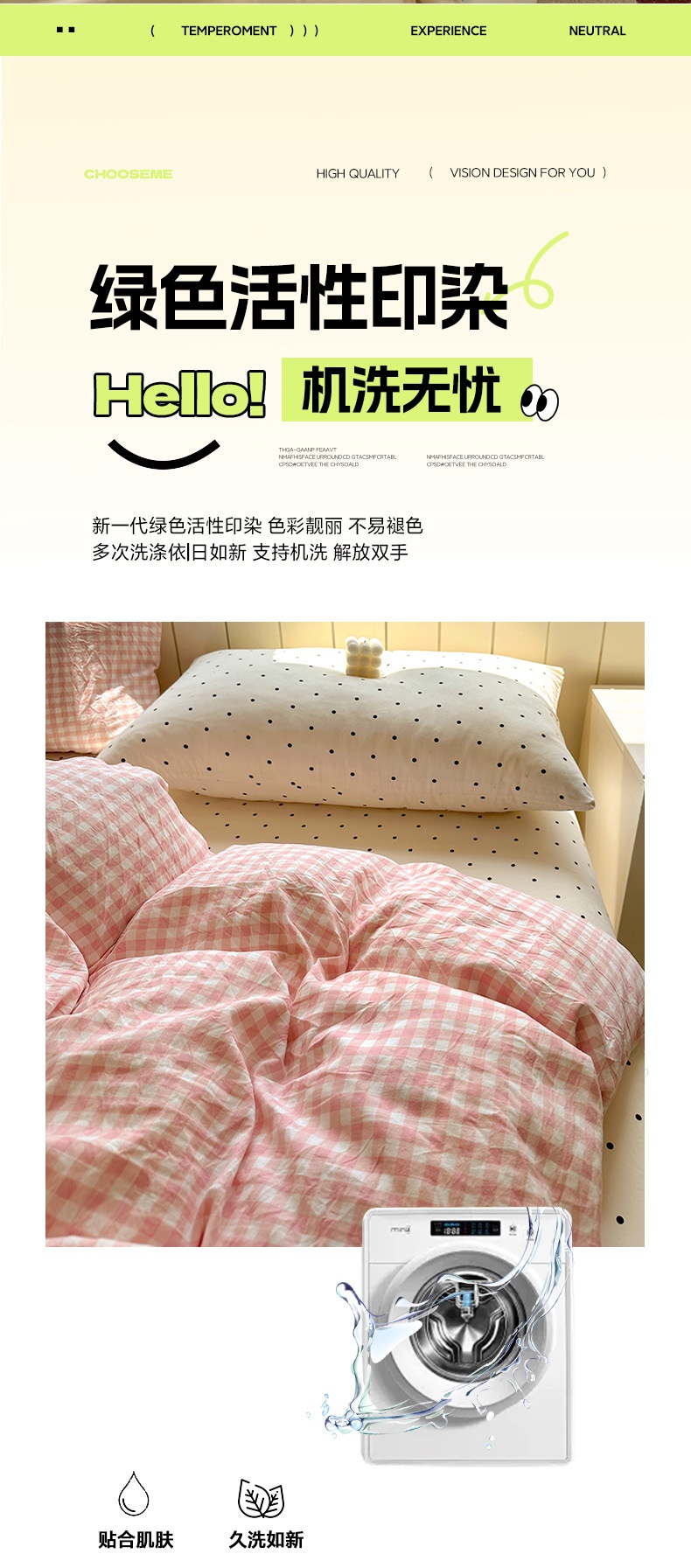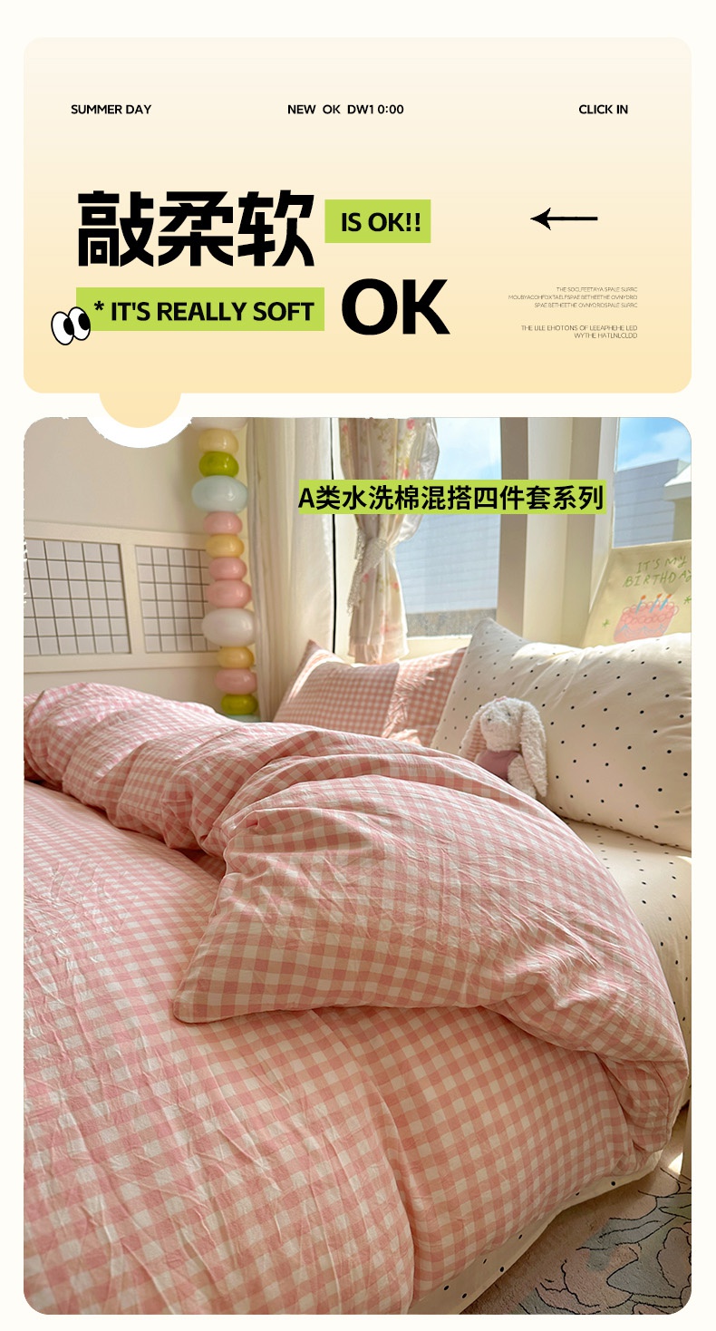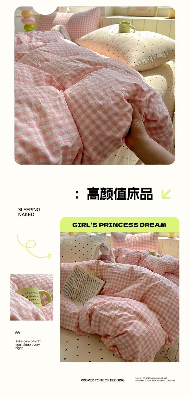 当前位置: 91家纺网 > 商品网购 > 床品套件 > 四件套 > 水洗棉四件套 > 冕悠家纺 2025新款少女心超柔加厚混搭格子水洗棉四件套(加微信提供买家秀 ) 粉格+米点
