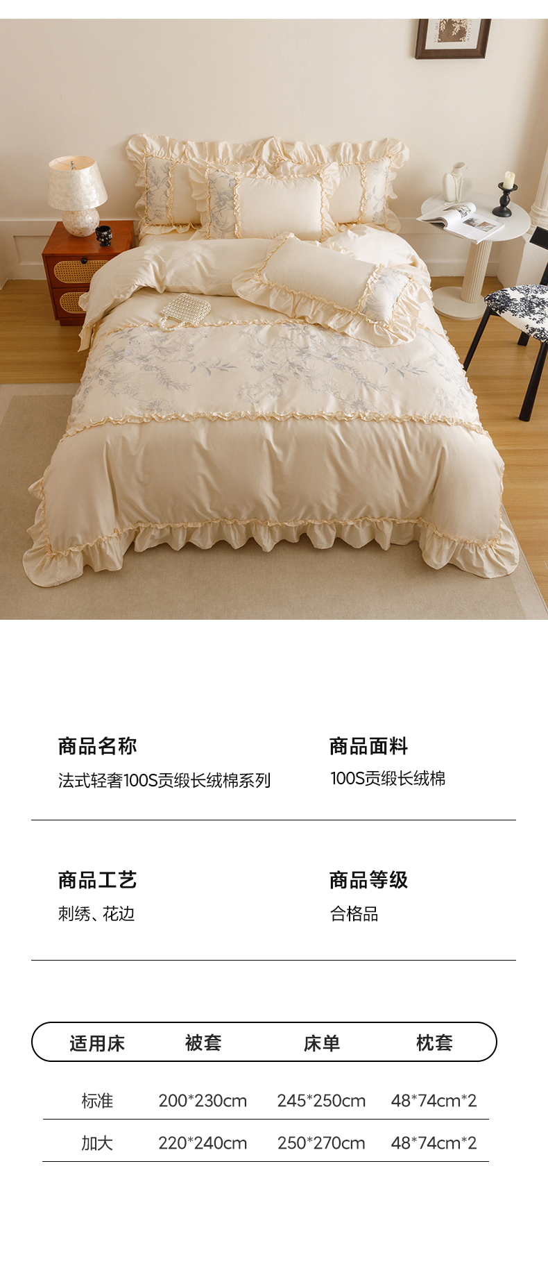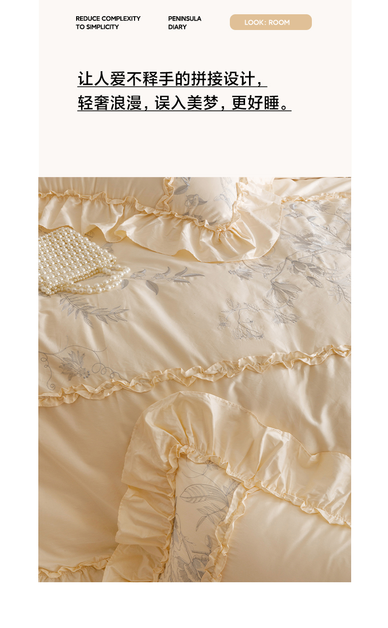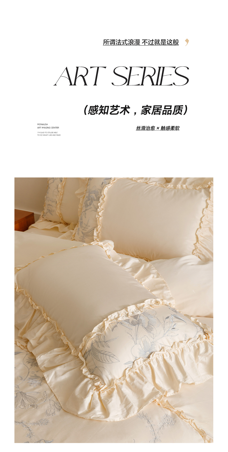 商品名称:沐棉家居 2025新款法式轻奢100支贡缎长绒棉四件套 安娜