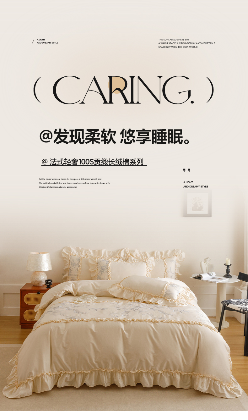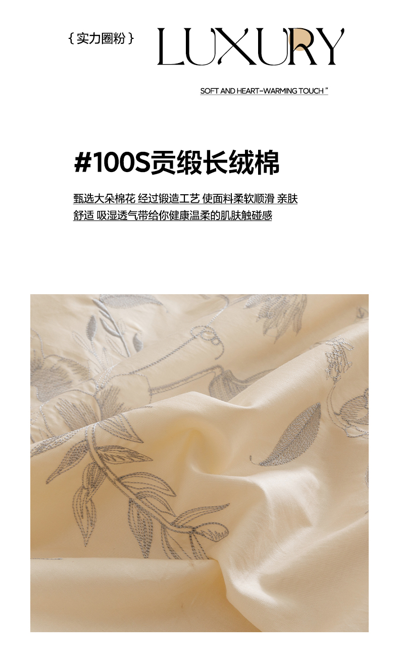 (总)沐棉家居 2025新款法式轻奢100支贡缎长绒棉四件套,安娜,轻舞