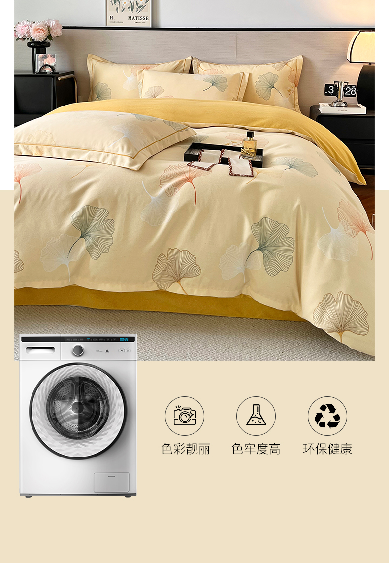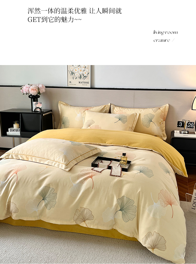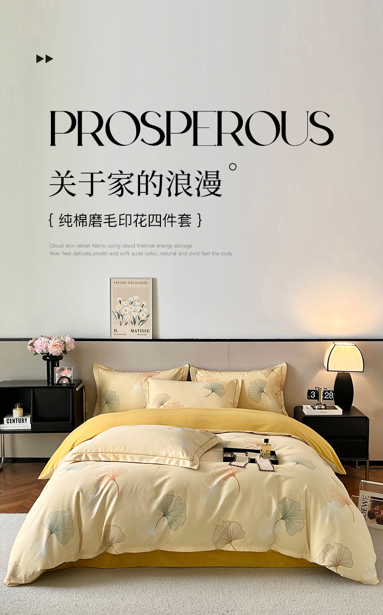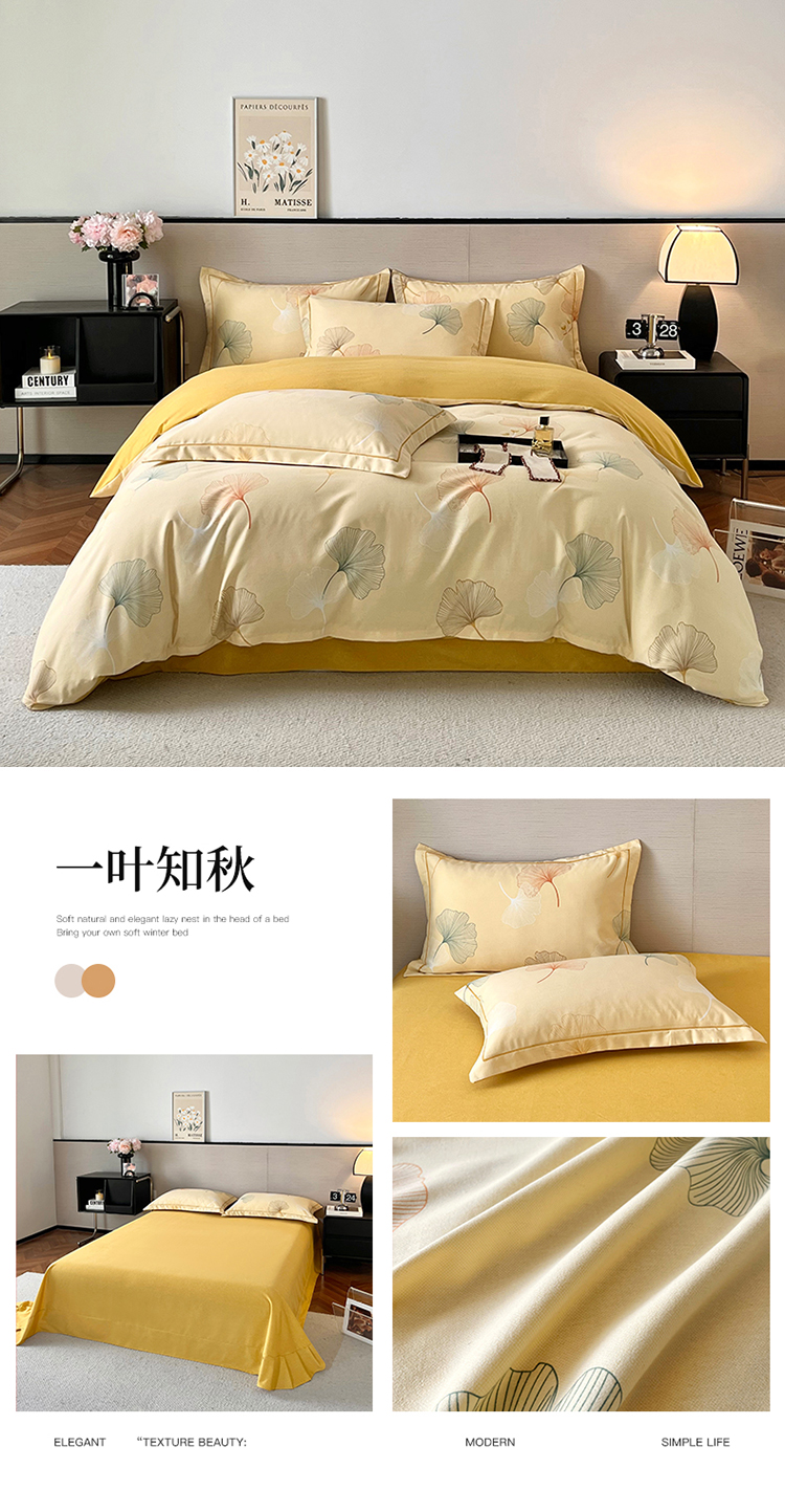 商品名称:帛美家纺 2025新款加厚纯棉全棉磨毛印花四件套 一叶知秋