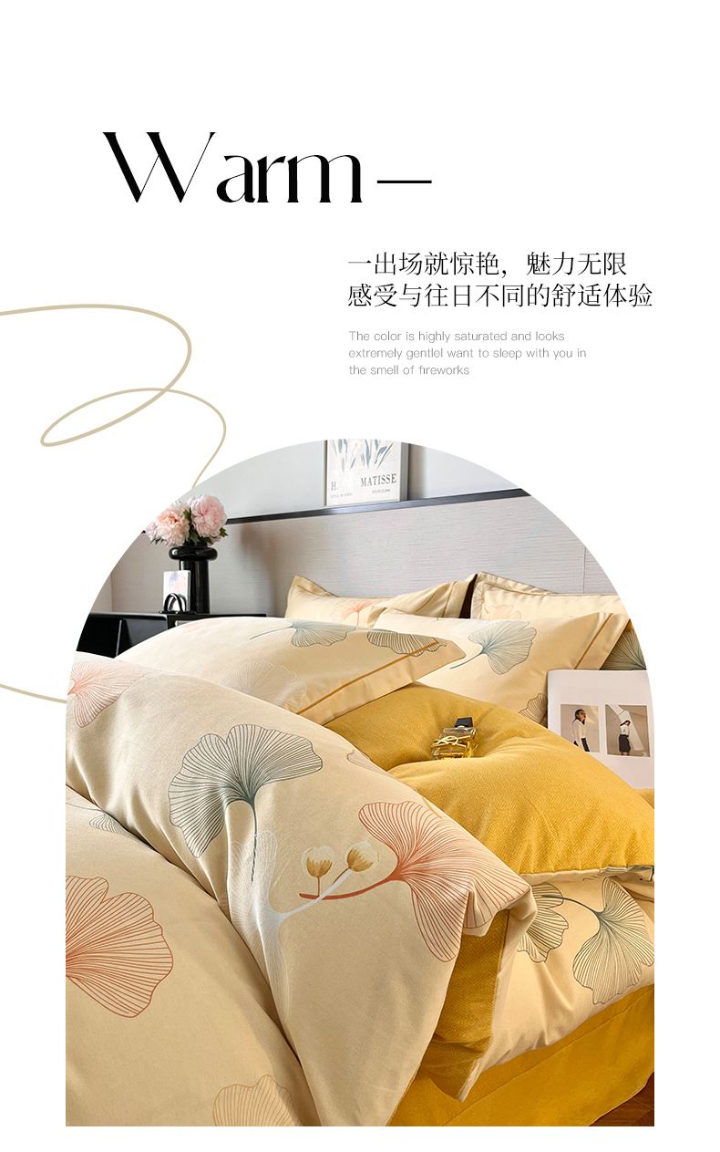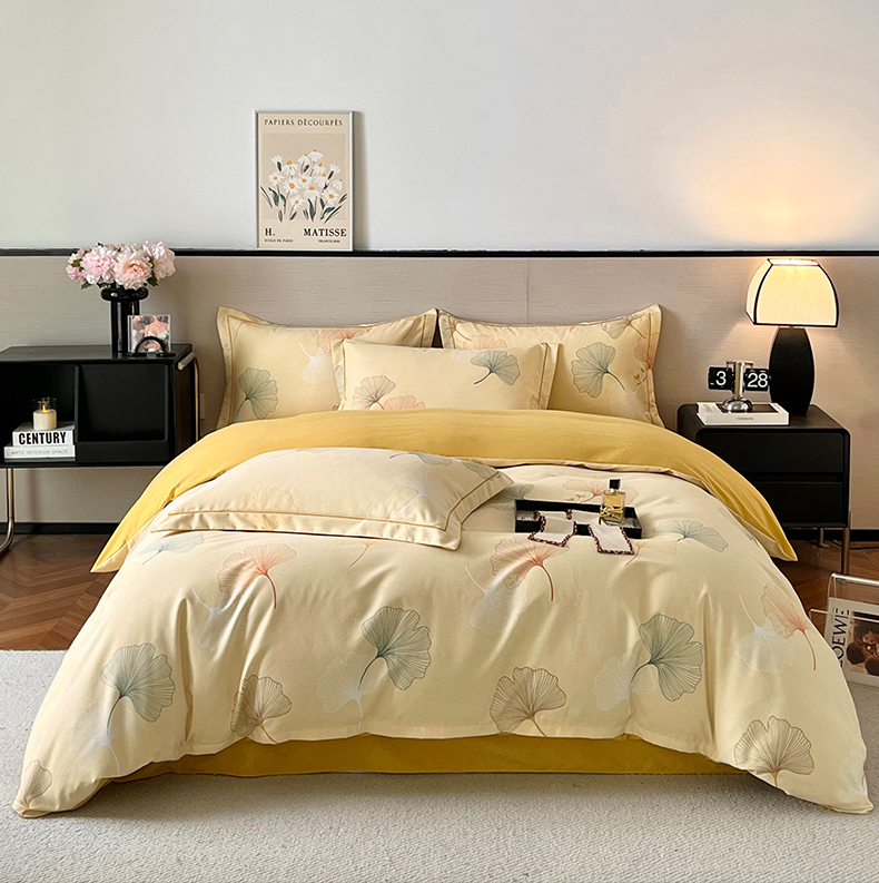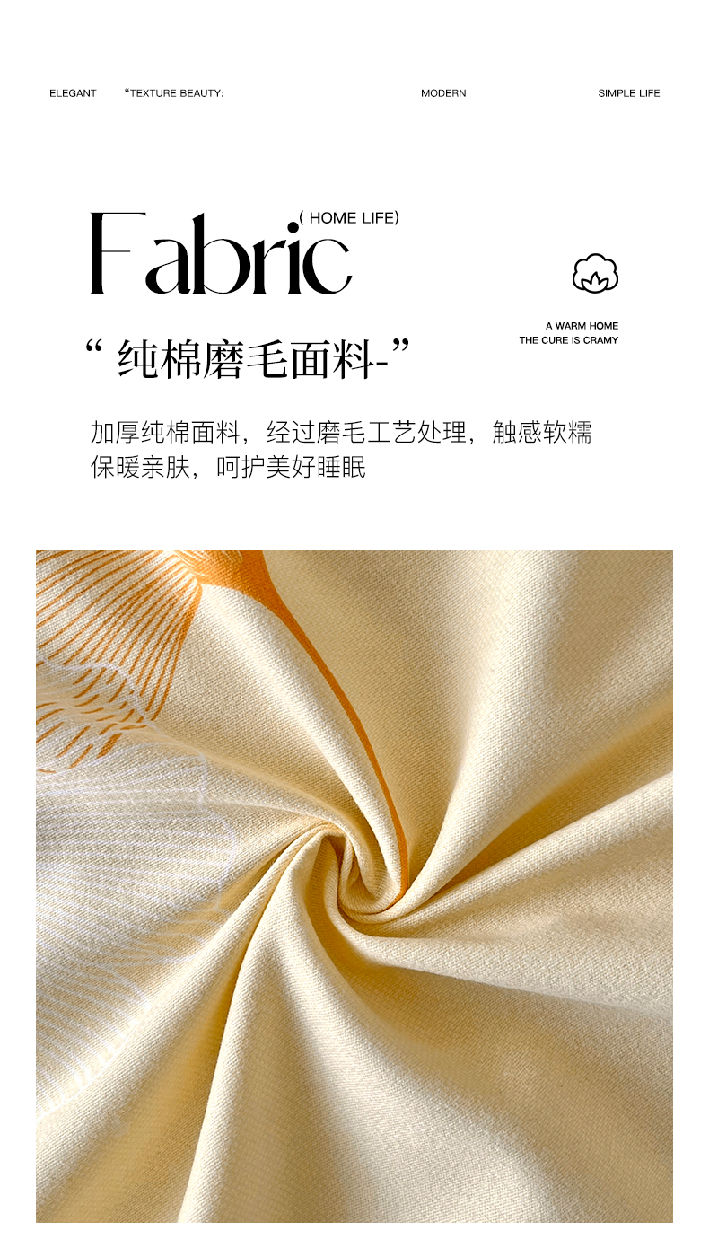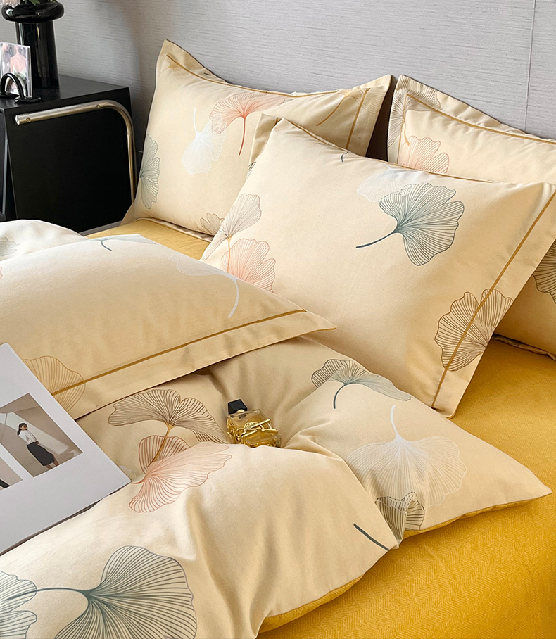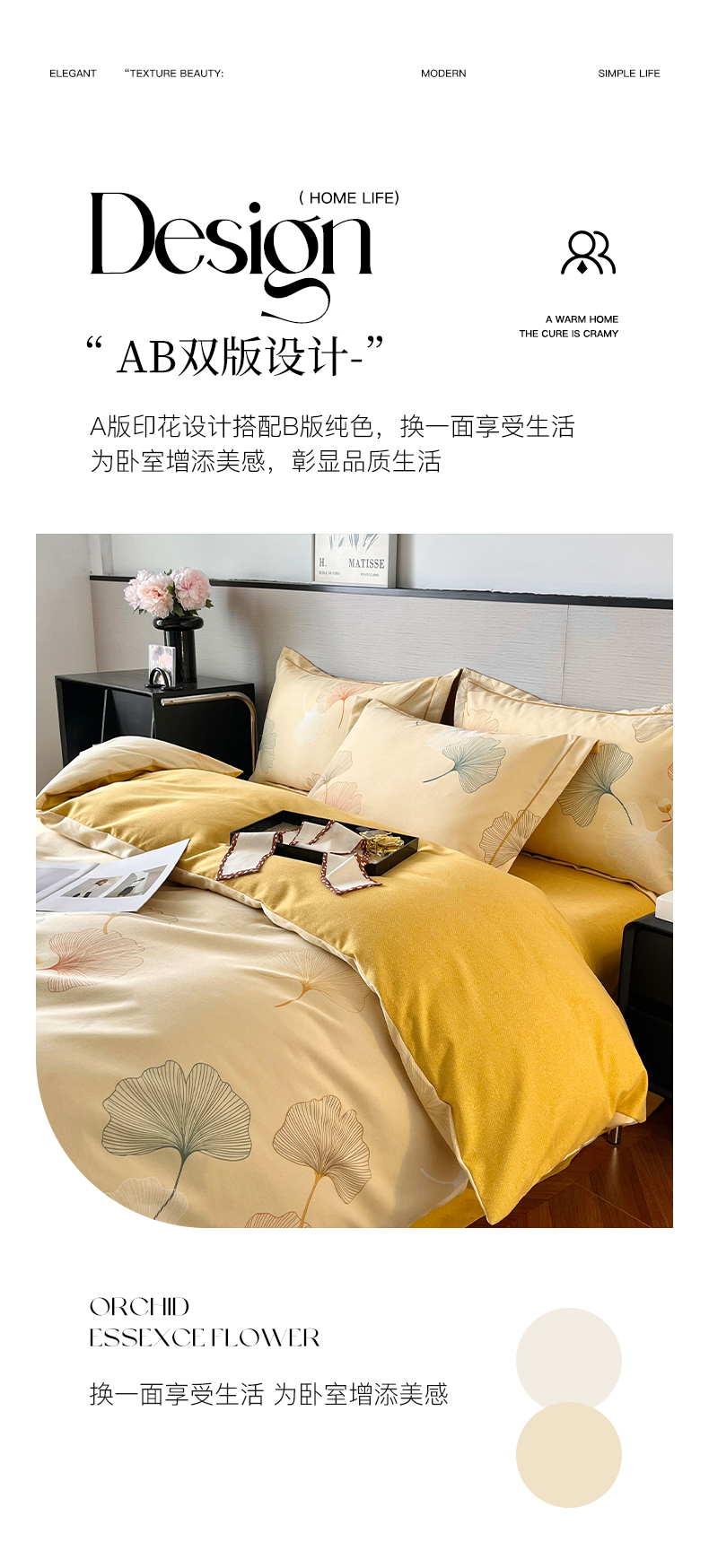 商品名称:帛美家纺 2025新款加厚纯棉全棉磨毛印花四件套 一叶知秋