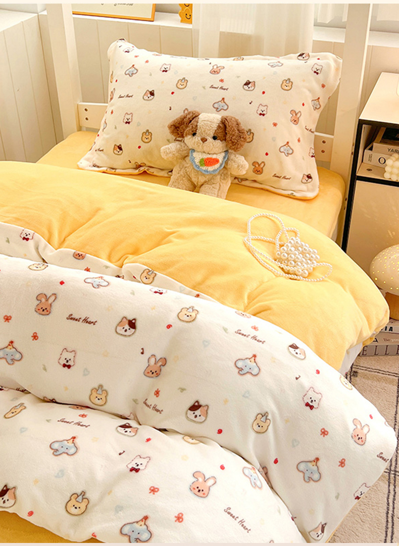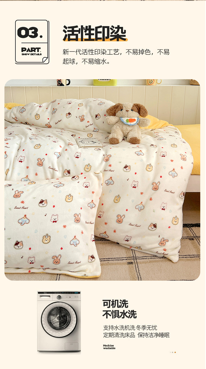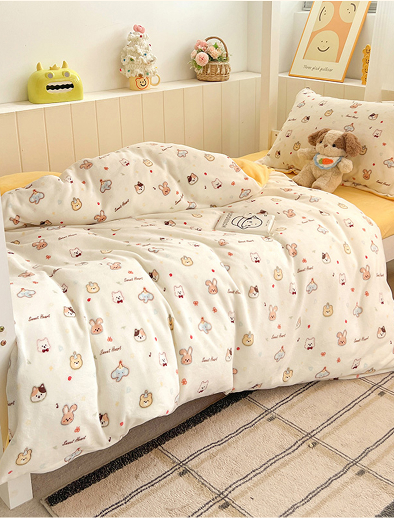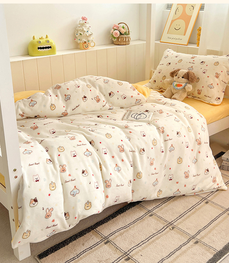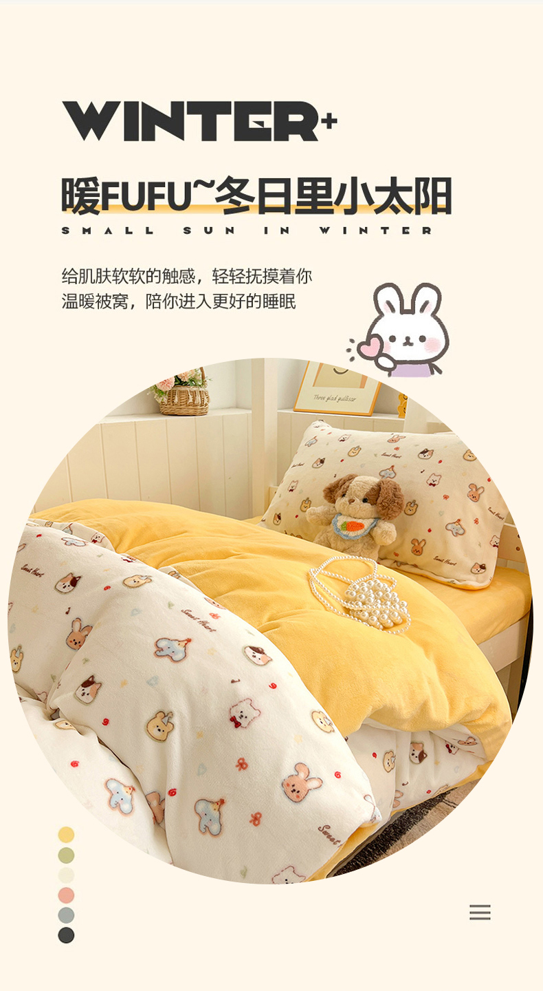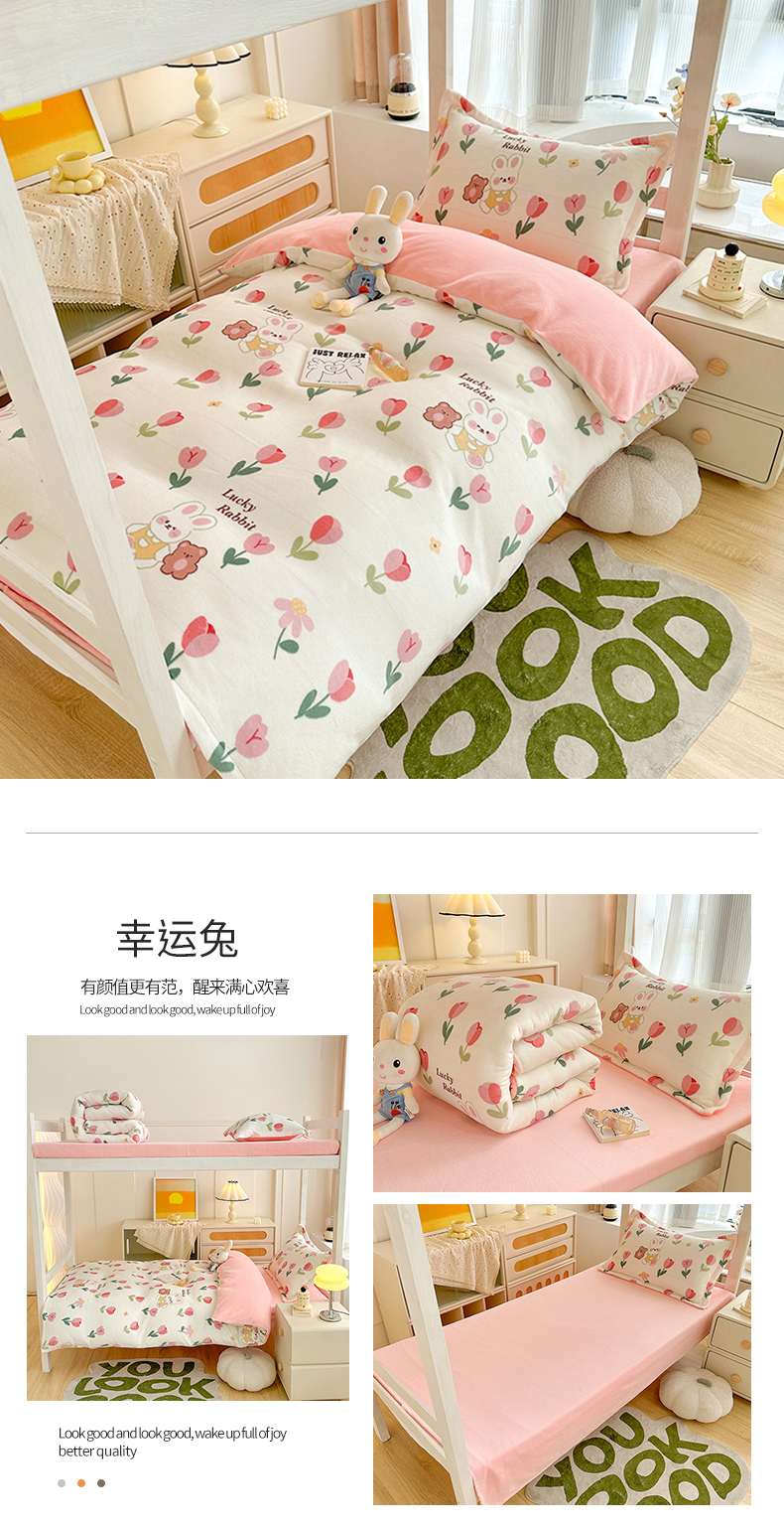 卡普二店 2024新款爆款加厚卡通小清新全棉纯棉学生宿舍三件套床笠隔天可拿 花田小兔,花田小兔