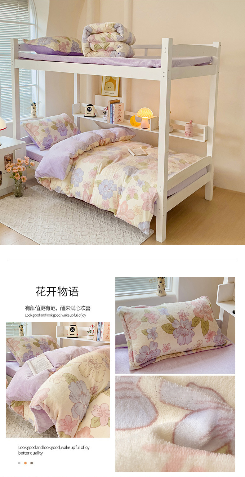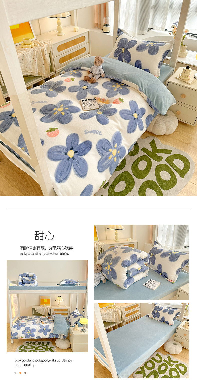 卡普二店 2024新款爆款加厚卡通小清新全棉纯棉学生宿舍三件套床笠隔天可拿 花汀叶妤,花汀叶妤