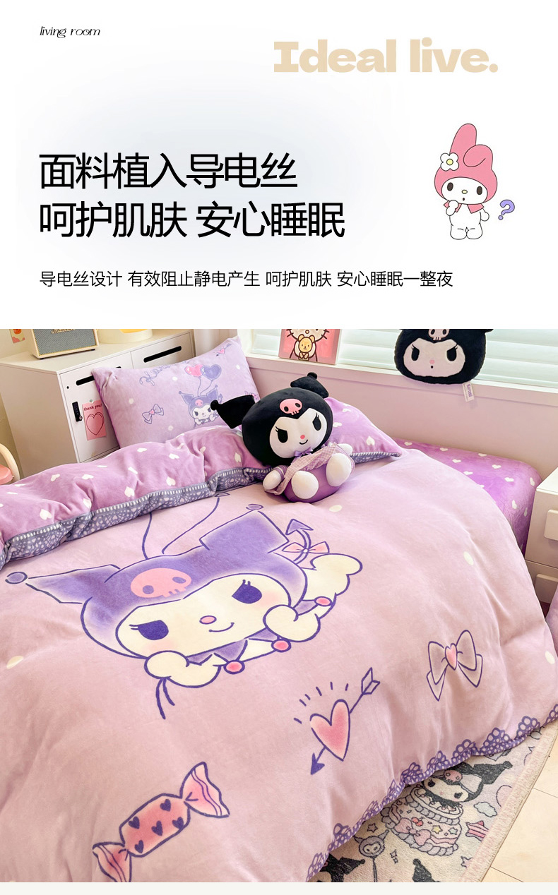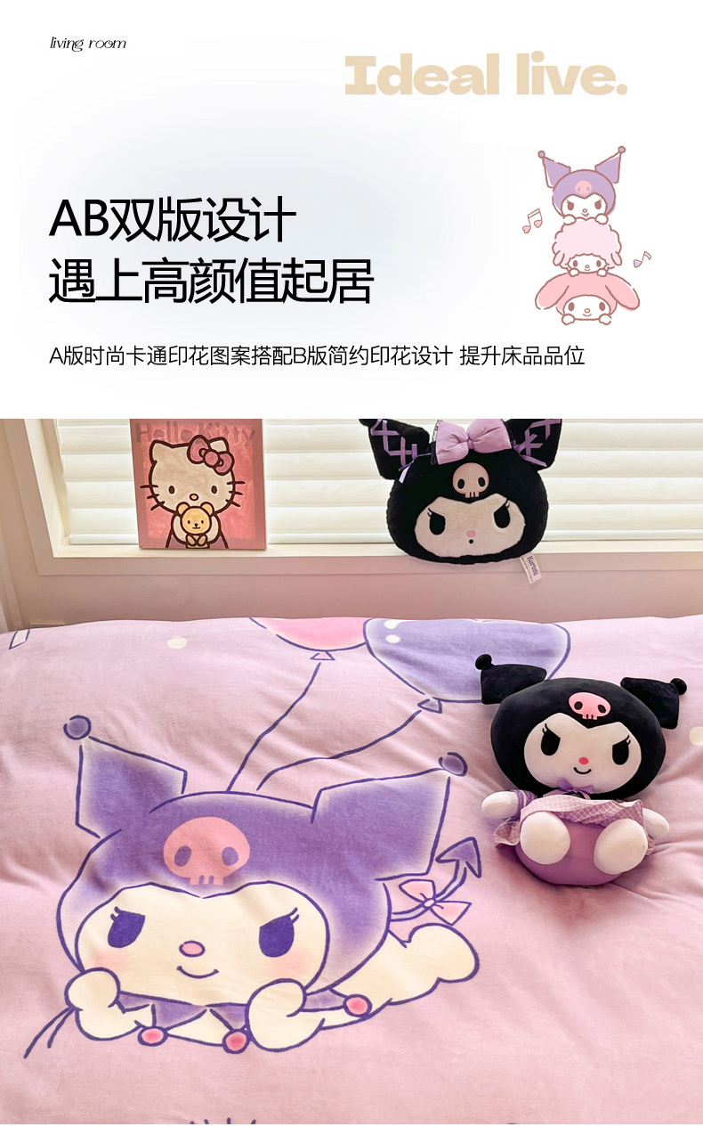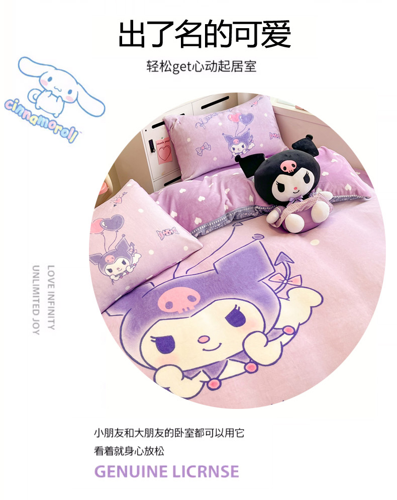 当前位置: 91家纺网 > 商品网购 > 床品套件 > 四件套 > 牛奶绒四件套 > 暮思家居 2025新款正版授权三丽鸥大阪数码印花高克重加厚保暖牛奶绒四件套 绒大阪-梦想库洛米