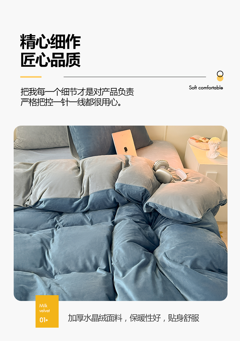当前位置: 91家纺网 > 商品网购 > 床品套件 > 四件套 > 水晶绒四件套 > 悦织湾家纺 2025新款亲肤水晶绒四件套纯色轻奢加厚保暖床单床笠款四件套学生宿舍三件套单被套 水晶绒深灰