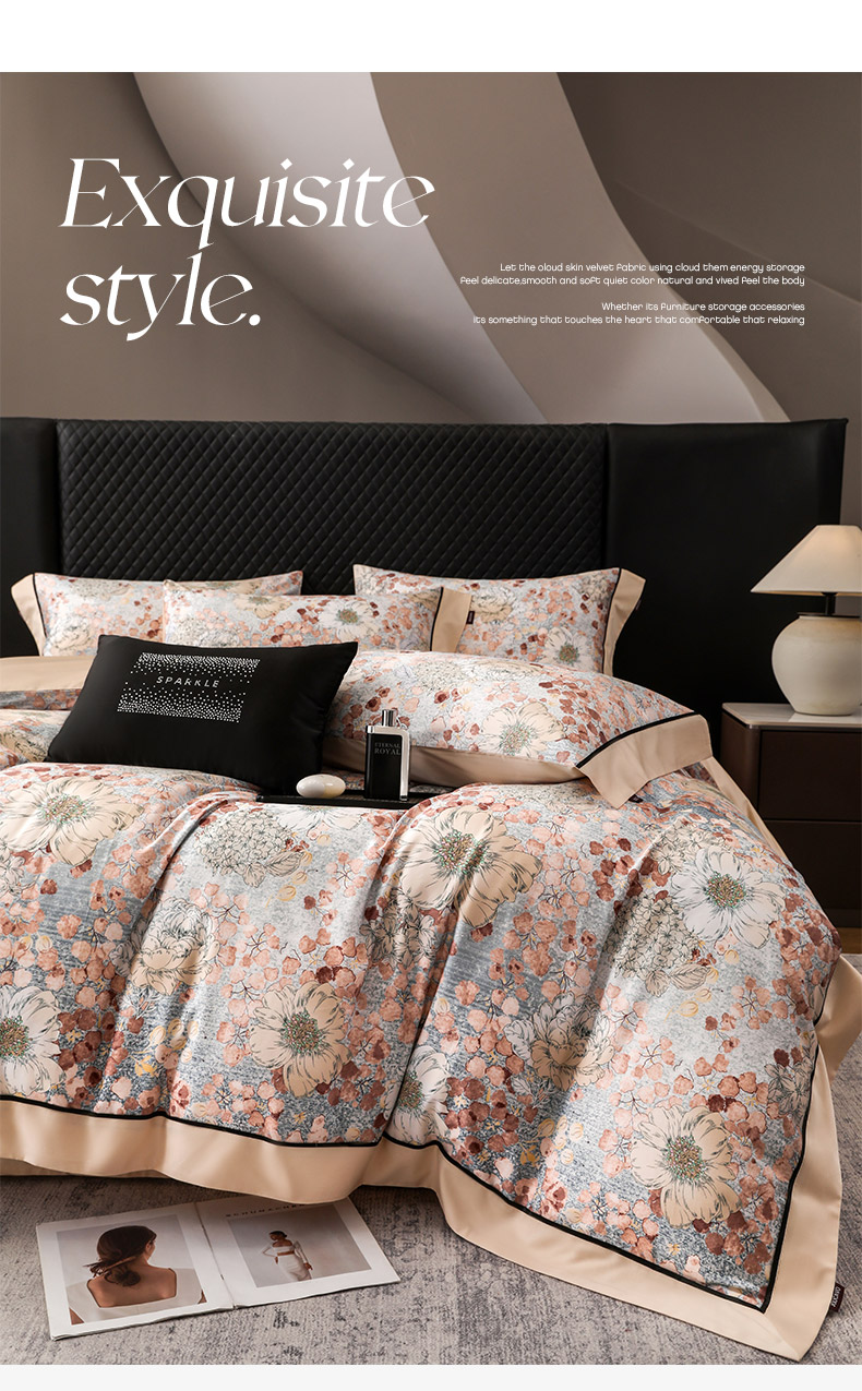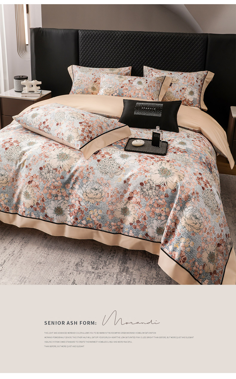 (总)乔利卡沃 2025秋冬季A类加厚全棉磨毛四件套纯棉保暖美式轻奢长绒棉数码印花高端床上用品,花弄影-黄,花弄影-蓝,花弄影-米,花弄影-紫