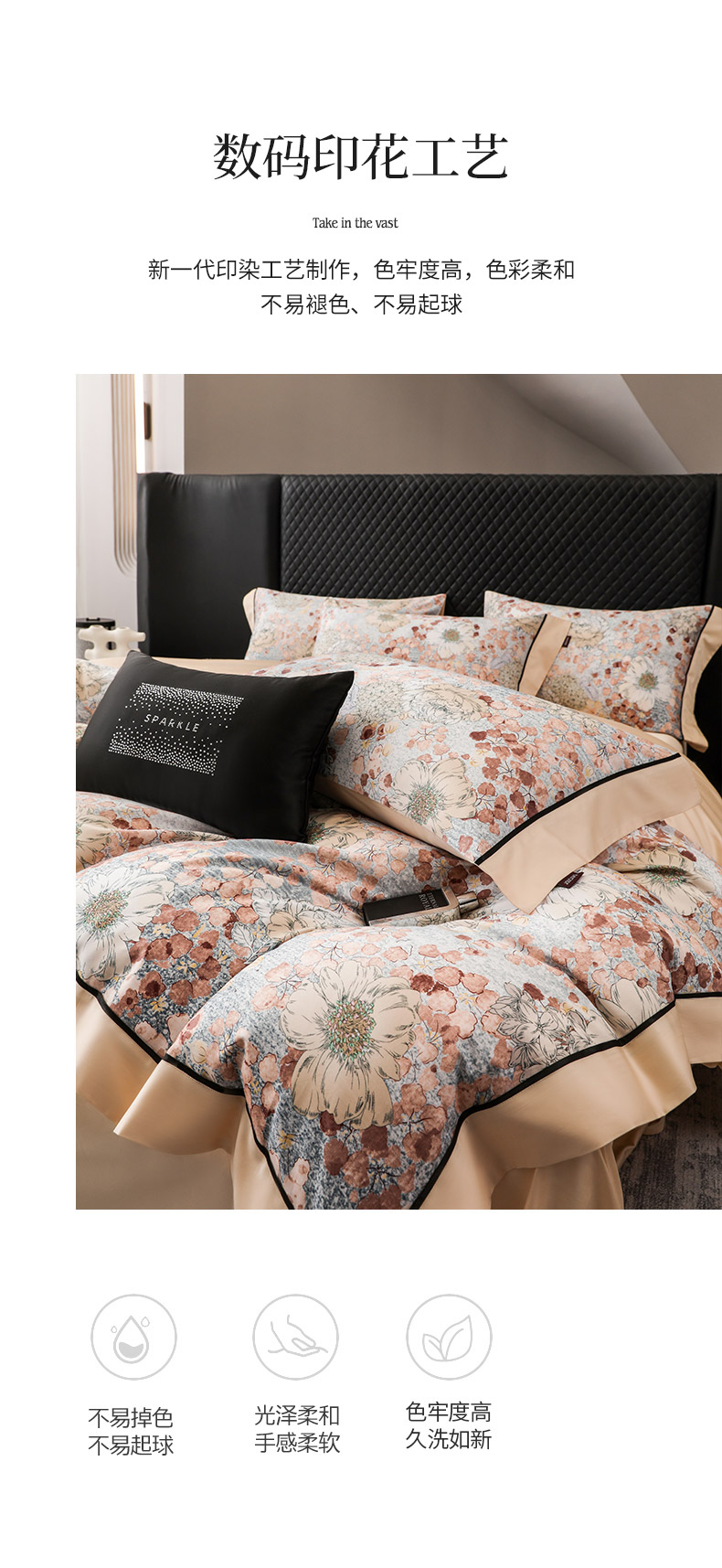 商品名称:2025新款直播热款A类数码印花全棉四件套纯棉复古美式长绒棉油画风高端床单被套床上用品 弗嘉