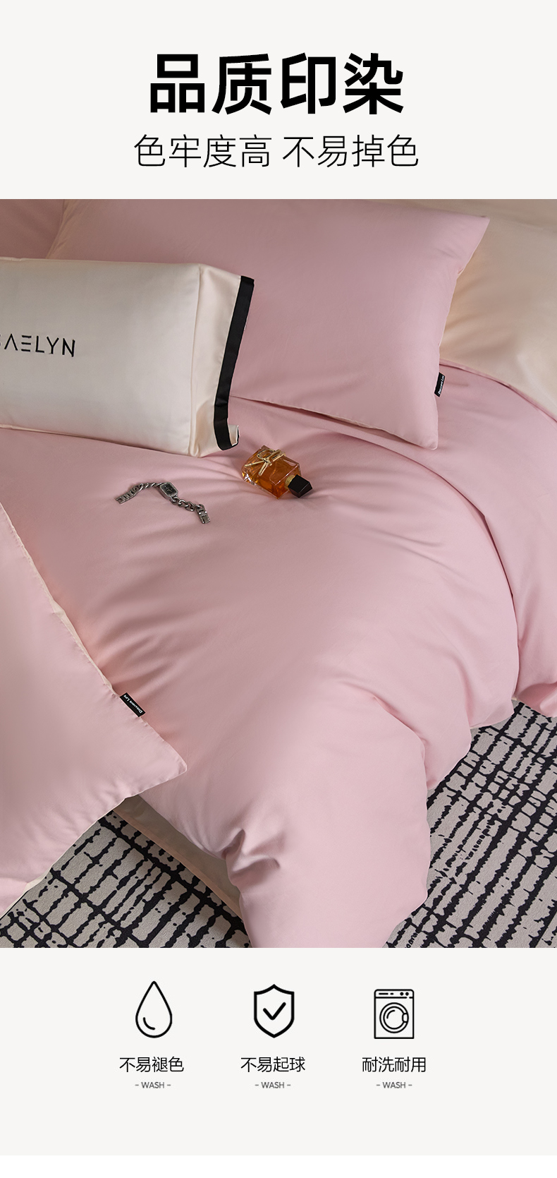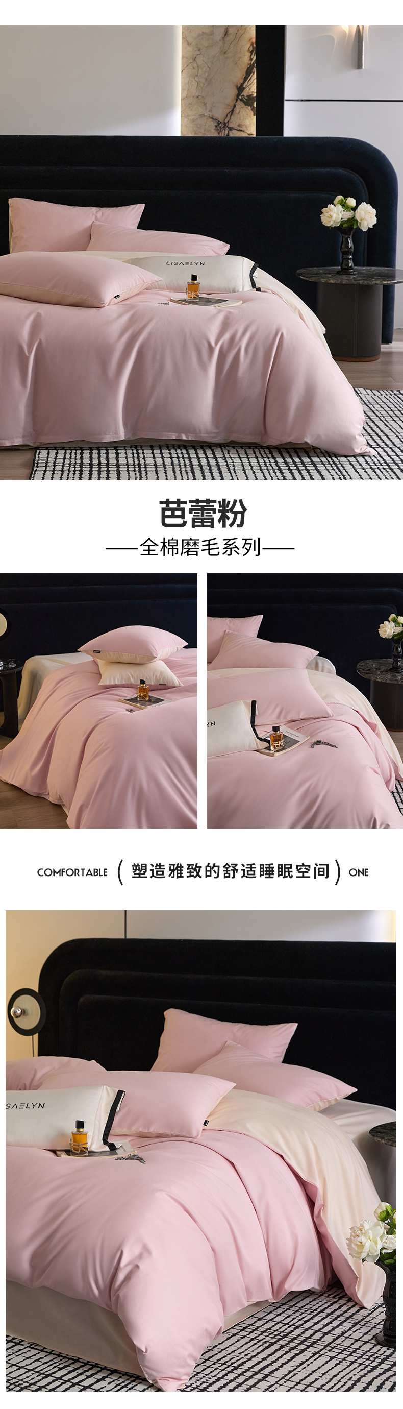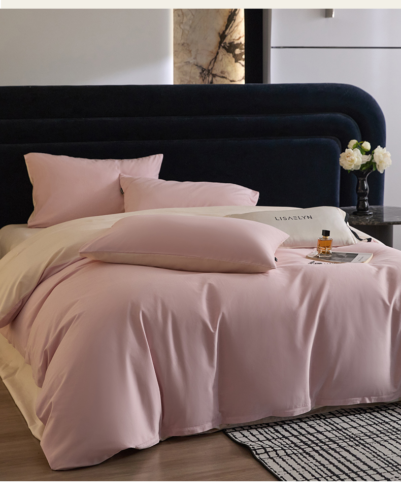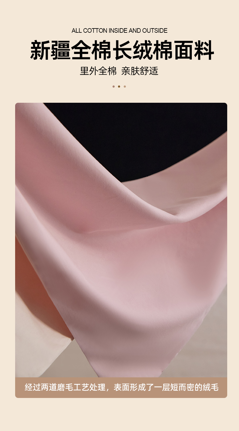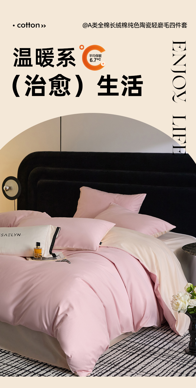 商品名称:朵希曼 2026新款全棉纯色长绒棉磨毛系列四件套 芭蕾粉