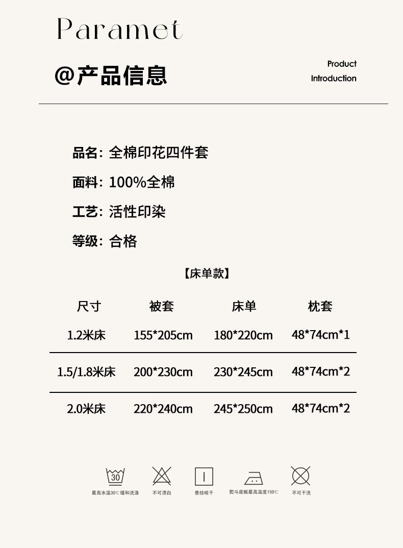 商品名称:朵希曼 2026新款全棉印花小清新系列四件套 烟火漾