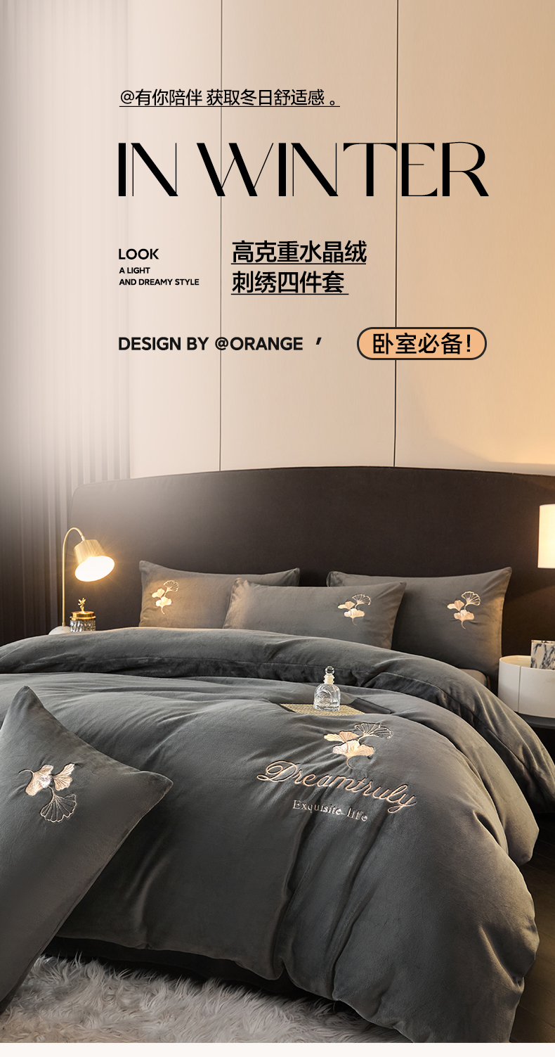 当前位置: 91家纺网 > 商品网购 > 床品套件 > 四件套 > 水晶绒四件套 > 如一 2025新款水晶绒纯色刺绣四件套-银杏系列 银杏-高级灰