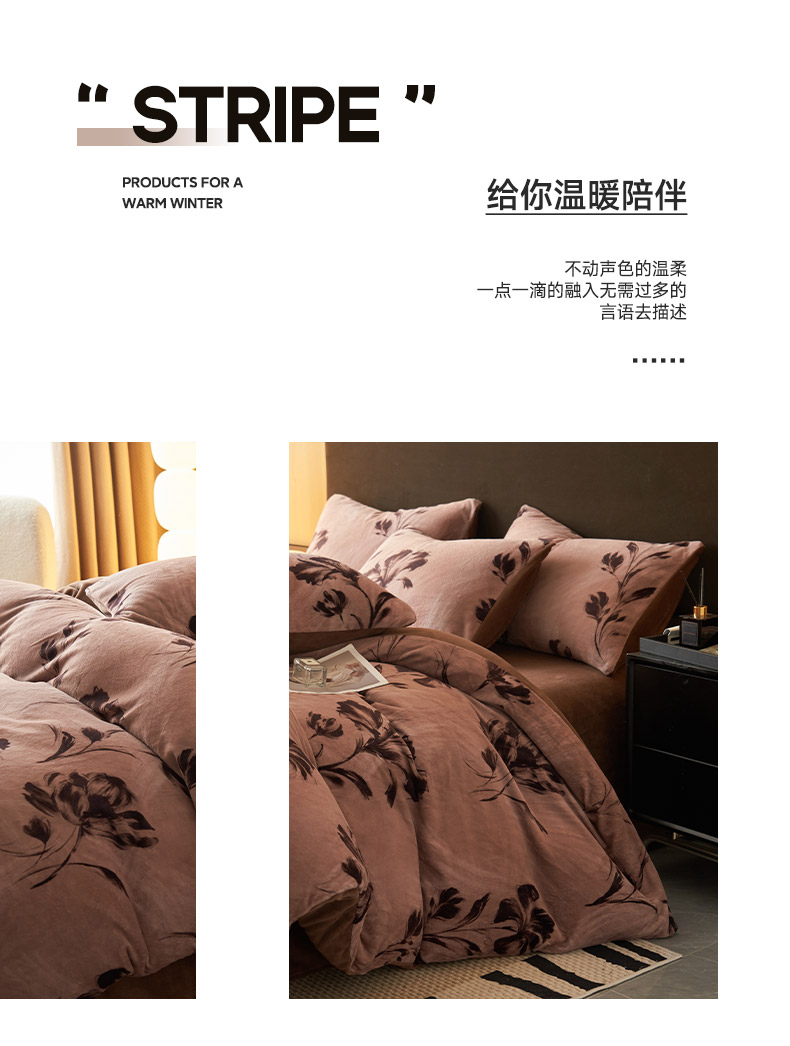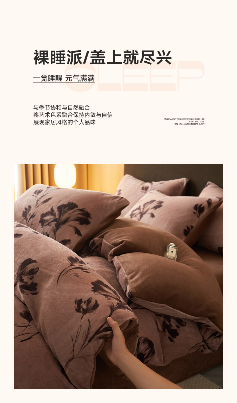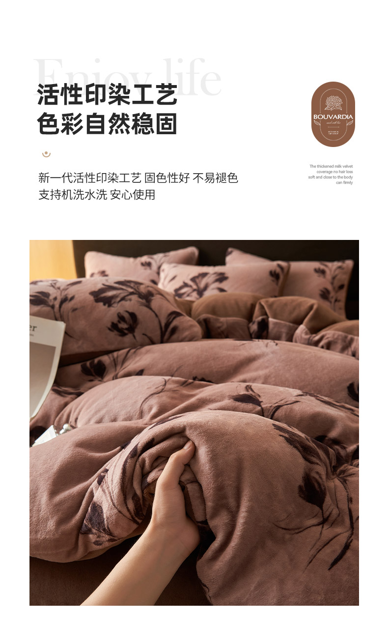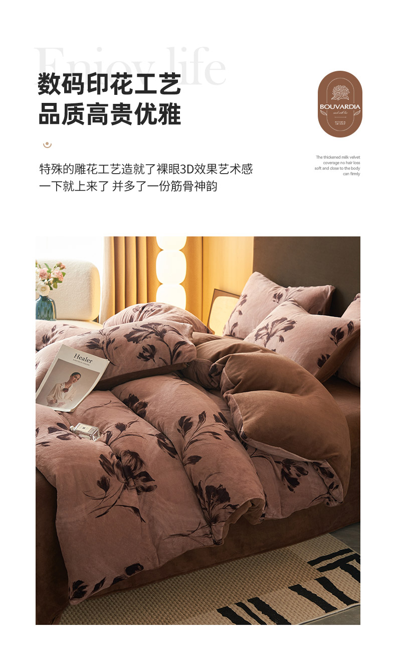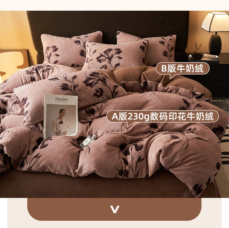 (总)吾秀家居 绒城 230克美拉德数码绒四件套 牛奶绒四件套 - 暖秋系列,花韵,暗香,冬日恋歌-咖,冬日恋歌-棕,冬日森林,花意浓,境玉森林,罗曼庄园,拿铁玫瑰,深紫罗兰,丝绒玫瑰,幽香花语