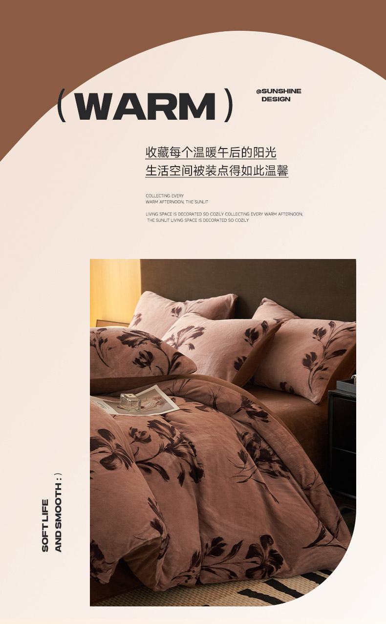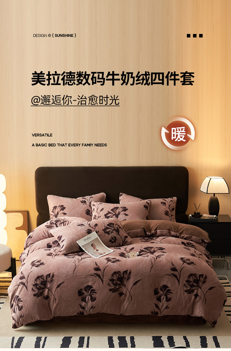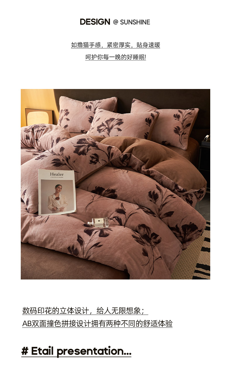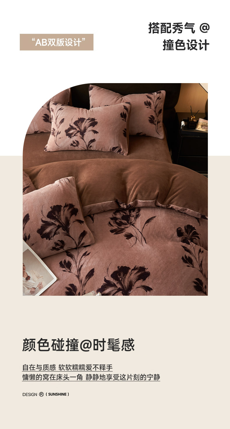 (总)吾秀家居 绒城 230克美拉德数码绒四件套 牛奶绒四件套 - 暖秋系列,花韵,暗香,冬日恋歌-咖,冬日恋歌-棕,冬日森林,花意浓,境玉森林,罗曼庄园,拿铁玫瑰,深紫罗兰,丝绒玫瑰,幽香花语