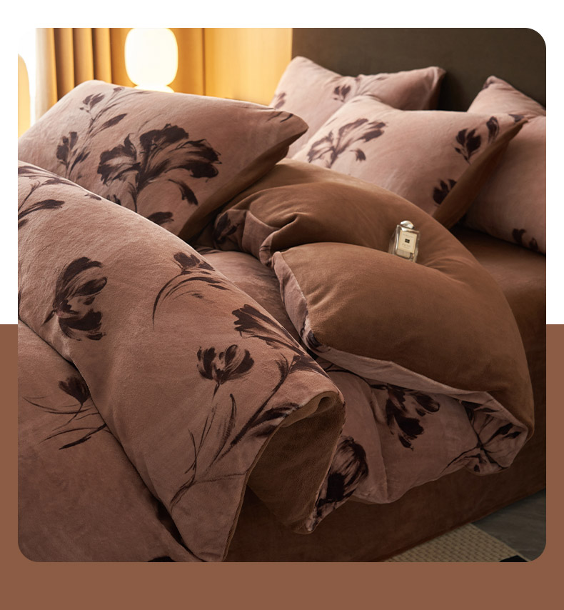 吾秀家居 绒城 230克美拉德数码绒四件套 牛奶绒四件套 - 暖秋系列 拿铁玫瑰