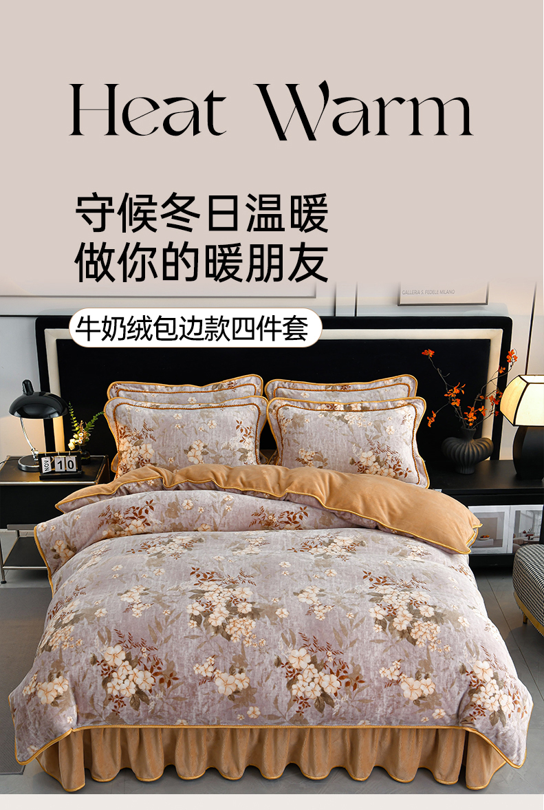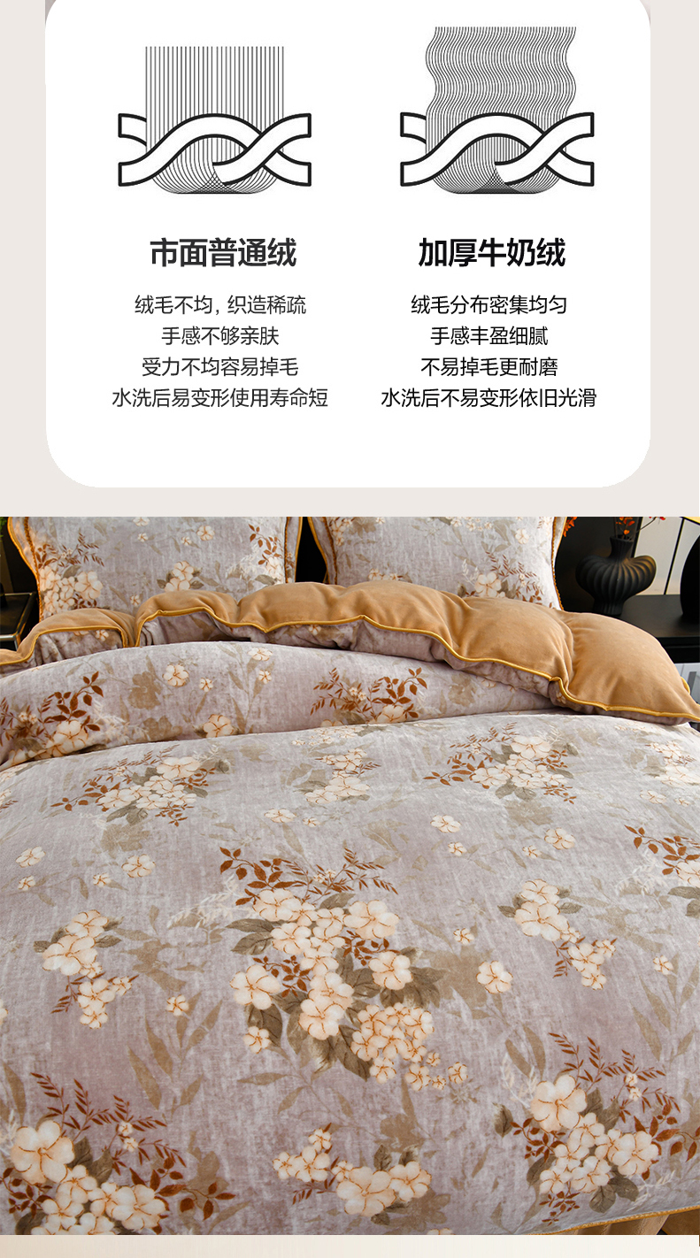 诺梵家纺 2025新款8斤加厚保暖金貂绒牛奶绒印花四件套 花枝如梦,花枝如梦