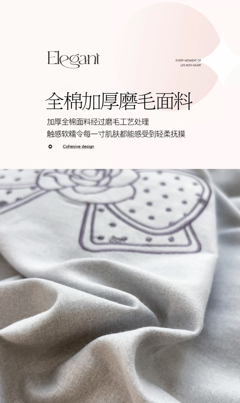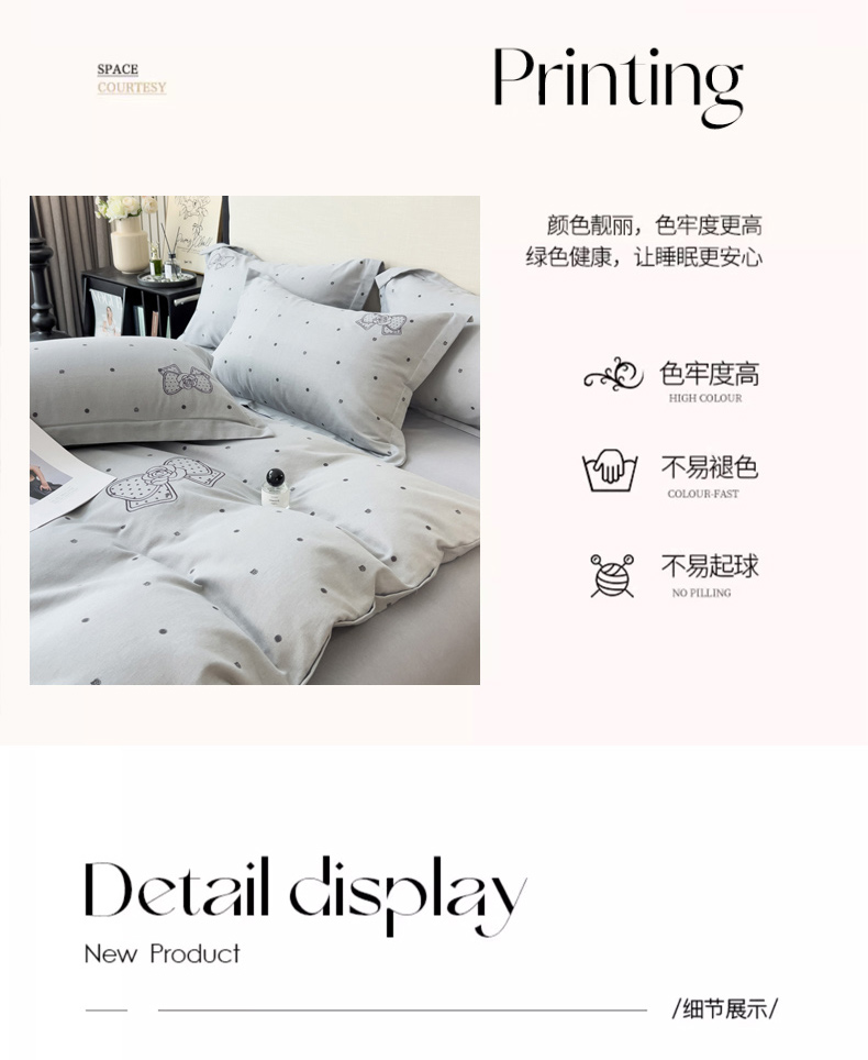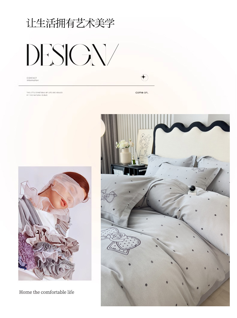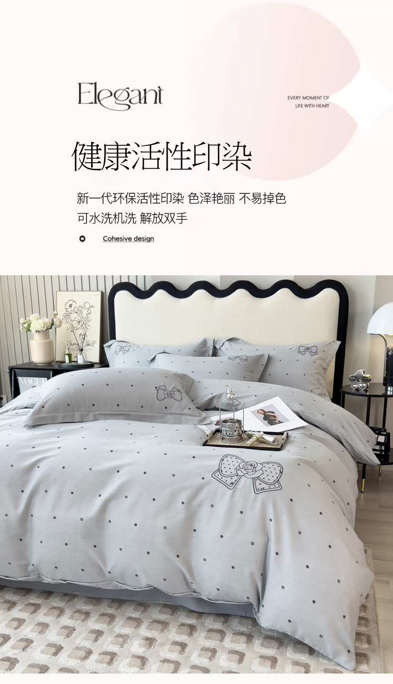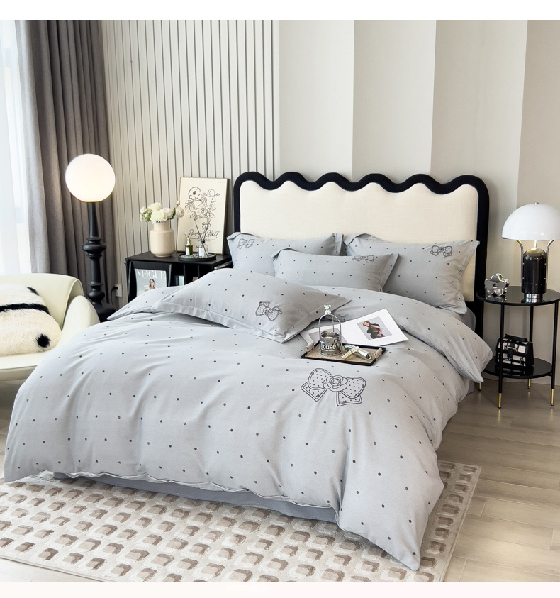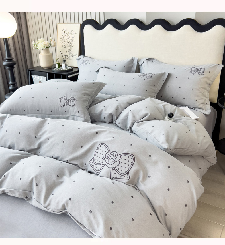 当前位置: 91家纺网 > 商品网购 > 床品套件 > 四件套 > 全棉普通四件套 > 印季家纺 2025新款全棉纯棉波点蝴蝶结绣花混纺磨毛四件套 薄雾灰