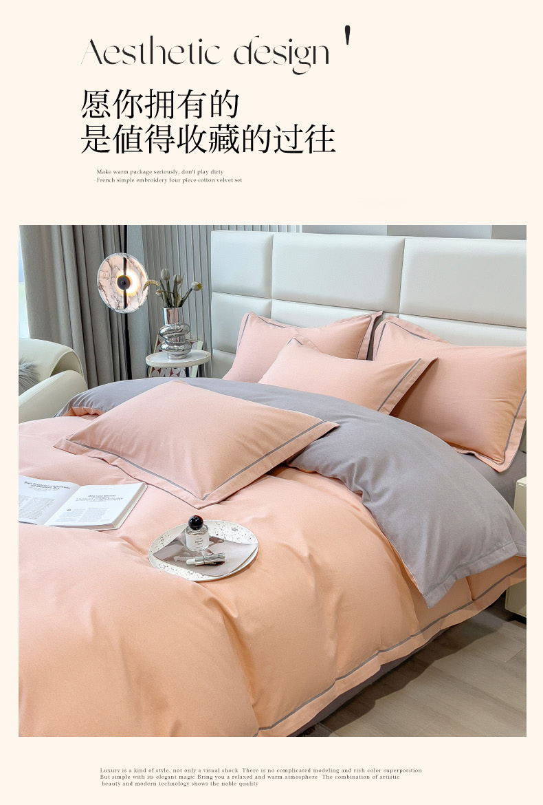 商品名称:(总)印季家纺 2025新款纯色磨毛混纺一字绣四件套