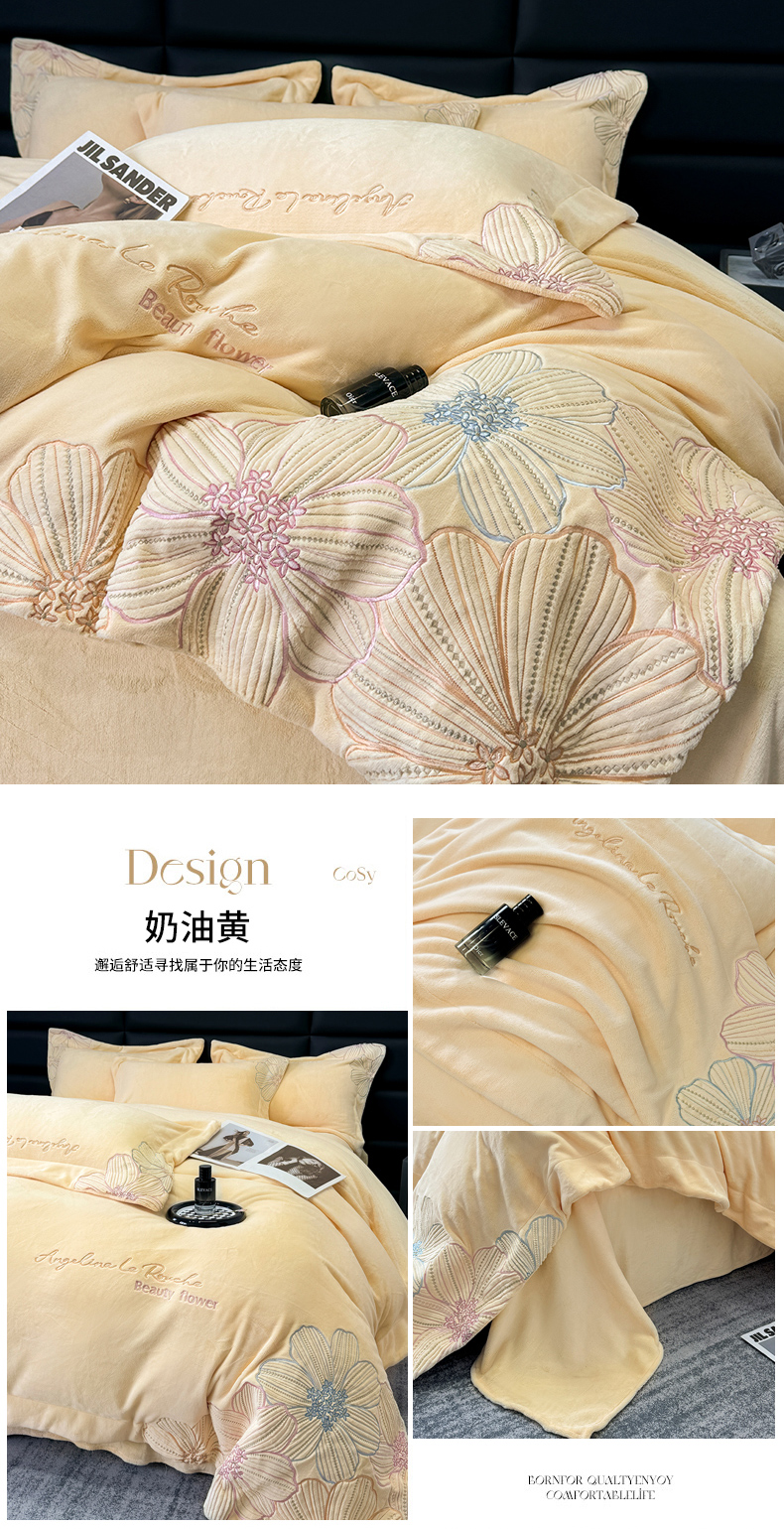 (总)星蕴家纺 2024新款220克全消光牛奶绒四件套--绮丽,奶咖,奶油黄,牛仔蓝,温柔粉