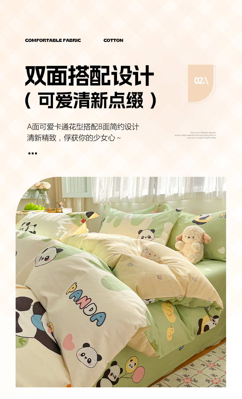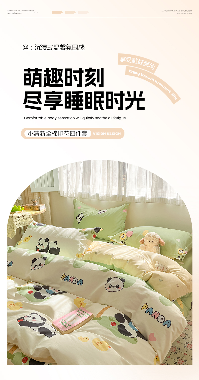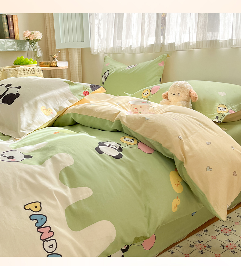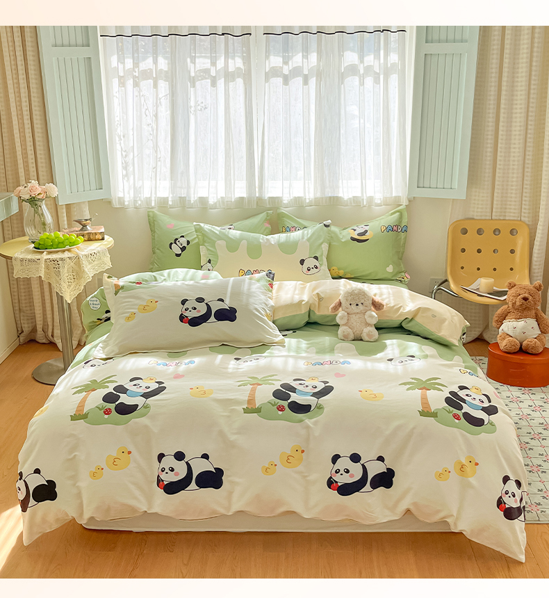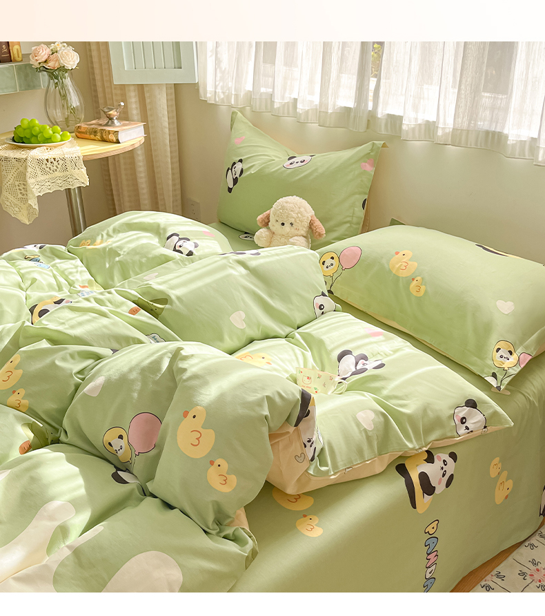 当前位置: 91家纺网 > 商品网购 > 床品套件 > 四件套 > 全棉普通四件套 > 花梦欣 2026新款全棉印花系列简约卡通款四件套 熊猫鸭鸭乐绿