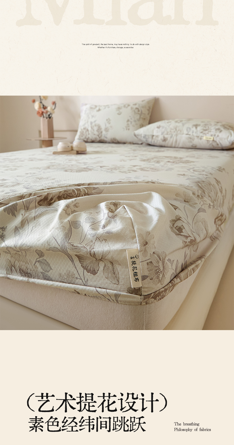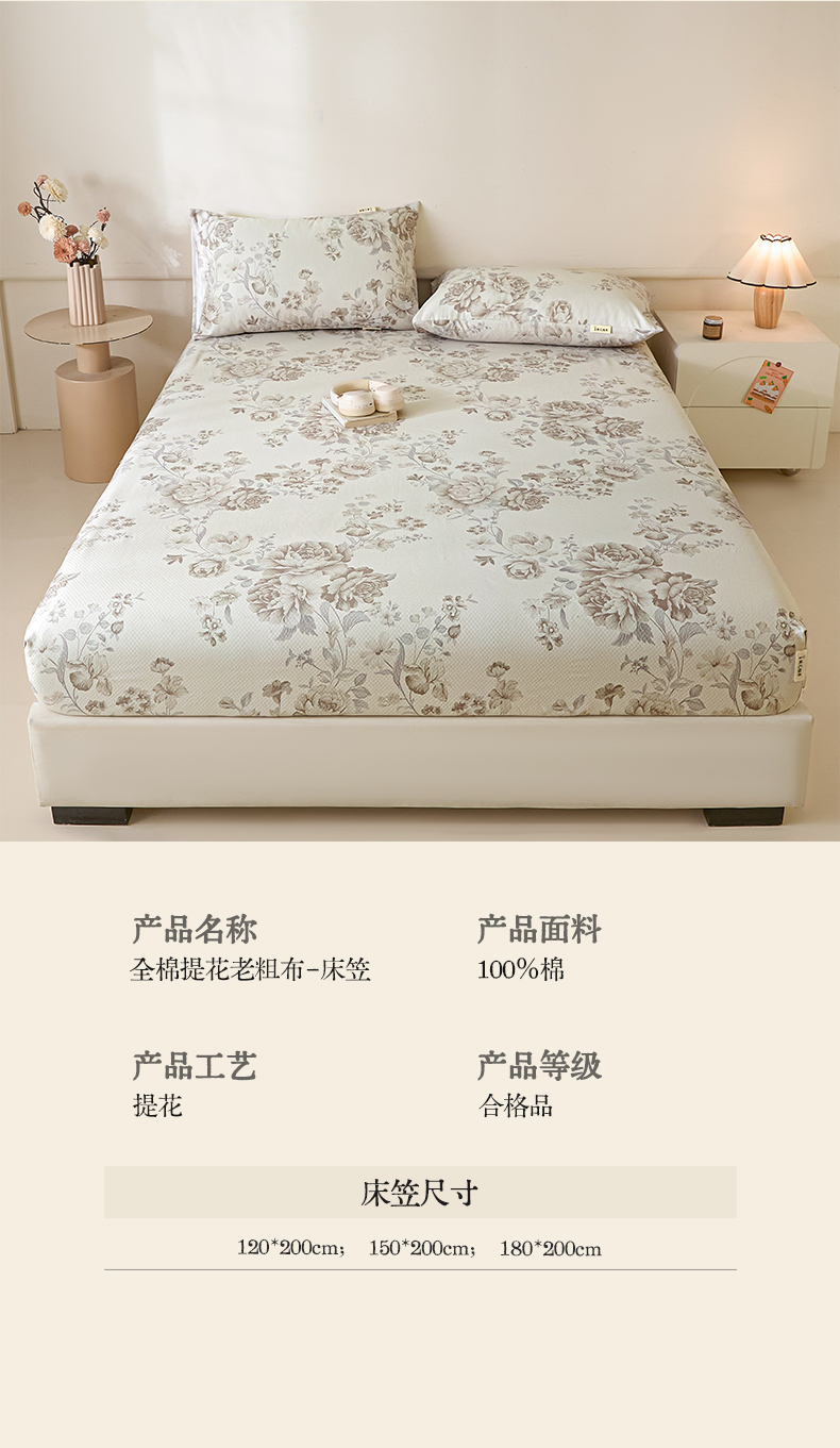 涵宸家纺 2026新款全棉提花老粗布-单床笠 床笠-挪威花园
