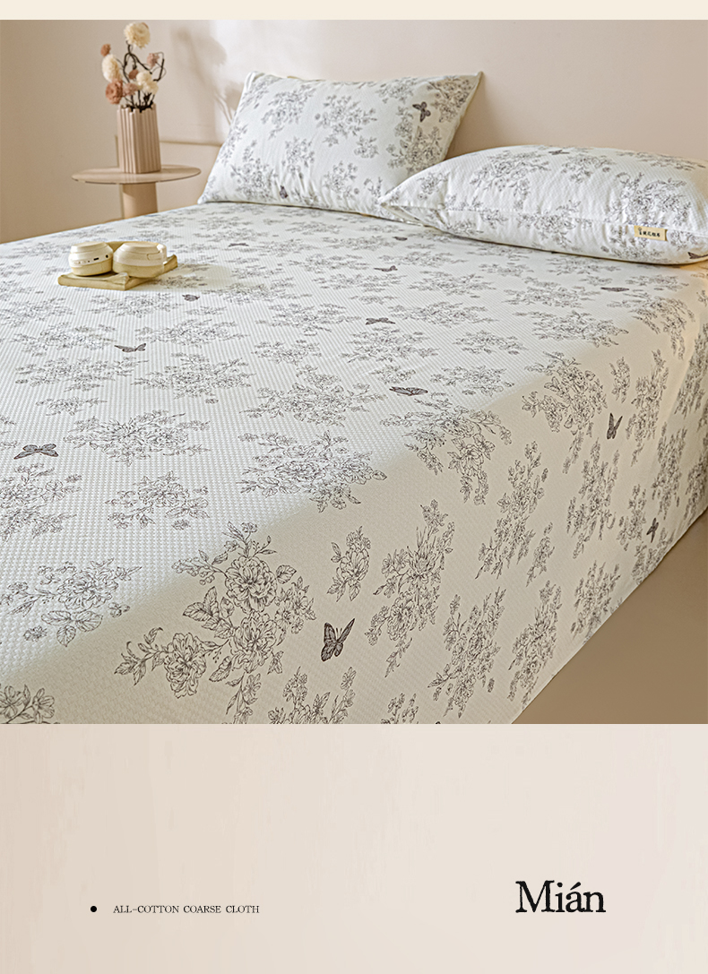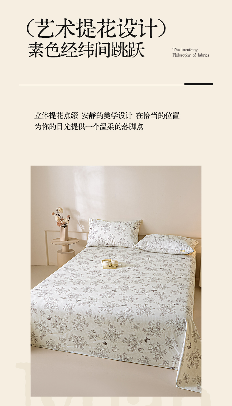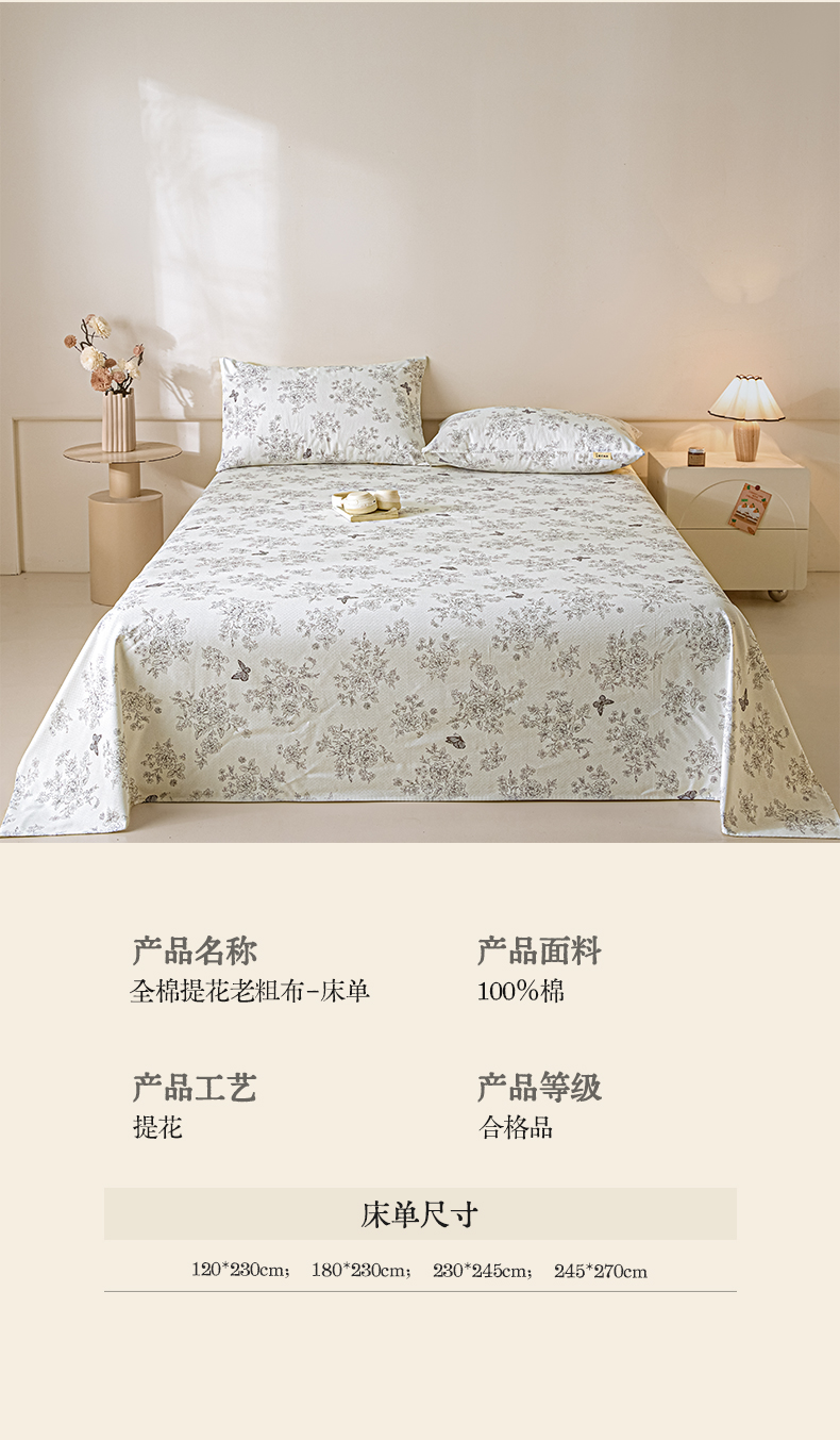 涵宸家纺 2026新款全棉提花老粗布-单床单 床单-墨蝶